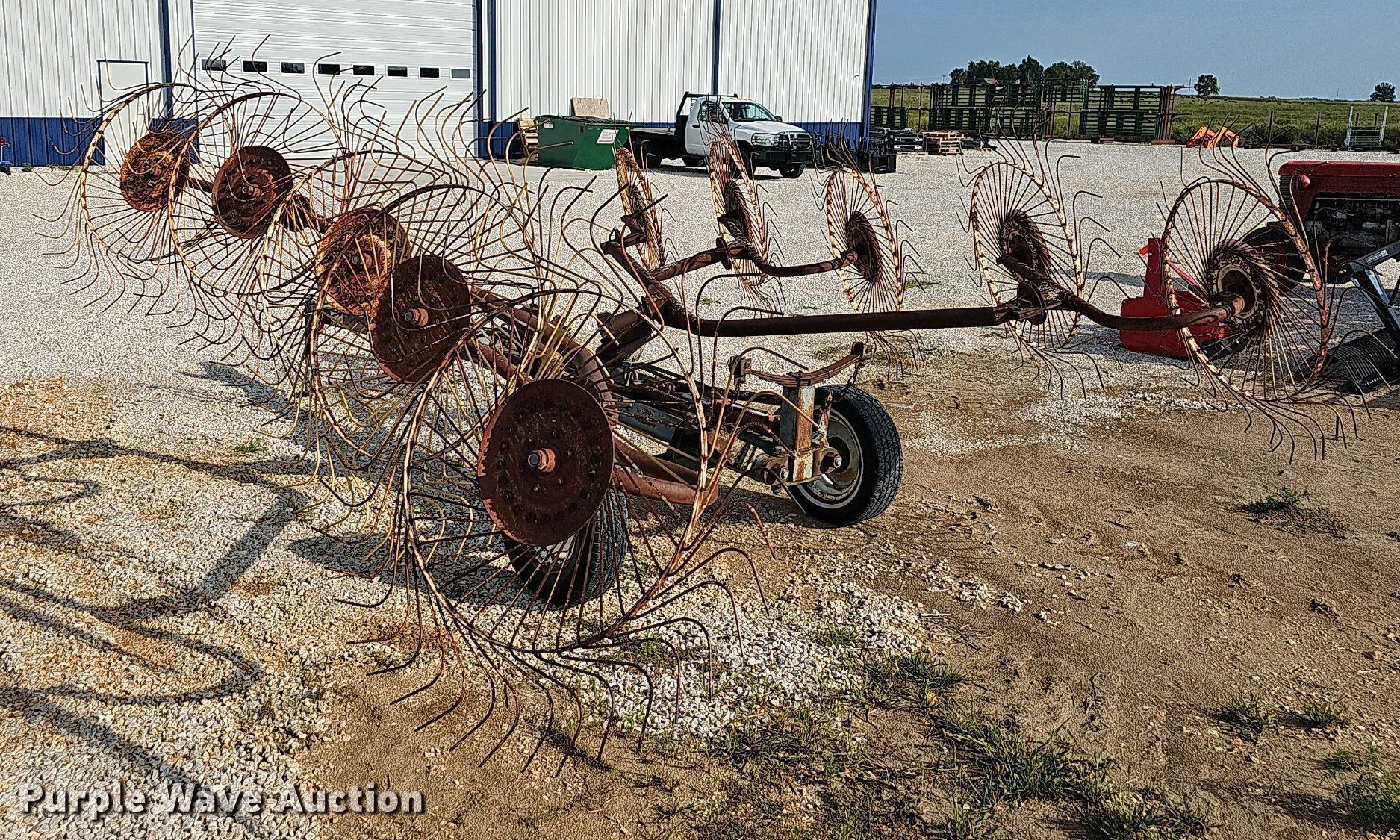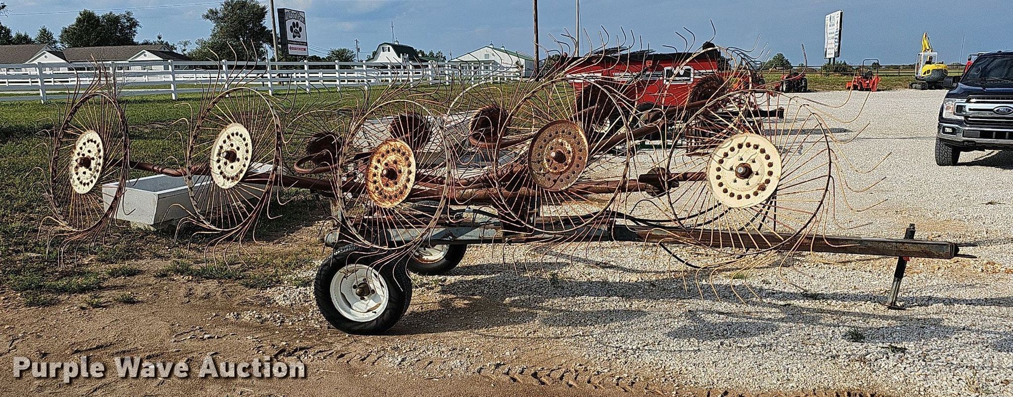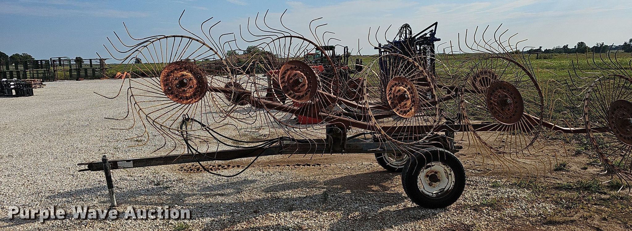 Purple Wave is selling a used Hay Rake in Missouri. This item is a hay rake with the following: Wheels: 10, Diameter: 52", Hydraulic lift