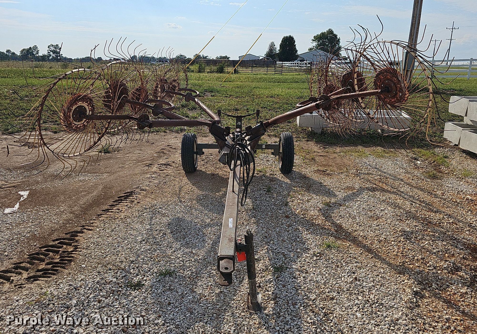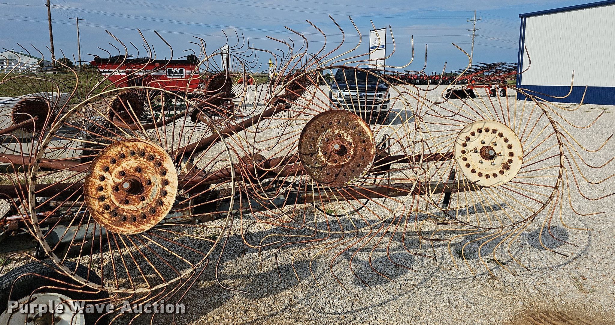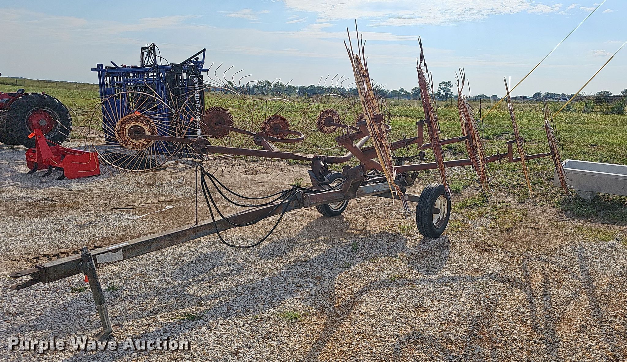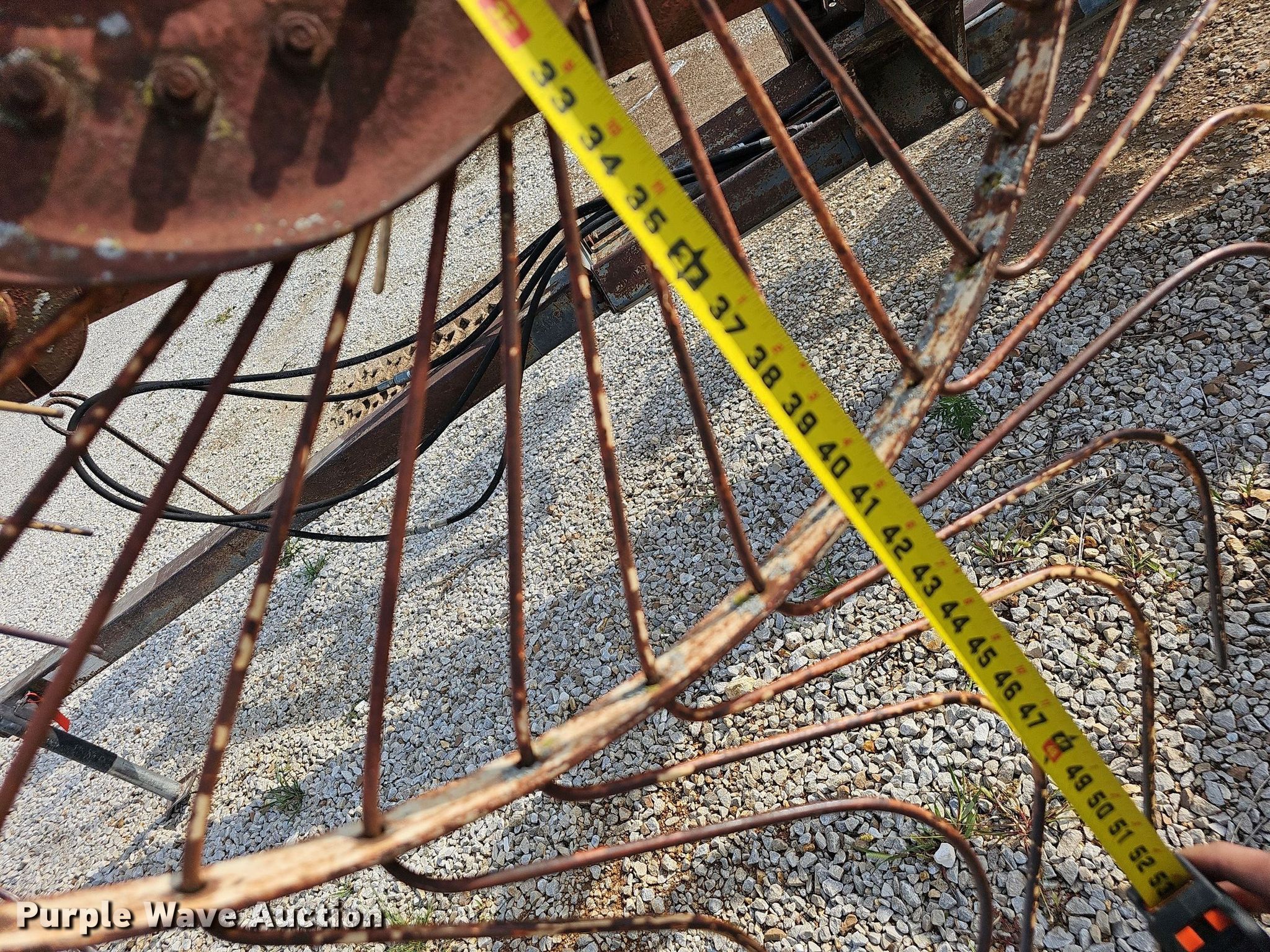 Purple Wave is selling a used Hay Rake in Missouri. This item is a hay rake with the following: Wheels: 10, Diameter: 52", Hydraulic lift