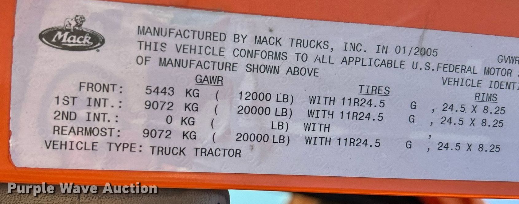 Purple Wave is selling a used Truck Tractor in Ohio. This item is a 2005 Mack CXN613 semi truck with the following: Miles: 35,522 on odometer, Hours: 40,172 on meter, VIN: 1M1AK07Y45N005772