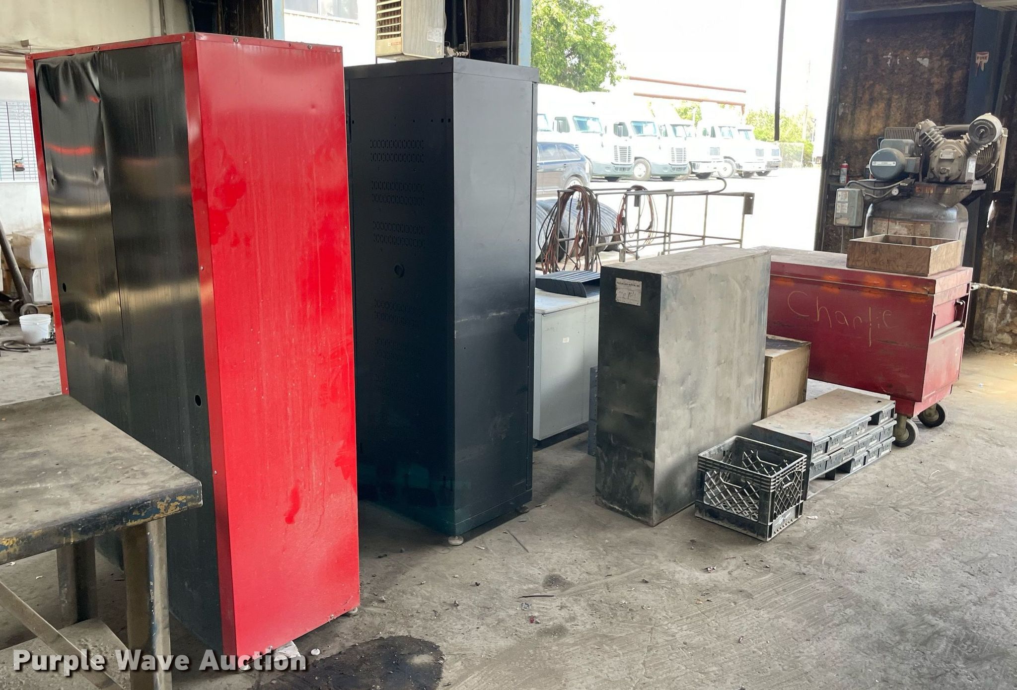 Purple Wave is selling a used Tools in Texas. This item is a Tools with the following: (2) storage cabinets, 4'W x 6'H, Hardware cabinet, Tool chest, Job box not included