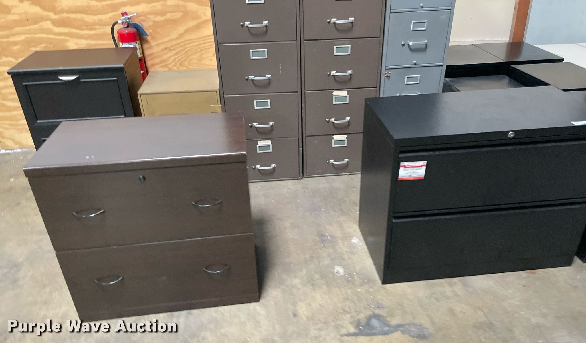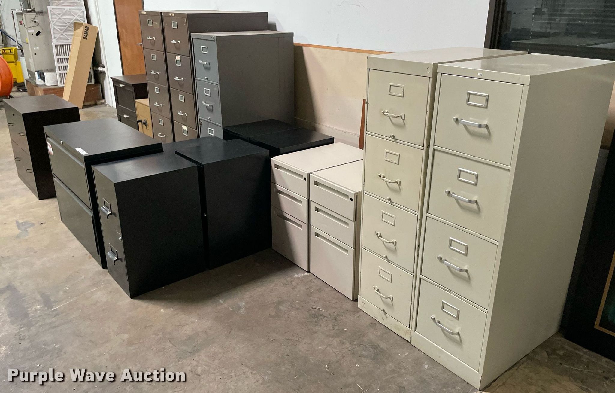 Purple Wave is selling a used Office Supplies and Equip. in Texas. This item is a (15) file cabinets with the following: (3) four drawer, (2) five drawer, (10) two drawer, Safe