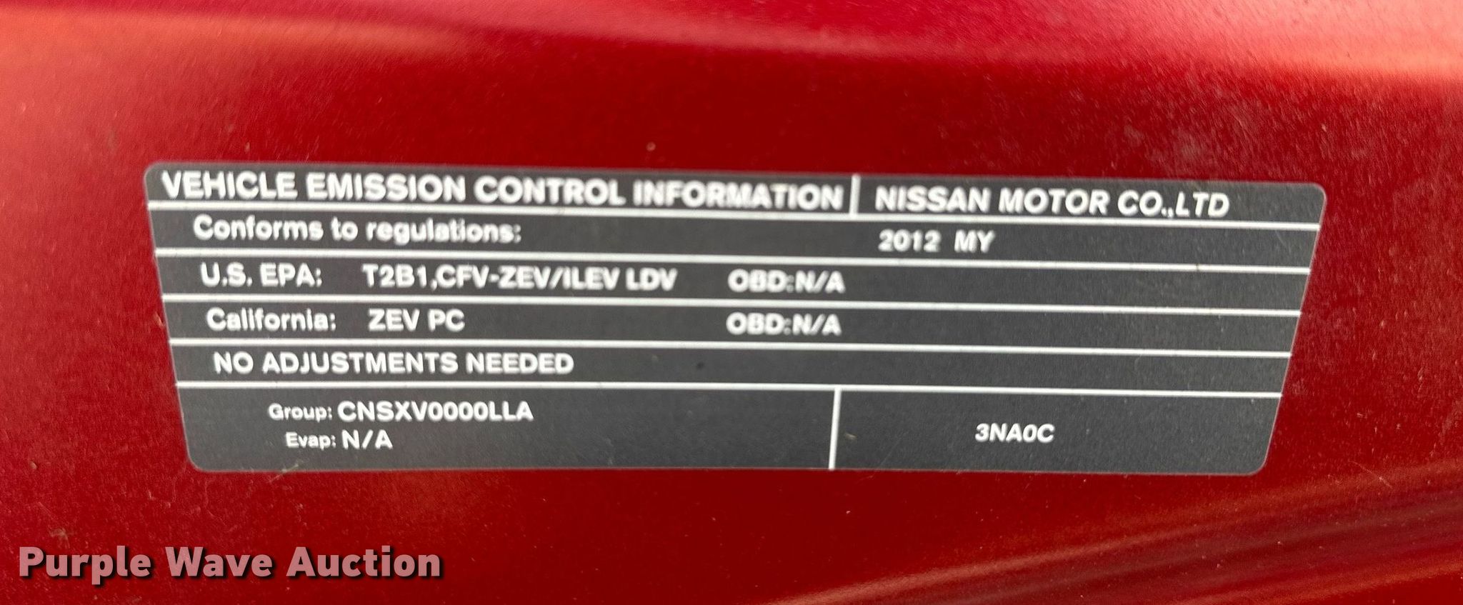 Purple Wave is selling a used Passenger Vehicle in Kansas. This item is a 2012 Nissan Leaf with the following: Miles: 72,186 on odometer, VIN: JN1AZ0CP7CT024871