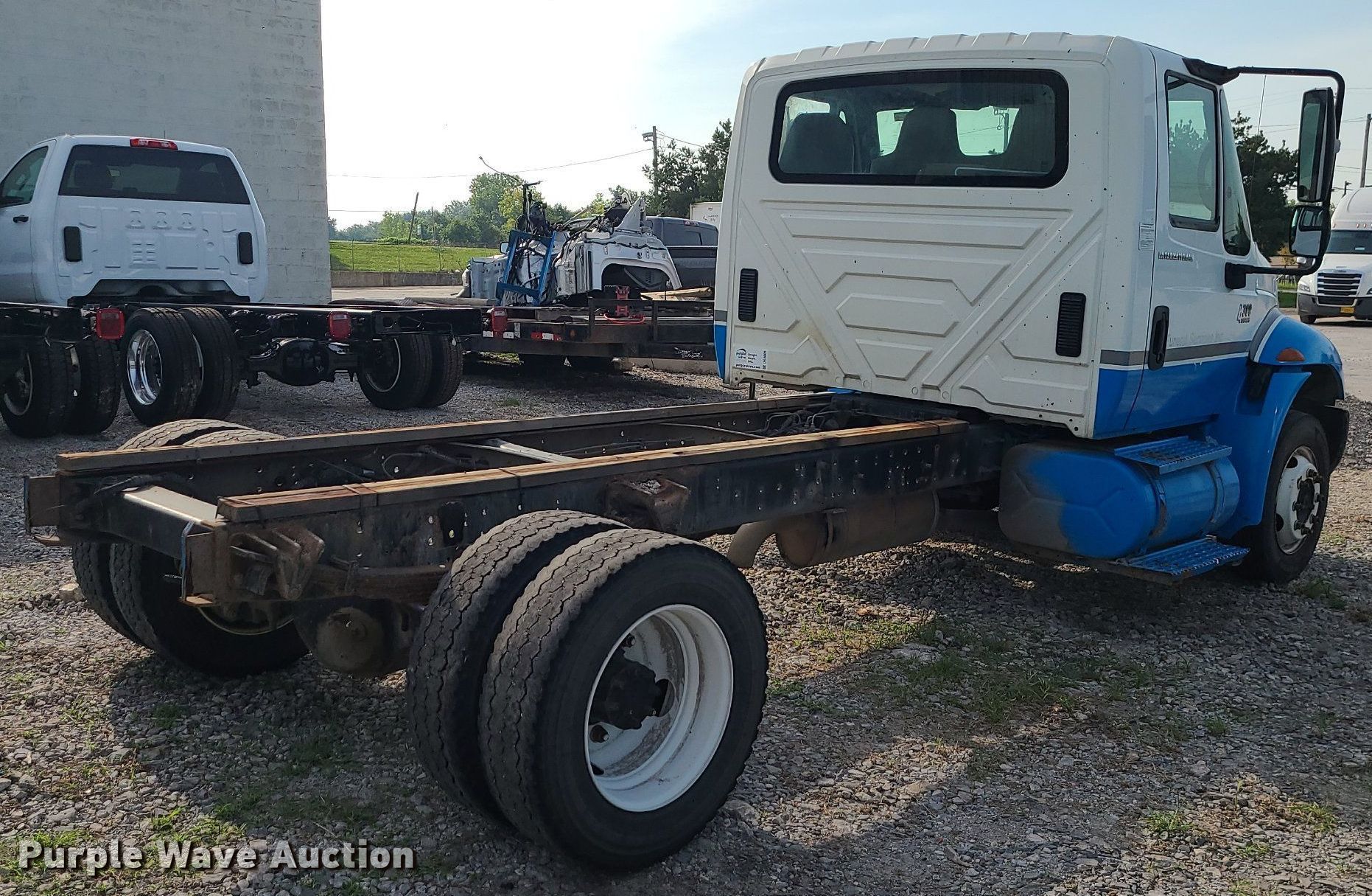 2002 International 4300 truck cab and chassis. Miles: 410,460 on odometer, VIN: 1HTMNAAM72H549745. Engine Displacement: 7.6L, Cylinders: 6, Fuel type: Diesel. Transmission Automatic. Chassis Axles: Single, Suspension: Spring, Brakes: Hydraulic, Truck chassis: 11'. Interior AC, Heat. Tires Size: 245/70R19.5. Notes Dash warning indicator: ABS, Check AC, Engine issues, Non-operational AC. Missouri title. Title distribution may be delayed up to 14 days from verification of funds. Wilbert Funeral Services. 7600 North Church Road. Kansas City, MO 64158