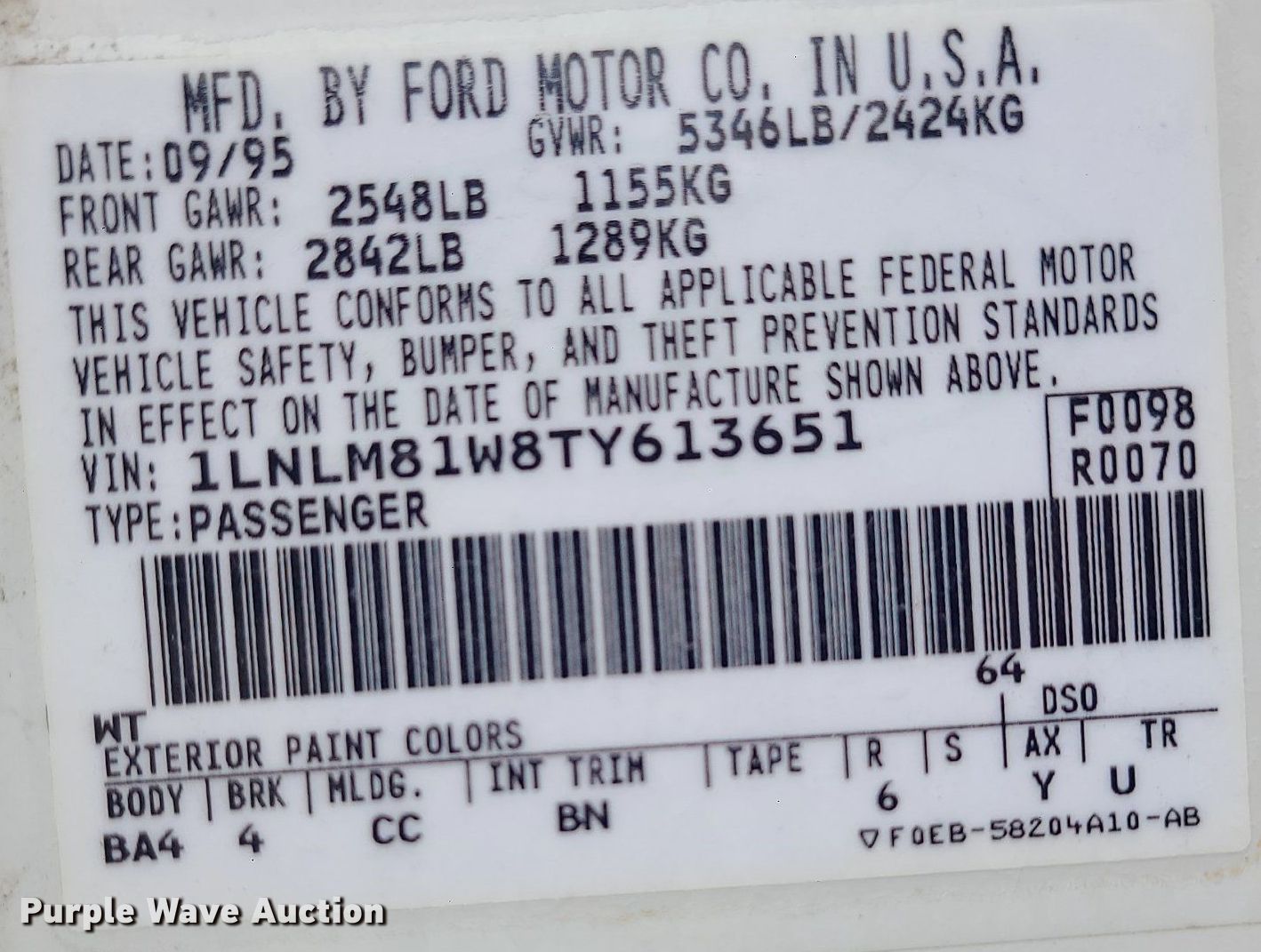 1996 Lincoln Town Car. Miles: 155,003 on odometer, VIN: 1LNLM81W8TY613651. Engine Displacement: 4.6L V8 SOHC, Cylinders: 8, Fuel type: Gas. Transmission Automatic. Interior AC, Heat, Power windows, Power locks, Cruise control. Tires Size: 215/70R15. Missouri title. Title distribution may be delayed up to 14 days from verification of funds. 1502 Hardwick Drive. Liberty, MO 64068