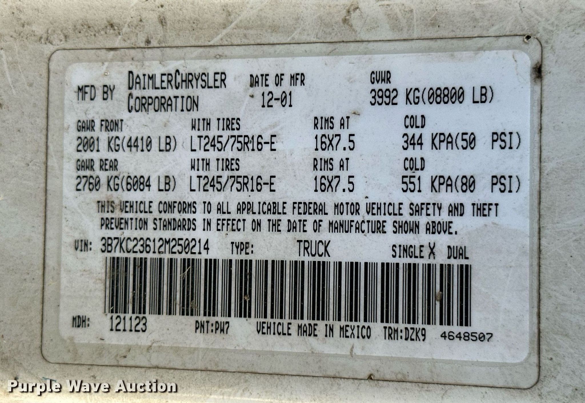 Purple Wave is selling a used 3/4 or 1 Ton Pickup or Van in Oklahoma. This item is a 2002 Dodge Ram 2500 Quad Cab pickup truck with the following: Miles: Unknown, VIN: 3B7KC23612M250214