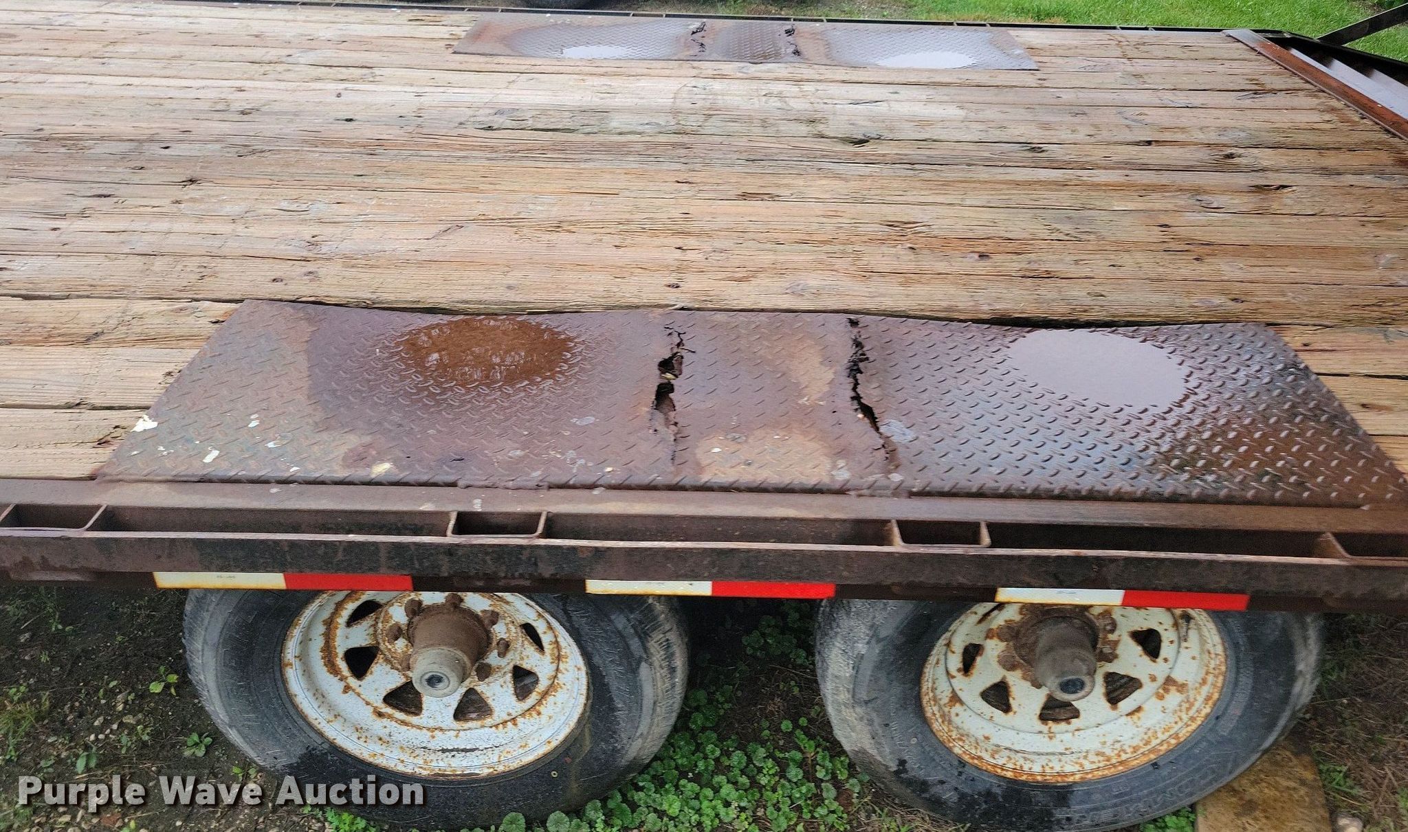 2002 PJ equipment trailer. VIN: 4P5PD202821045920. Dimensions Overall: 28' L x 96" W, Deck: 17' L x 96" W, Deck height: 31", Tail length: 3', Ramps: Manual Length: 5'. Features Deck type: Wood. Chassis Hitch: Pintle, Landing gear: Single, Suspension: Spring, Brakes: Electric, Axles: Tandem. Tires Steel wheels, Size: LT225/75R16. Iowa title. Title distribution may be delayed up to 14 days from verification of funds. All Iowa Pools Retirement. 1325 Hoak Drive. West Des Moines, IA 50265