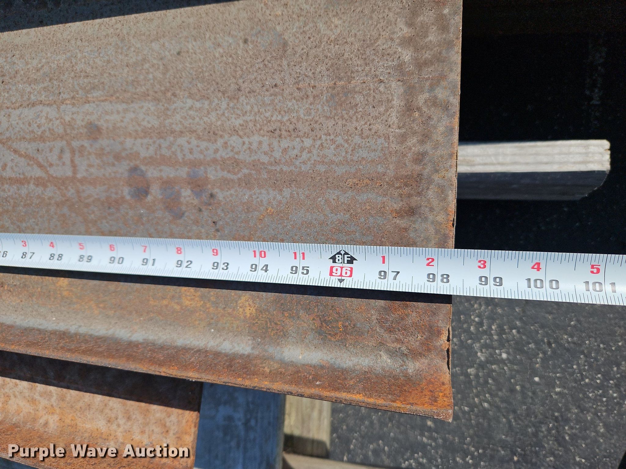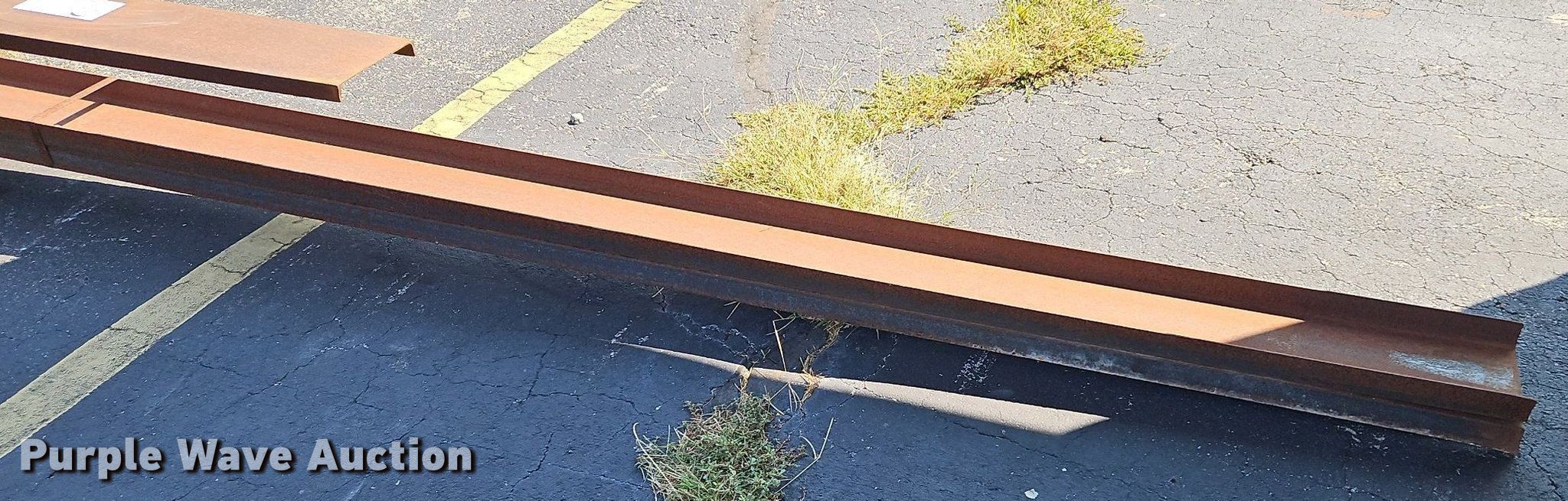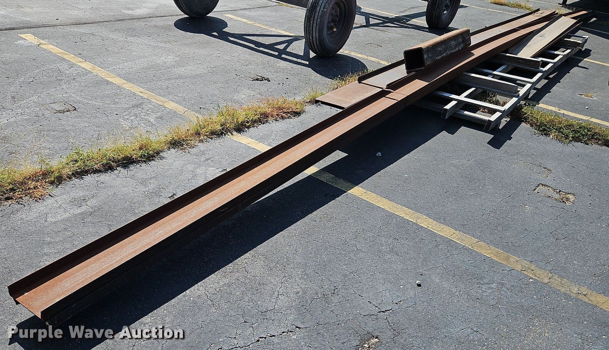 Purple Wave is selling a used Building Materials in Missouri. This item is a Building materials with the following: (6) C channels, (2) 40' L x 8" W x 2" H, (2) 8' L x 10" W x 2" H, 25' L x 10" W x 2" H, 20' L x 10" W x 2" H, 4' L x 7" diameter tubing, (3) pallet shelf uprights, (9) pallet shelf cross beams, (2) 5' L trailer ramps, Running gear