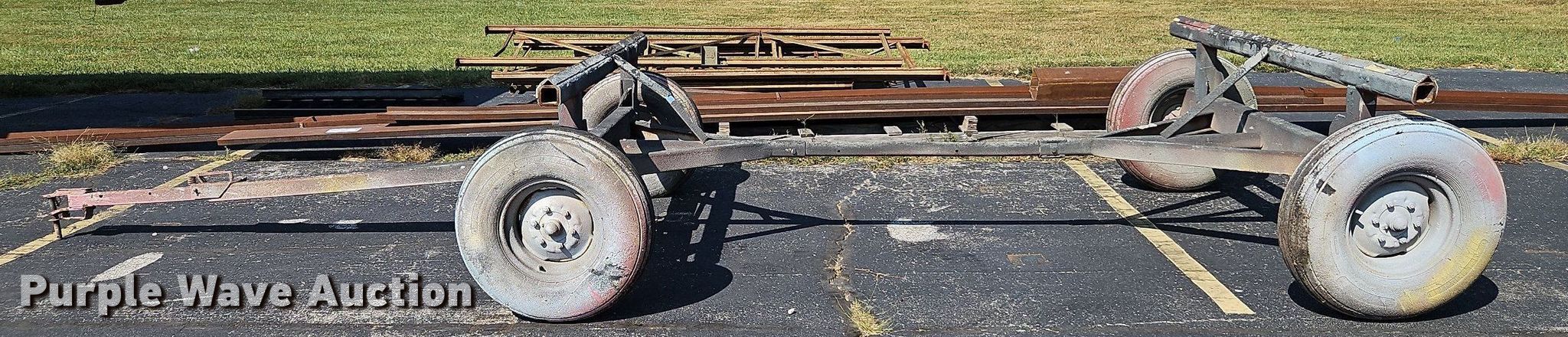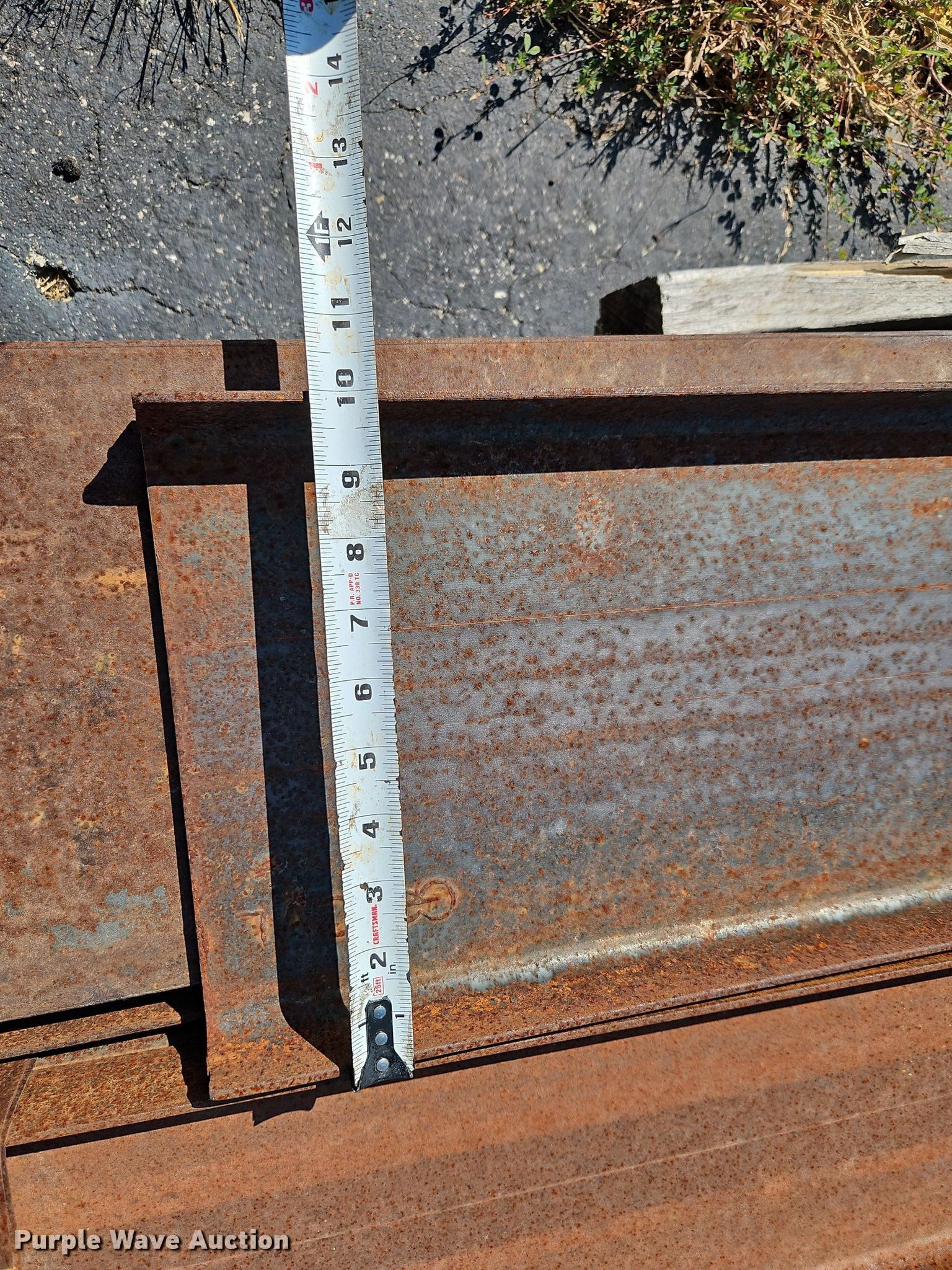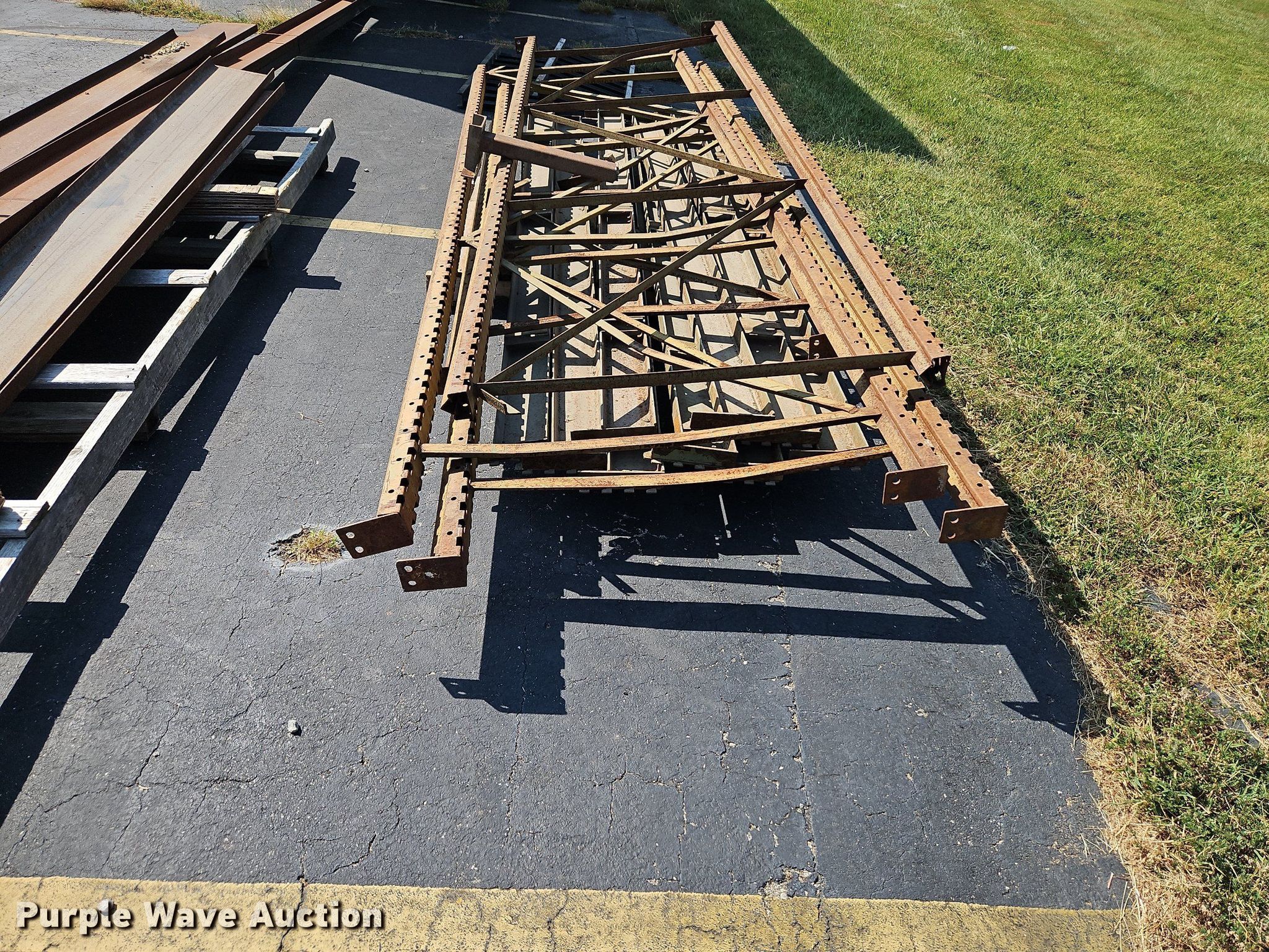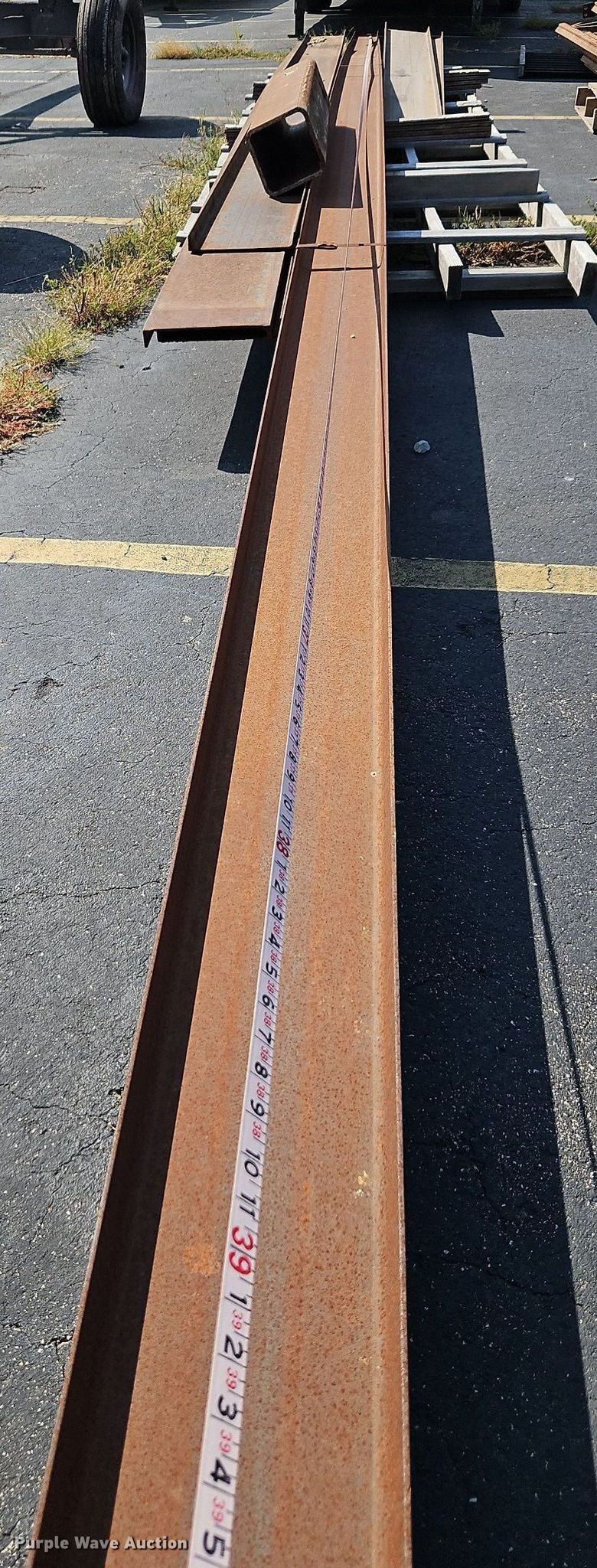 Purple Wave is selling a used Building Materials in Missouri. This item is a Building materials with the following: (6) C channels, (2) 40' L x 8" W x 2" H, (2) 8' L x 10" W x 2" H, 25' L x 10" W x 2" H, 20' L x 10" W x 2" H, 4' L x 7" diameter tubing, (3) pallet shelf uprights, (9) pallet shelf cross beams, (2) 5' L trailer ramps, Running gear