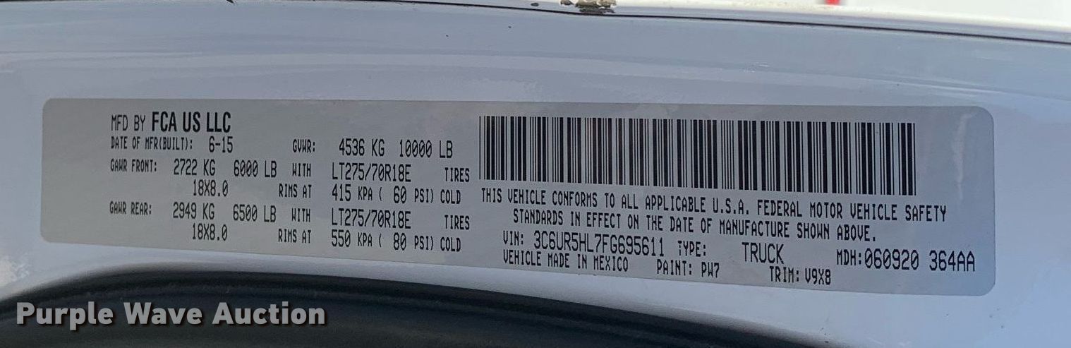 Purple Wave is selling a used 3/4 or 1 Ton Pickup or Van in Texas. This item is a 2015 Dodge Ram 2500HD Crew Cab pickup truck with the following: Miles: 278,251 on odometer, VIN: 3C6UR5HL7FG695611, Unit #: P215