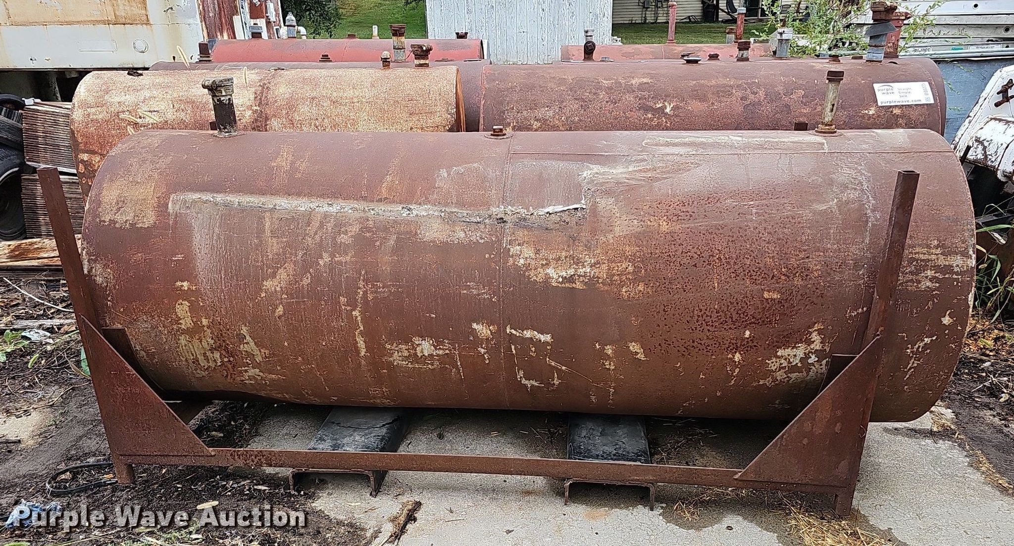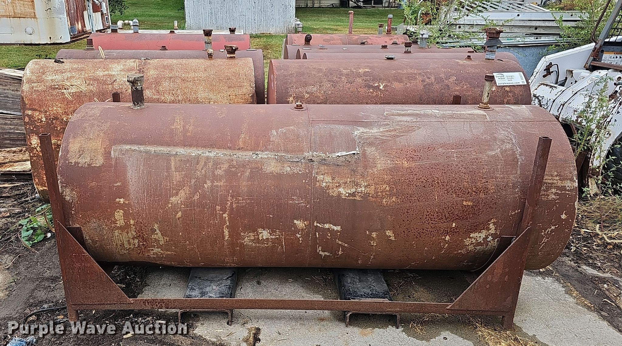 Purple Wave is selling a used Fuel and Lube in Nebraska. This item is a Approximately 15 fuel tanks with the following: Approx. 61"L x 38" diameter, Approx. 48"L x 30" diameter, (11) 60"L, Width: 26" to 28", Height: 42" to 44", Approx. 60"L x 24" x 26", Approx. 96"L x 36" diameter, Previously contained used oil, Unknown operating condition
