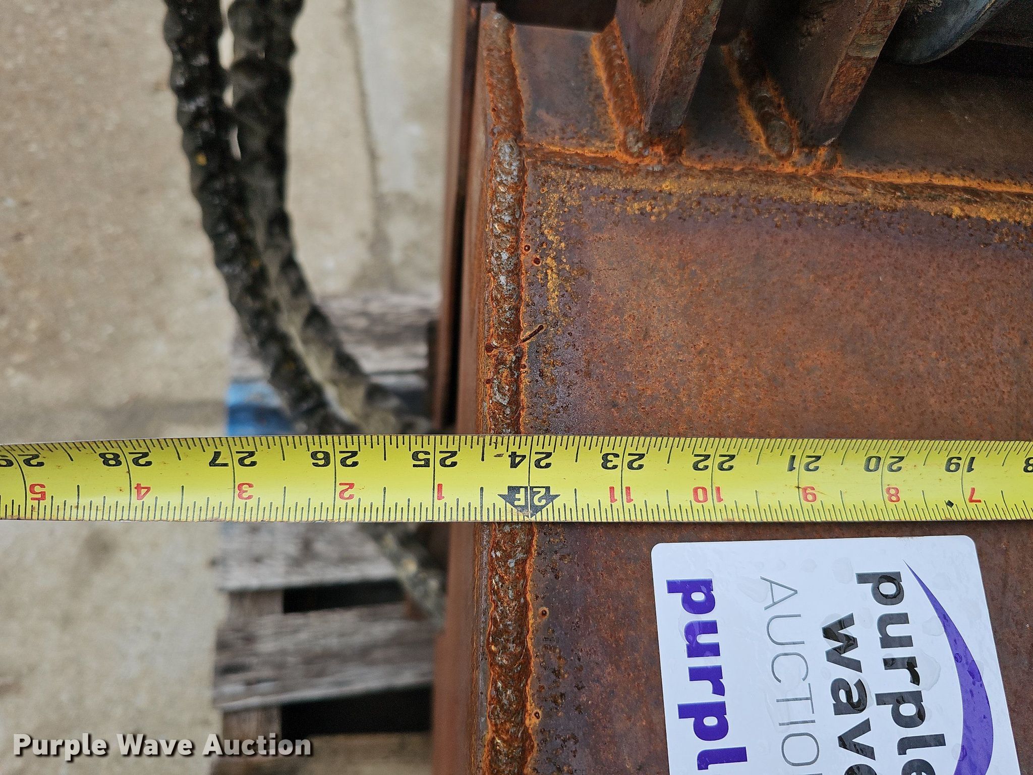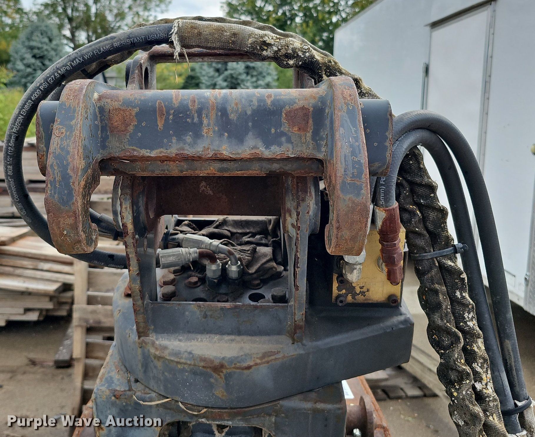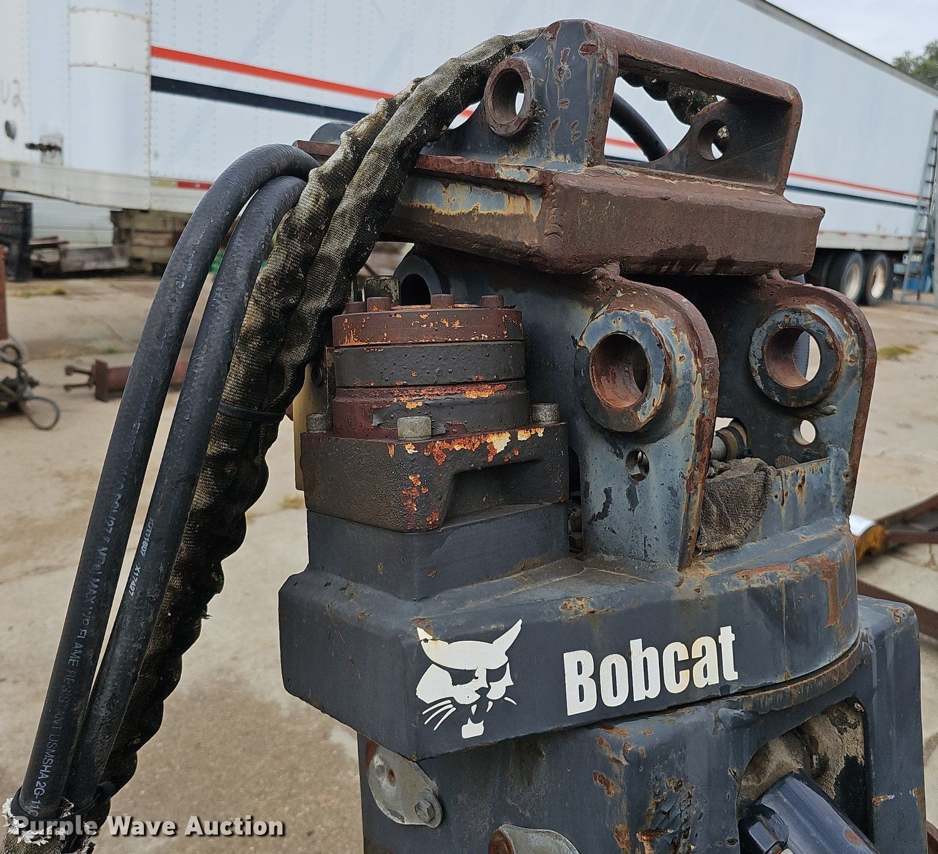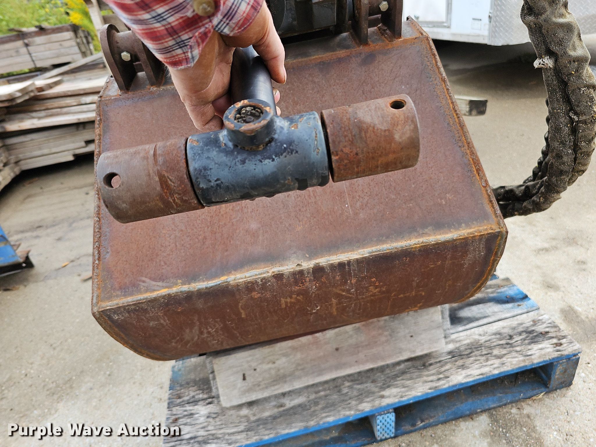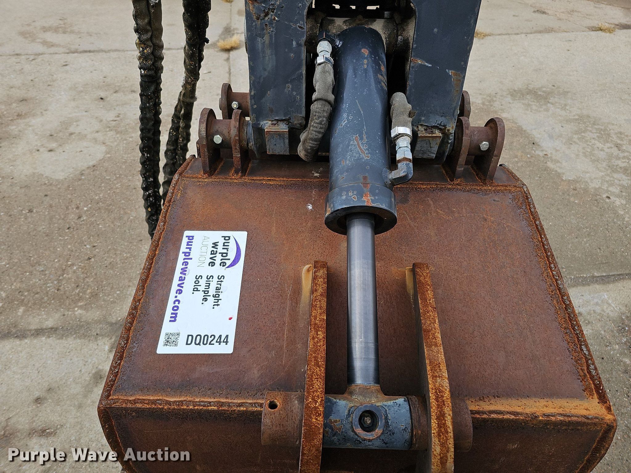 Purple Wave is selling a used Excavator Attach. in Nebraska. This item is a Shop built 24.5"W clamshell bucket with the following: Cutting edge: Weld-on, Bobcat hydraulic rotation, Serial: 077560013, Quick coupler