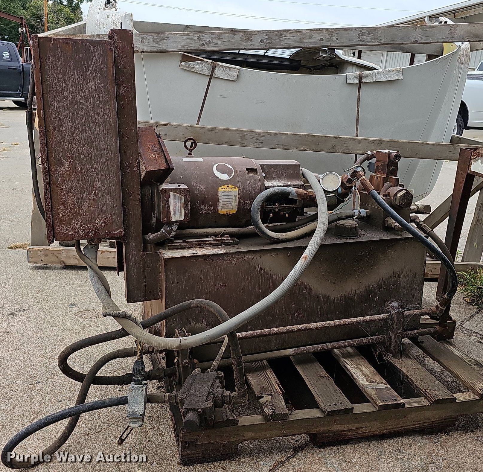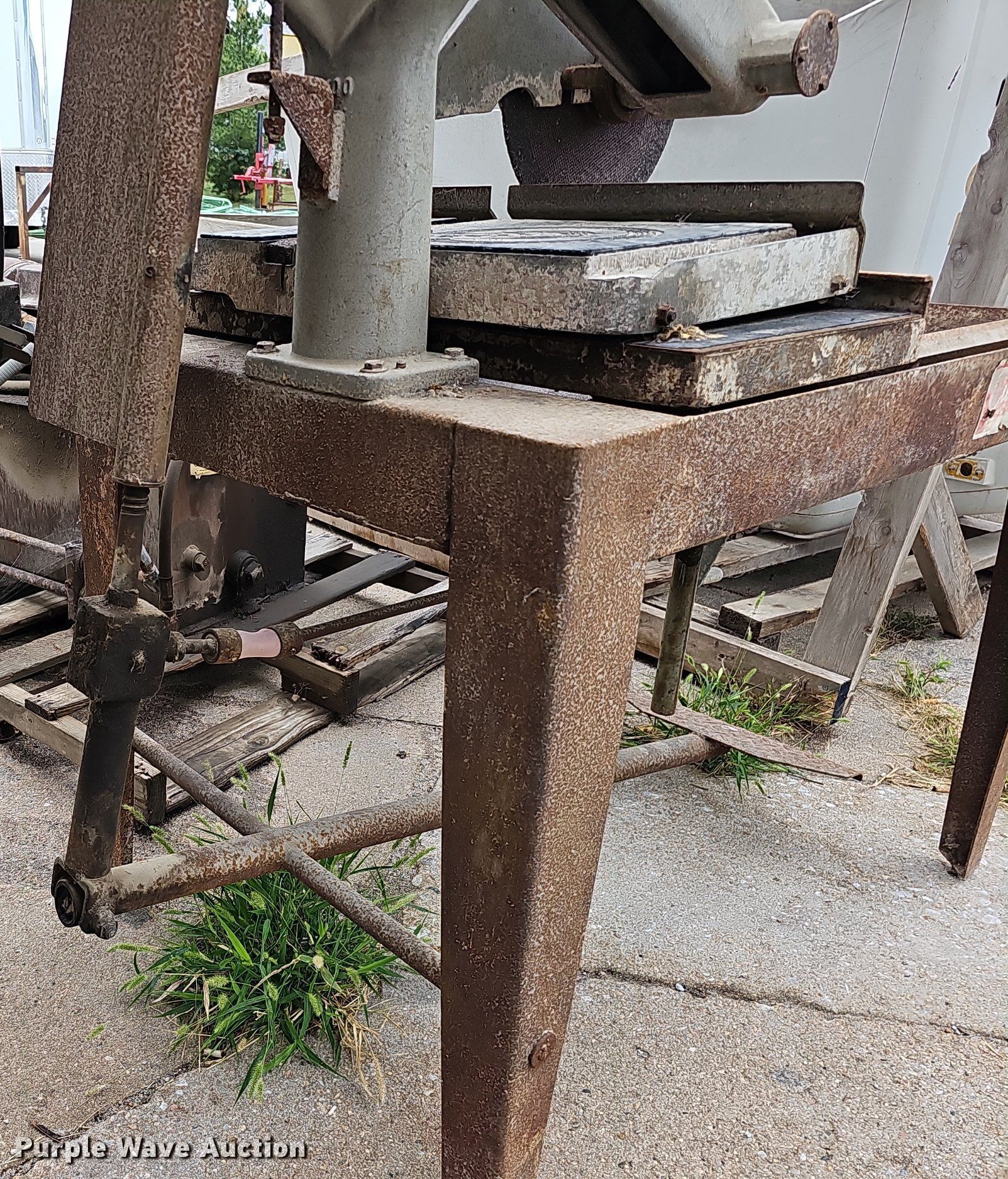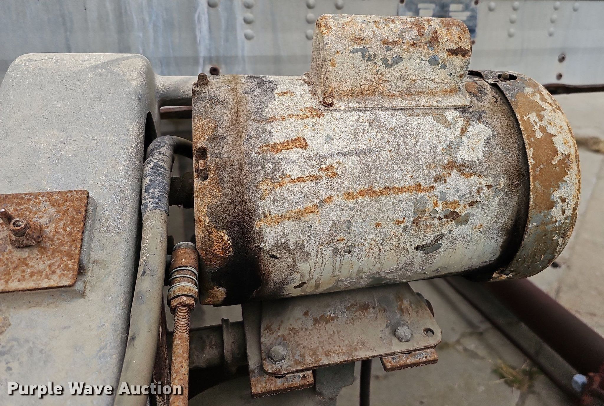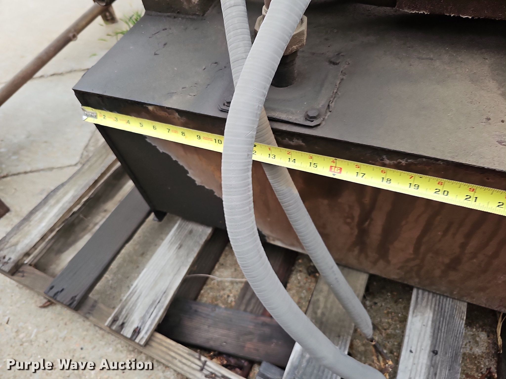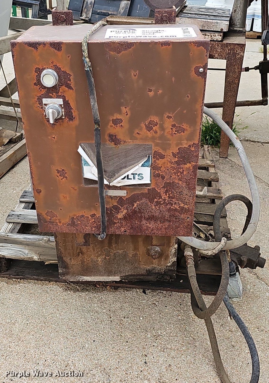 Purple Wave is selling a used Tools in Nebraska. This item is a Tools with the following: Hoist, PTO pump, 36"L x 18"W x 14"H tank, Baldor CM3714T electric motor, 208-230/460V, Three phase, 10 HP, Wiring issues, Masonry Equipment Inc 31-14 masonry saw, 41.5"L x 27"W x 57"H, Baldor 36086-3064 electric motor, 115/230V, Single phase, 3 HP, Serial: 661, Unknown operating conditions