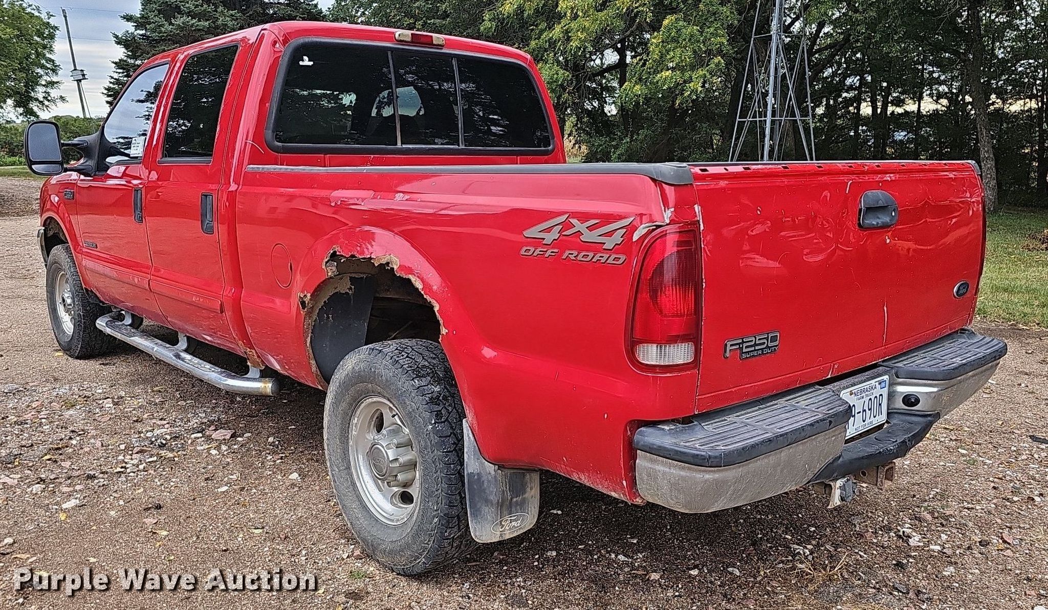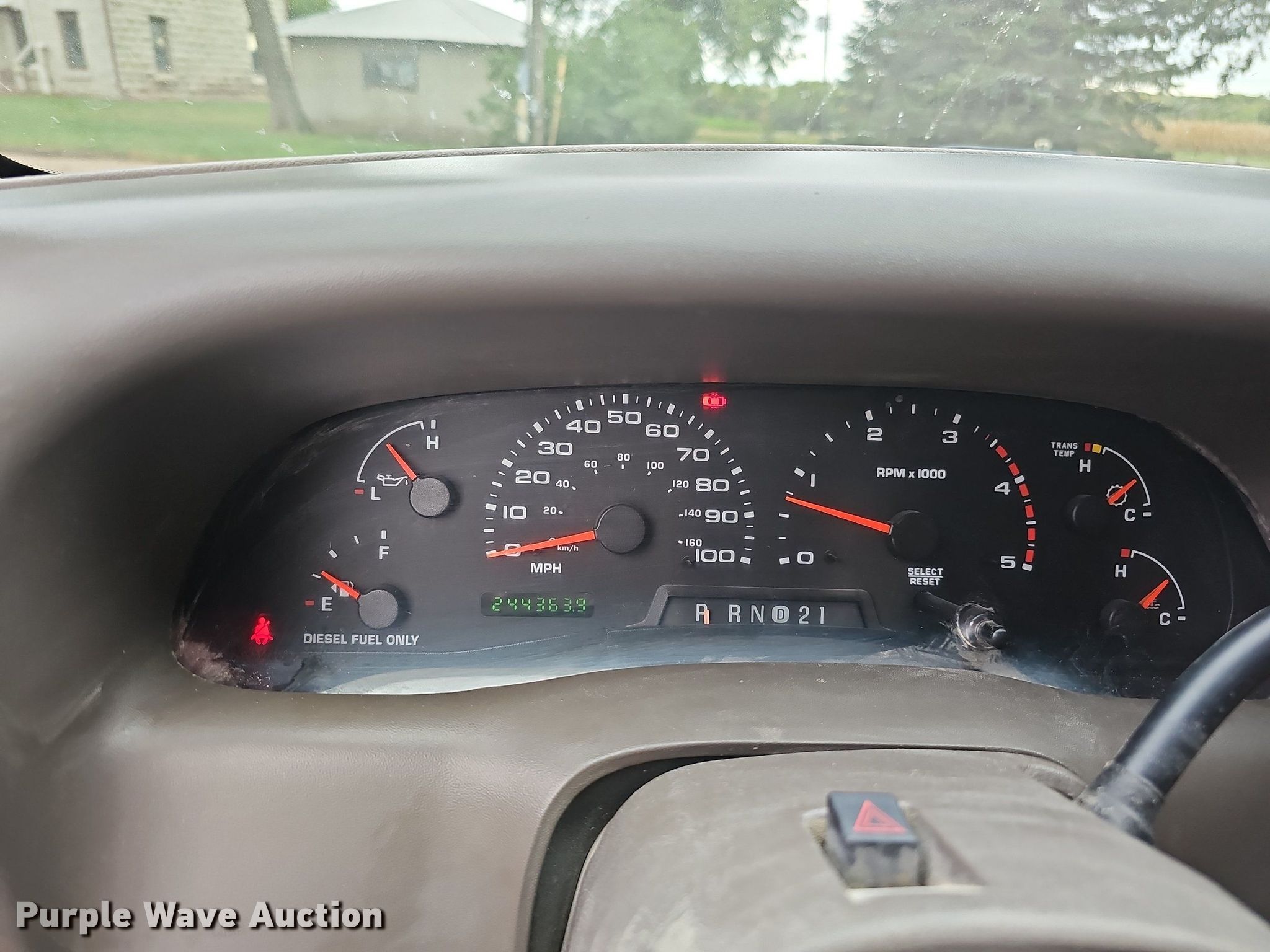 2002 Ford F250 Super Duty Lariat Crew Cab pickup truck. Miles: 244,364 on odometer, VIN: 1FTNW21FX2EB41148. Engine Displacement: 7.3L V8 OHV, Cylinders: 8, Fuel type: Diesel. Transmission Automatic, Four wheel drive. Interior AC, Heat, Seat: Heated, Power driver, Power passenger, Power windows, Power locks, Cruise control. Features Hitch: Gooseneck. Tires Size: LT265/75R16. Notes Non-operational temperature gauge, Non-operational rear passenger door handle. Nebraska title. Title distribution may be delayed up to 14 days from verification of funds. 63488 712 Trail. Humboldt, NE 68376