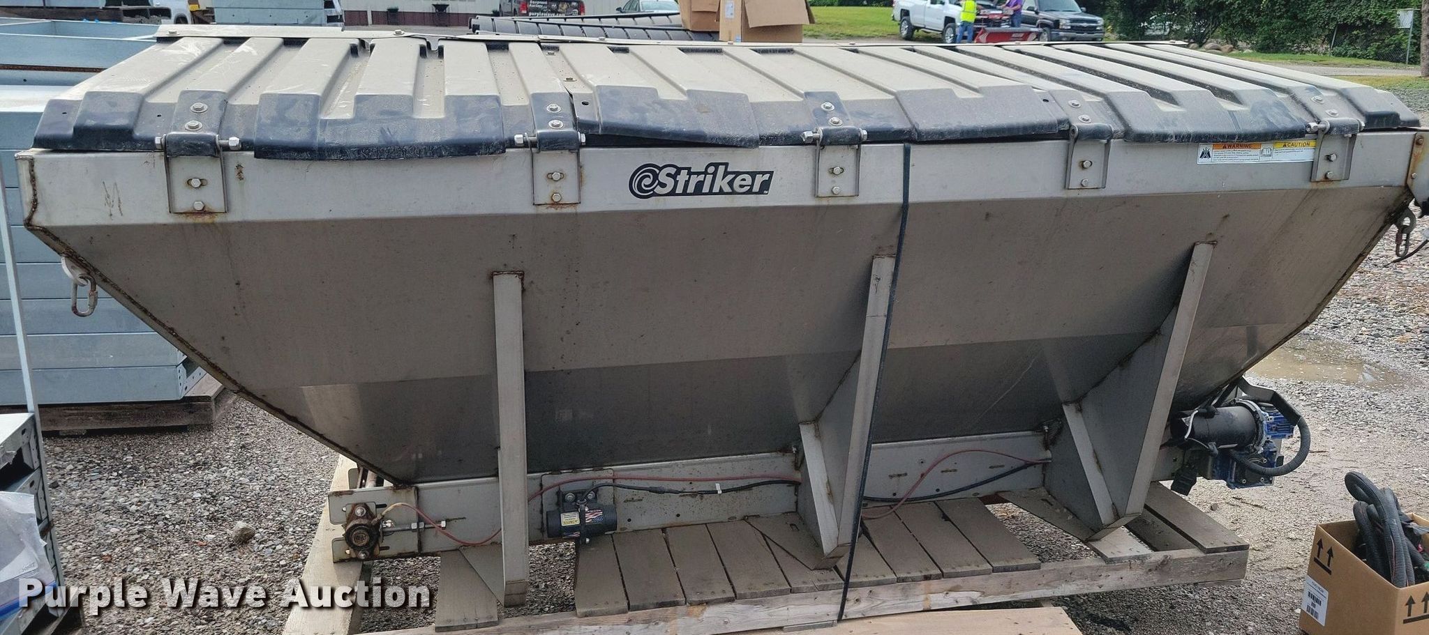 2021 Western Striker spreader. Serial: 99039-1, Capacity: 4.5 cu yd, Dimensions: 9' L x 70" W, Controller. All Iowa Pools Retirement. 1325 Hoak Drive. West Des Moines, IA 50265
