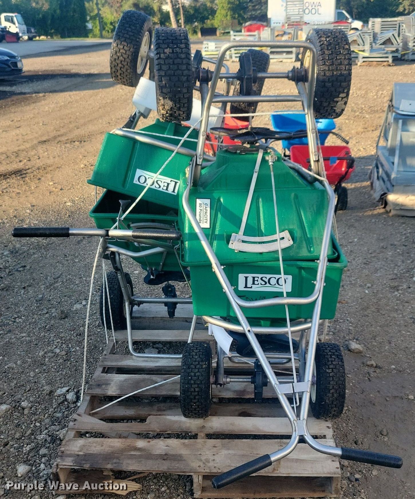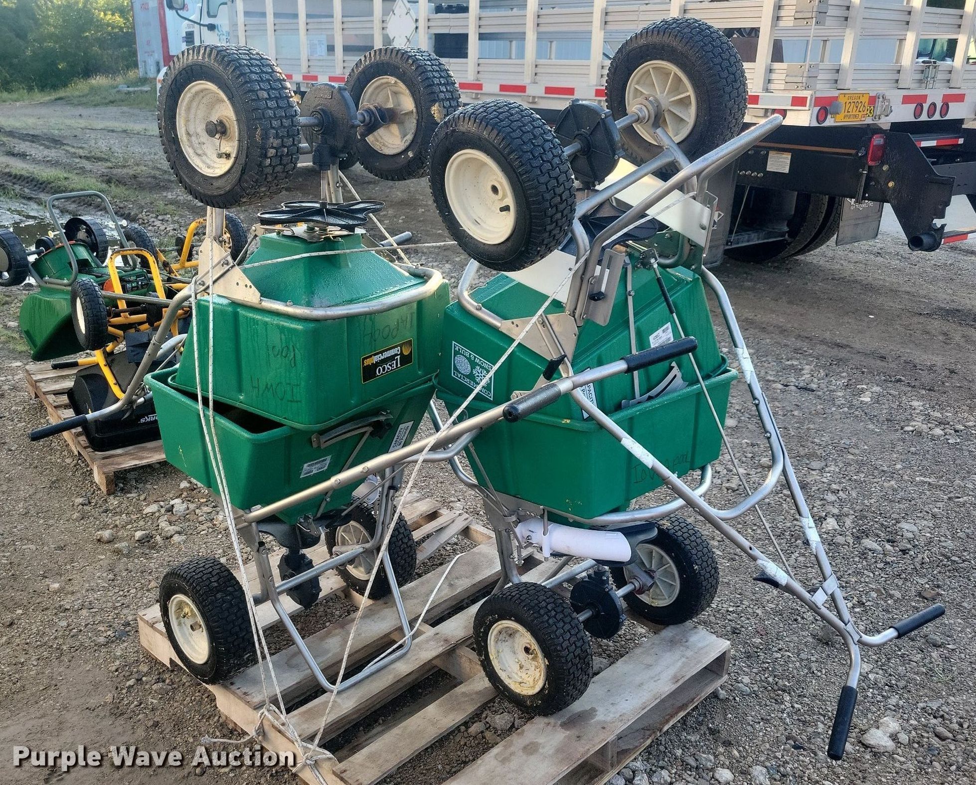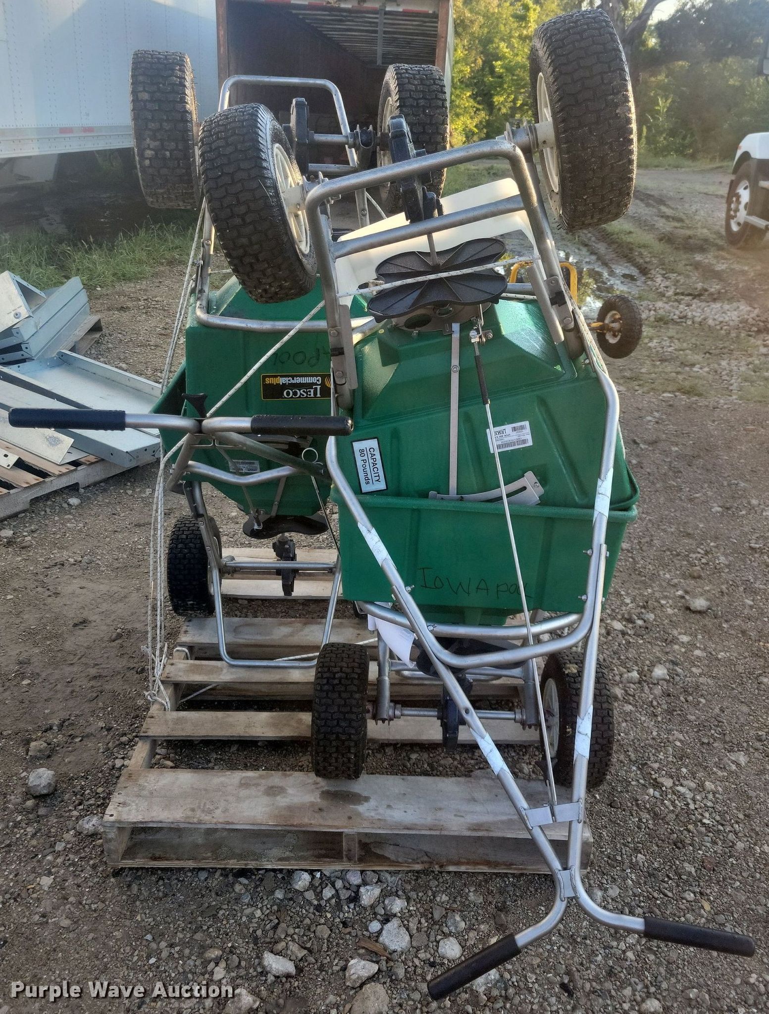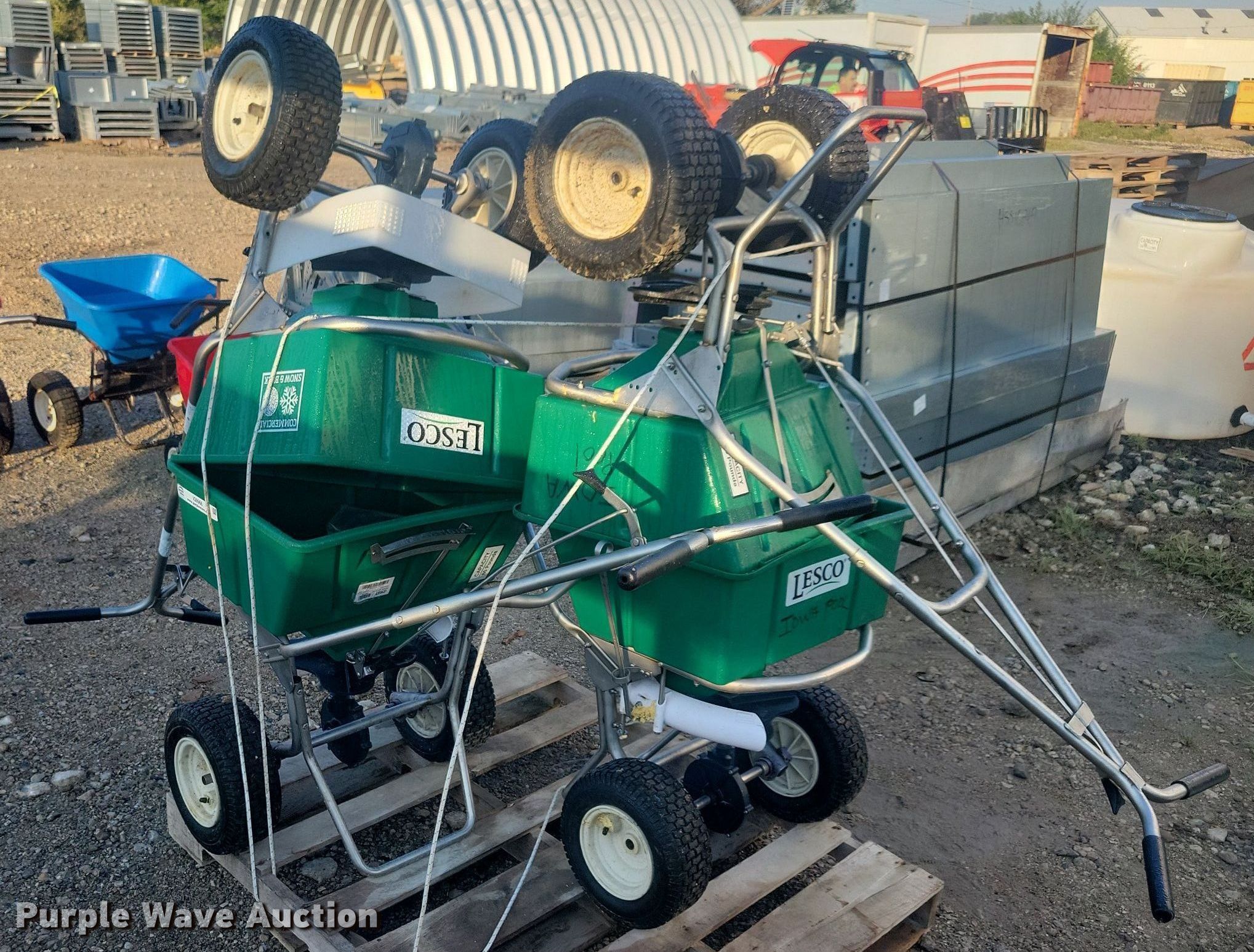 Purple Wave is selling a used Lawn and Garden in Iowa. This item is a (4) Lesco spreaders with the following: (4) Lesco spreaders. All Iowa Pools Retirement. 1325 Hoak Drive. West Des Moines, IA 50265