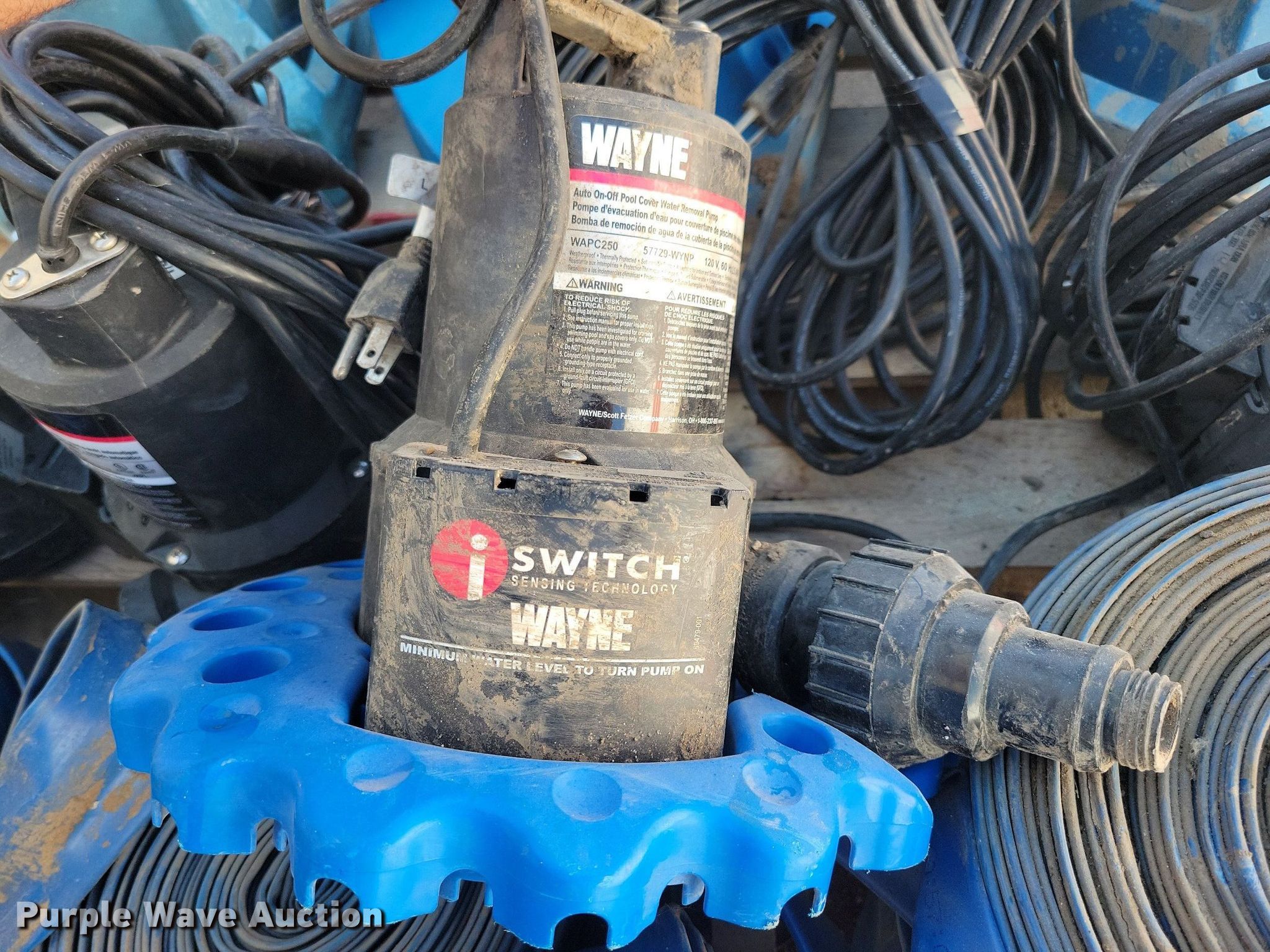 (7) Wayne submersible pumps. HP: 1/4 , Hose. All Iowa Pools Retirement. 1325 Hoak Drive. West Des Moines, IA 50265