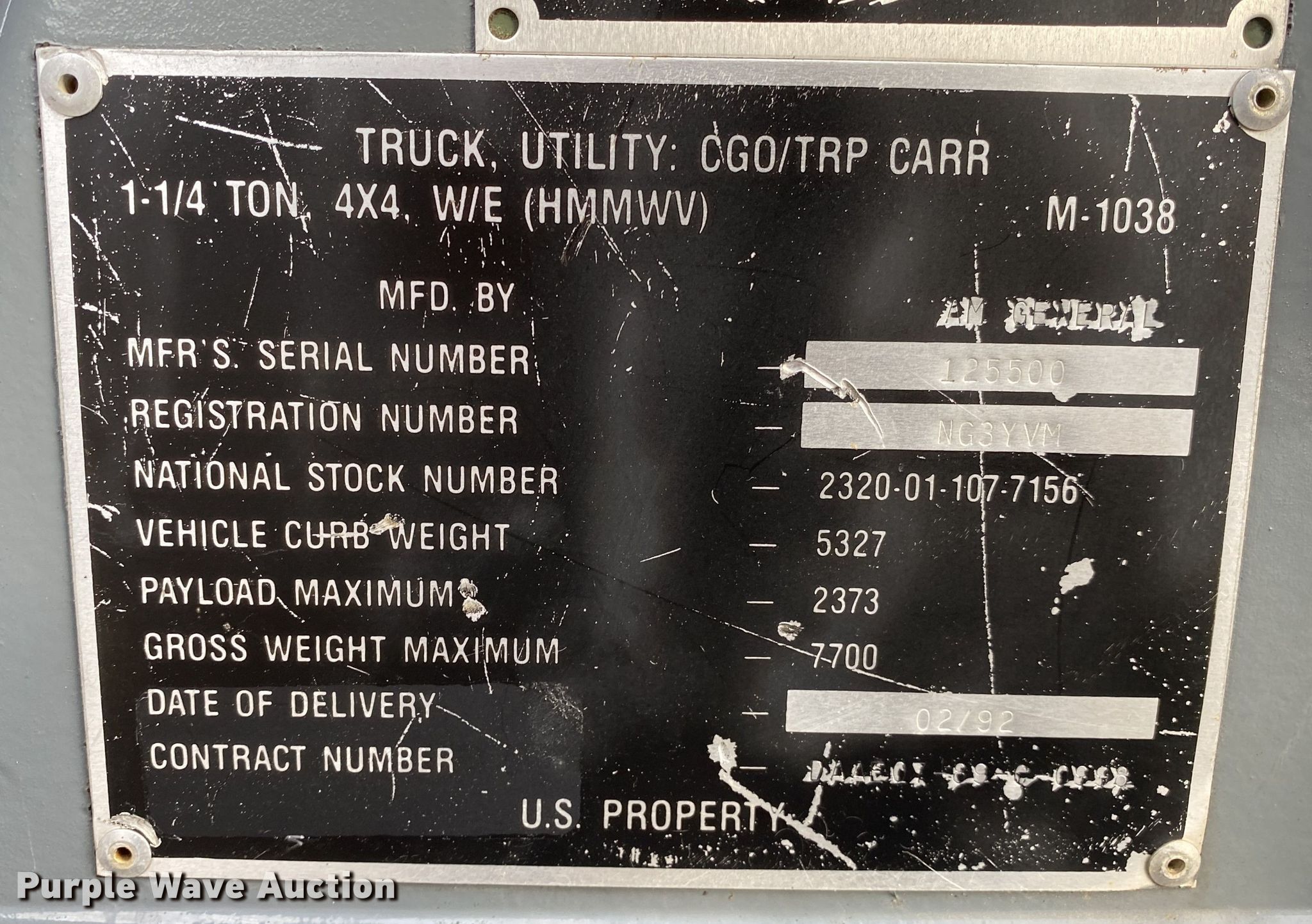 Purple Wave is selling a used Passenger Vehicle in Oklahoma. This item is a 1988 Am General HMMWV SUV with the following: Miles: 12,218 on odometer, VIN: 125500