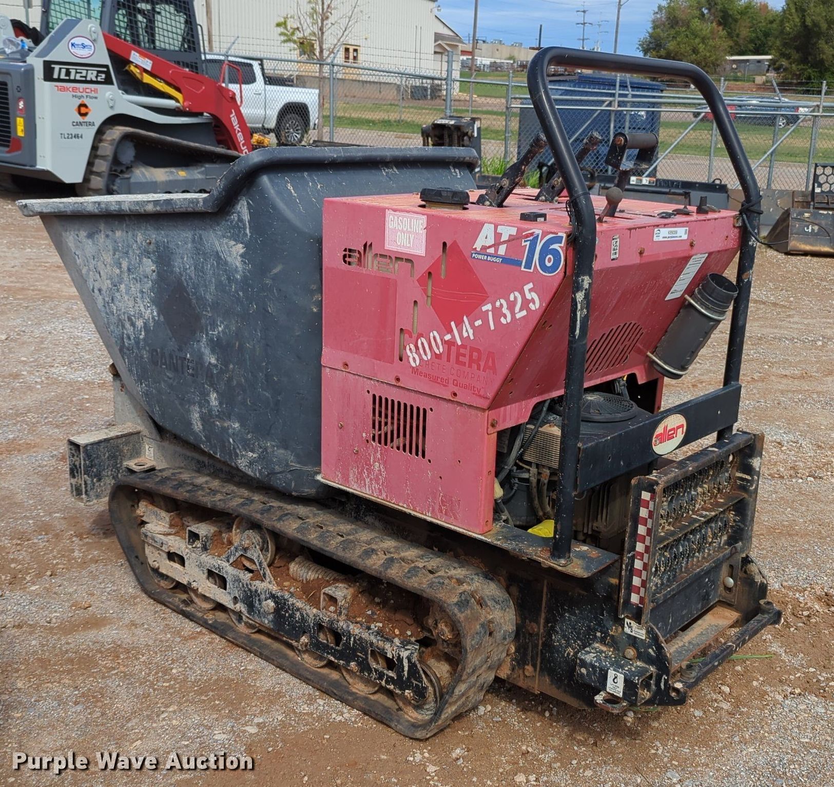 Allen AT16 power buggy. Hours: 565 on meter. Engine Kohler, Cylinders: 2, Fuel type: Gas. Transmission Hydrostatic. Features Dump hopper Capacity: 1,500 lbs. Tracks Width: 7", Rubber. Notes Unknown operating condition. Cantera Concrete Company. 820 N May Ave. Oklahoma City, OK 73107