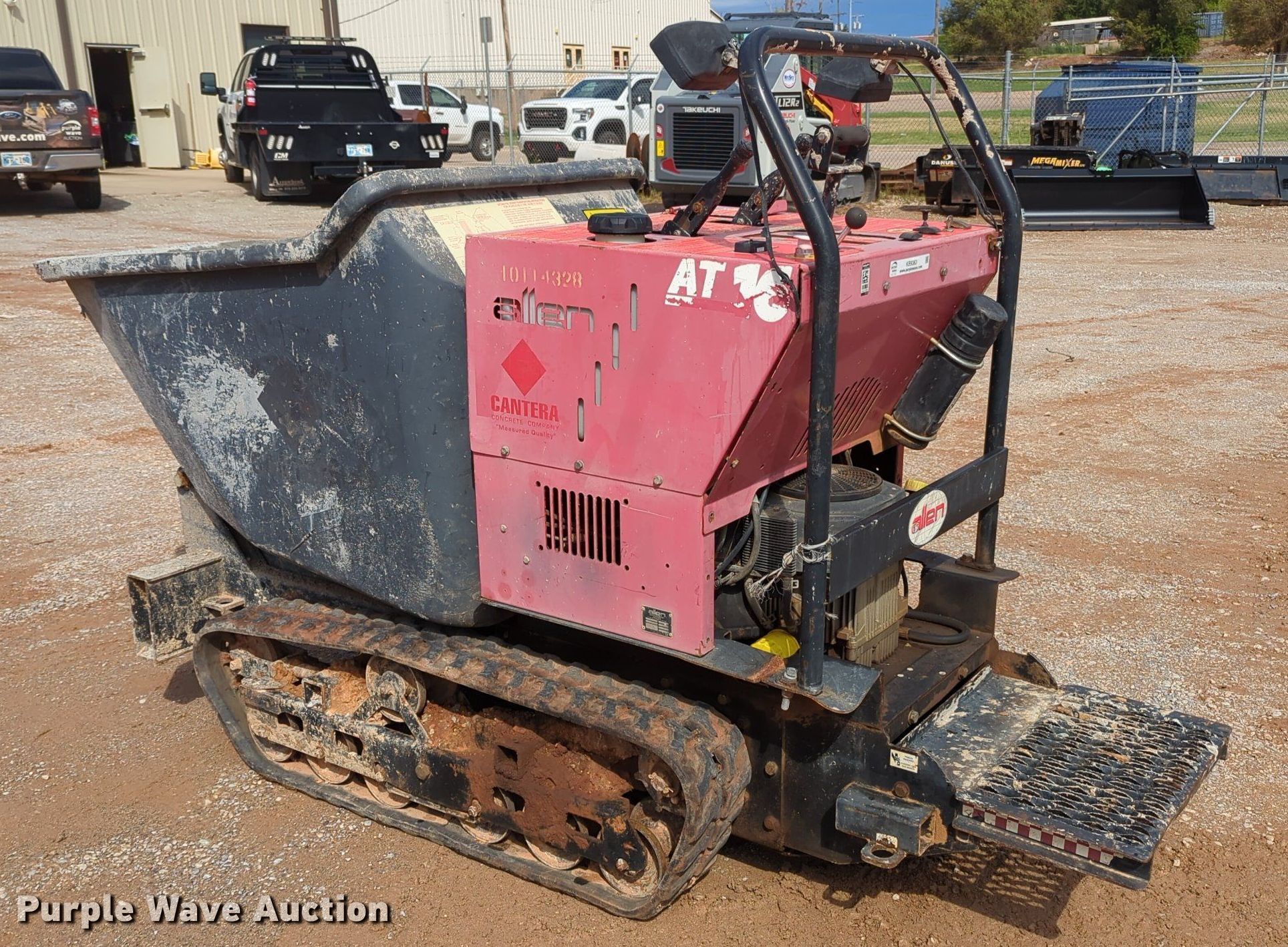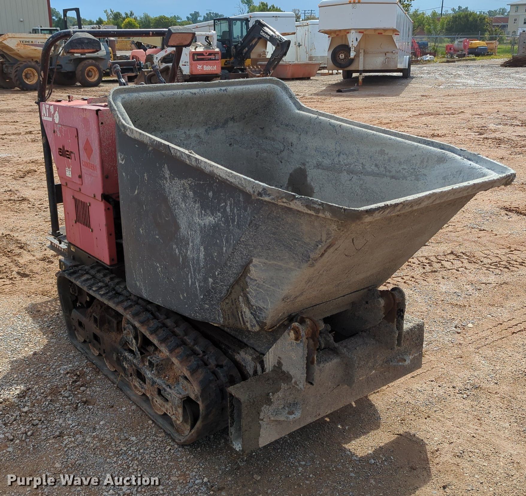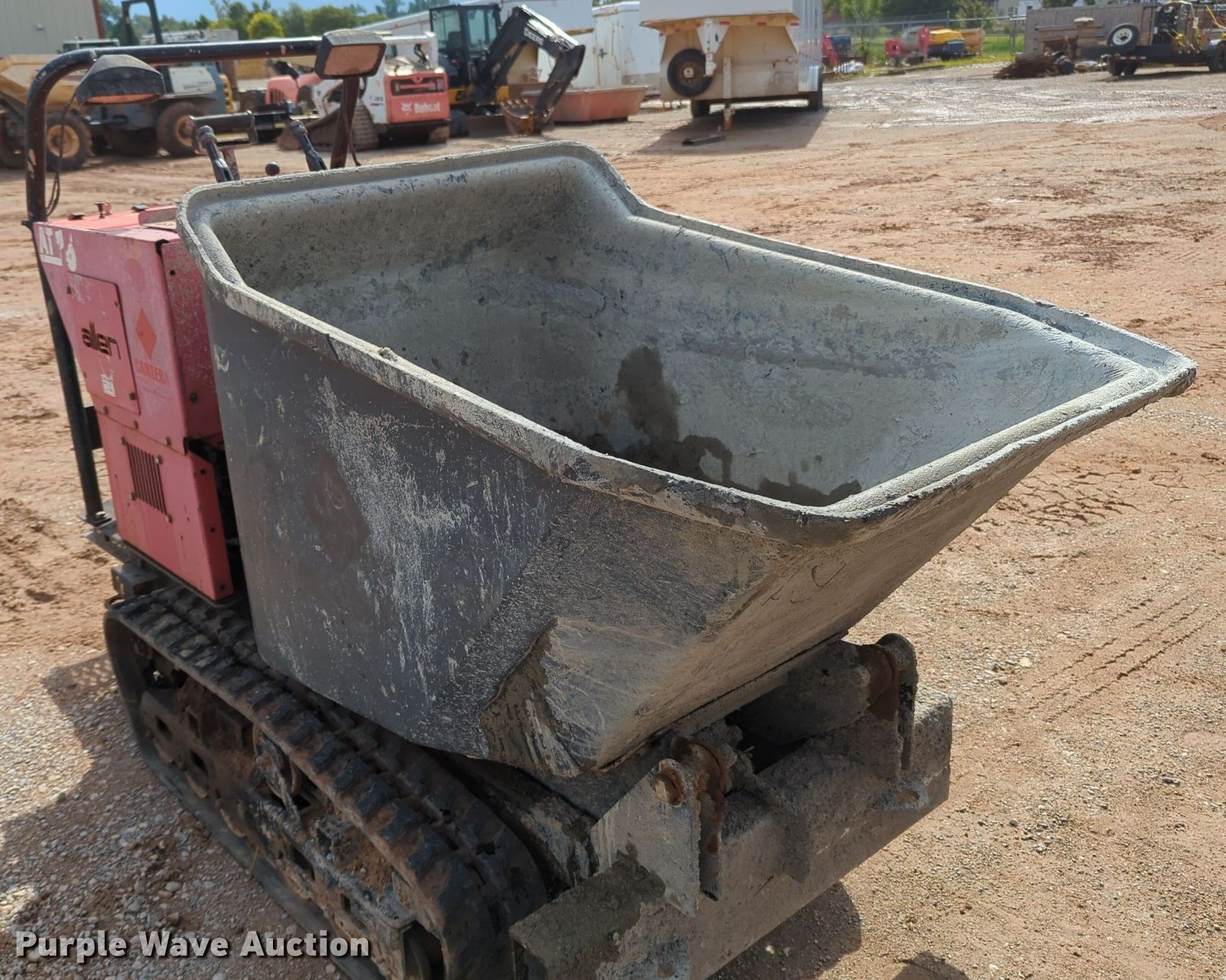 Allen AT16 power buggy. Hours: 684 on meter, Serial: T150113010. Engine Kohler, Cylinders: 2, Fuel type: Gas, HP: 27. Transmission Hydrostatic. Features Dump hopper, Capacity: 1,500 lbs. Tracks Width: 7", Rubber. Notes Unknown operating condition. Cantera Concrete Company. 820 N May Ave. Oklahoma City, OK 73107