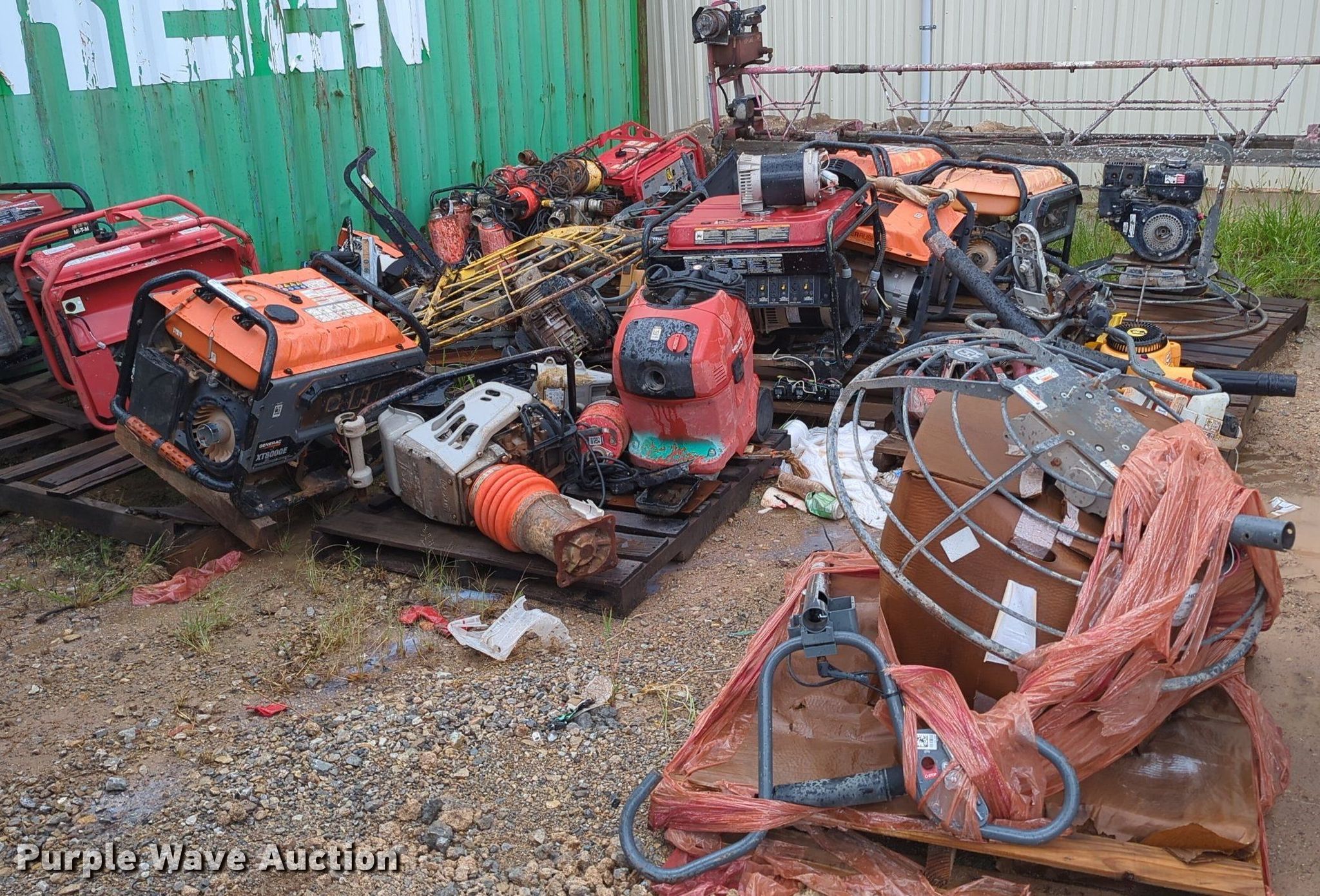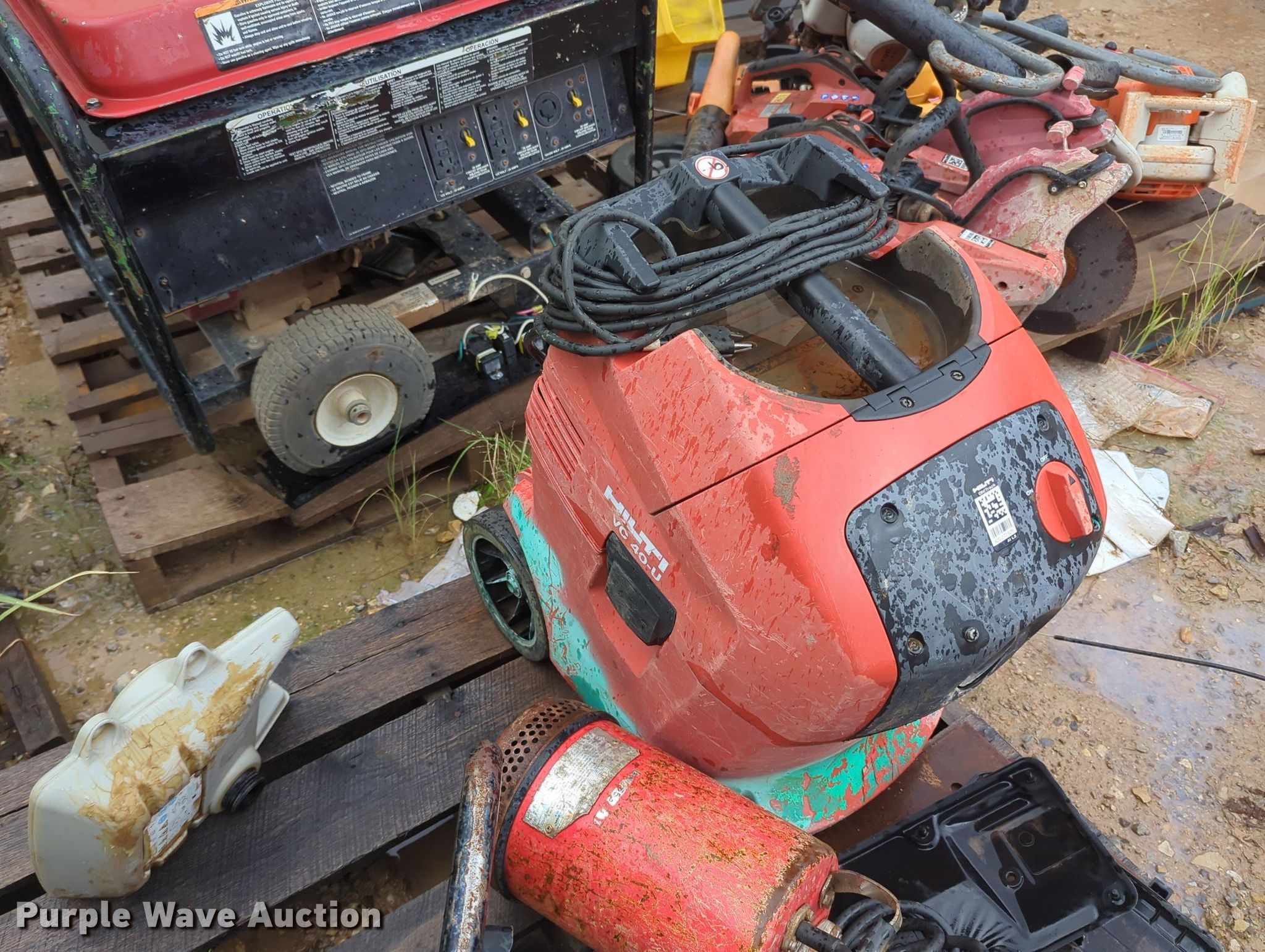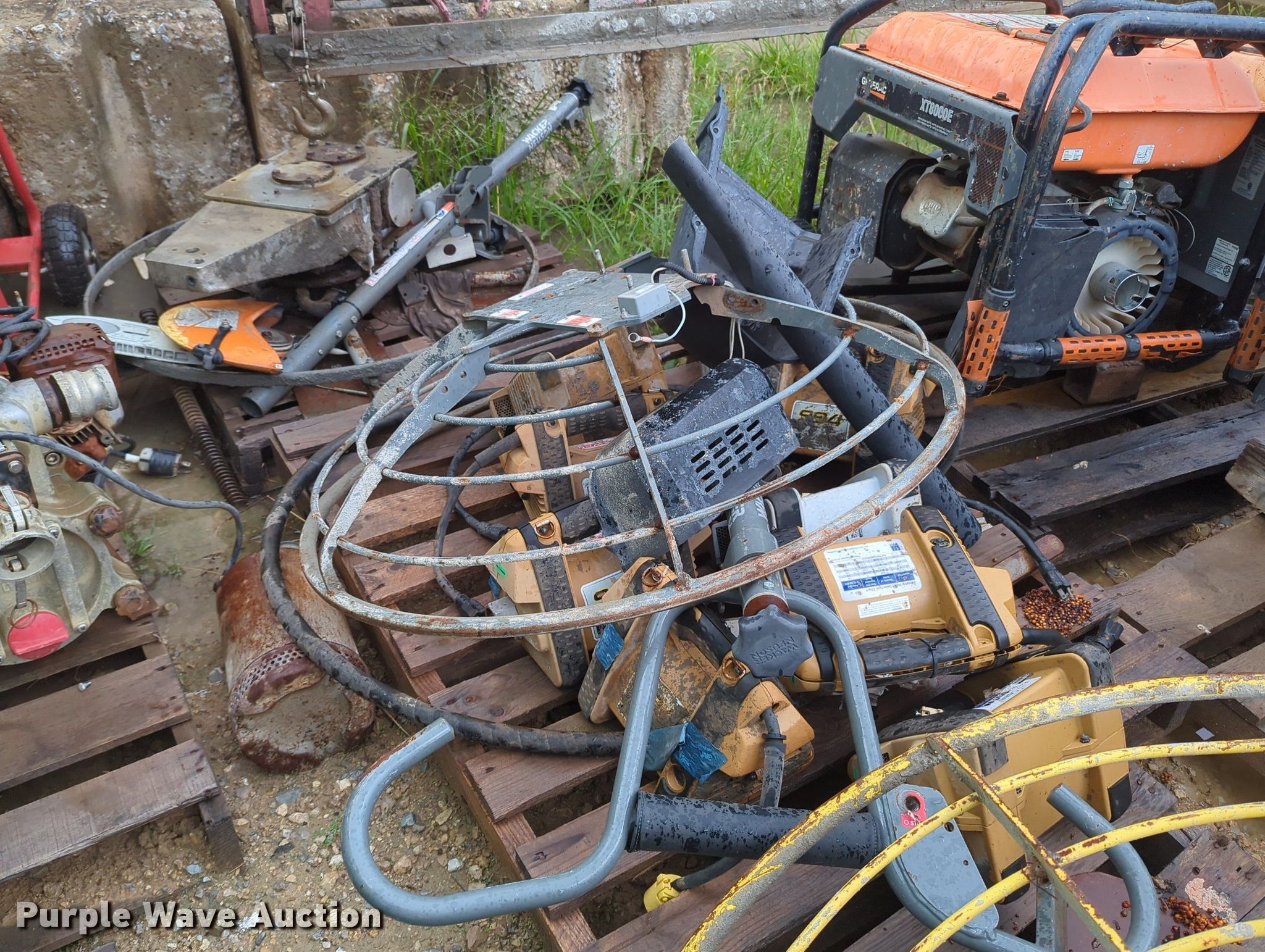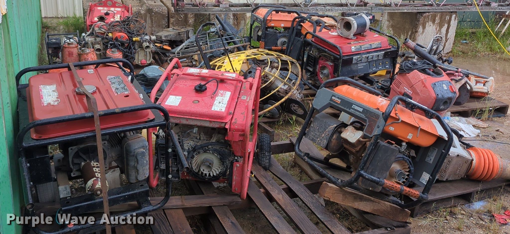 Purple Wave is selling a used Tools in Oklahoma. This item is a Tools with the following: Power trowel, Power trowel parts, Makasa plate compactor, Hilti VC 40-U, Pumps, Concrete saws, (7) generators, (3) Generac XT800E, Power Rush, MQ Power, Mi-T-M, Blowers and more