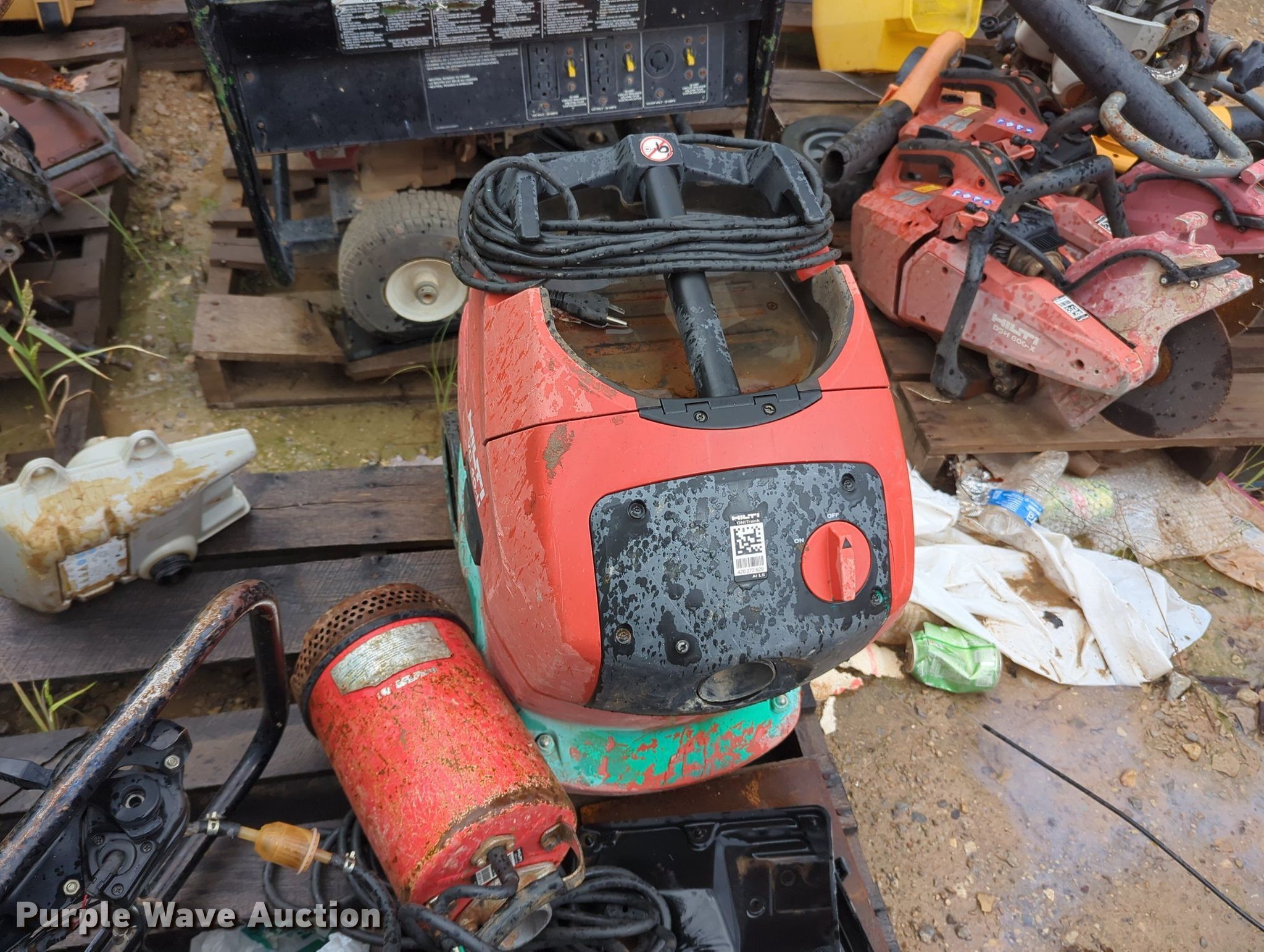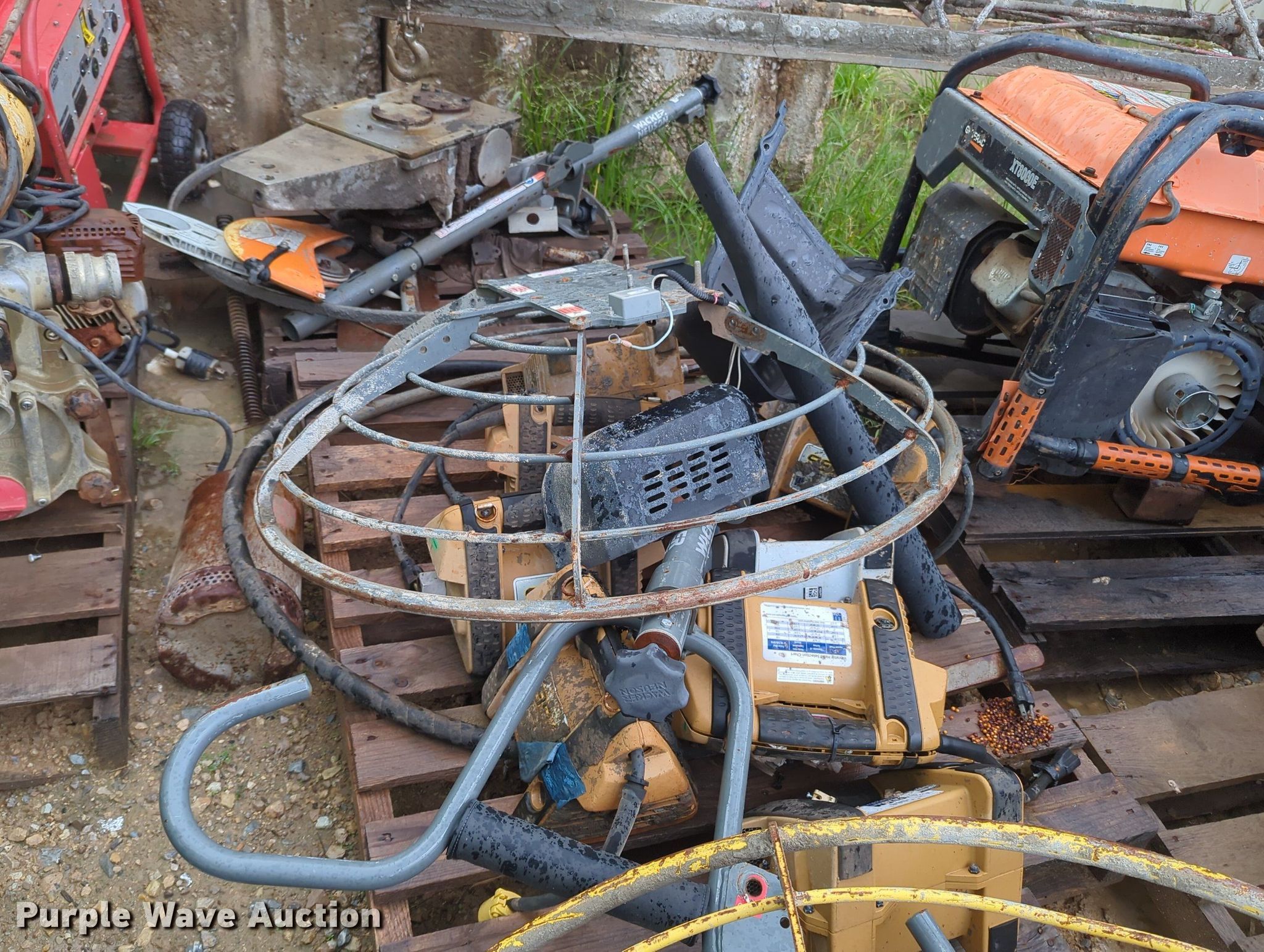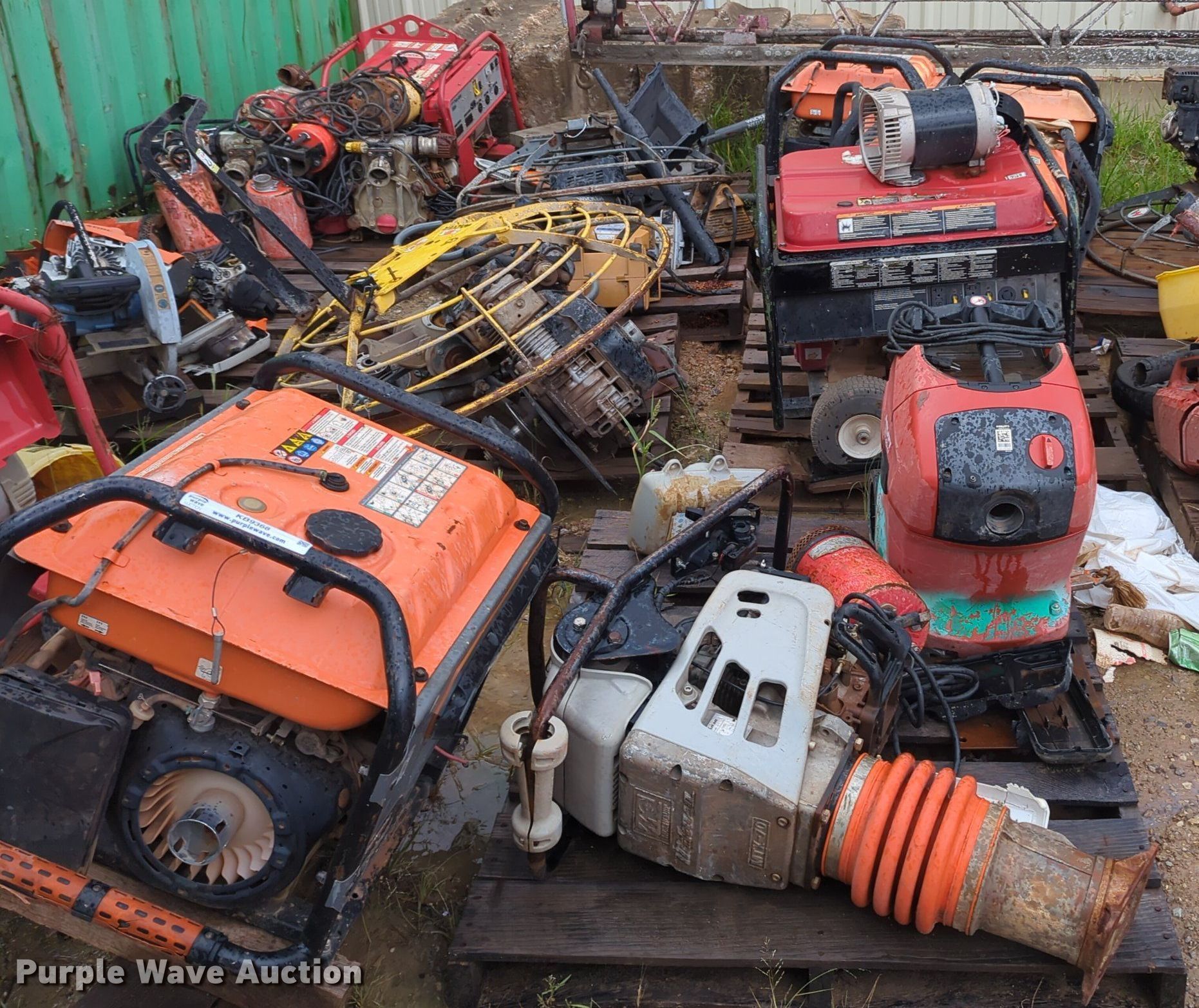 Purple Wave is selling a used Tools in Oklahoma. This item is a Tools with the following: Power trowel, Power trowel parts, Makasa plate compactor, Hilti VC 40-U, Pumps, Concrete saws, (7) generators, (3) Generac XT800E, Power Rush, MQ Power, Mi-T-M, Blowers and more