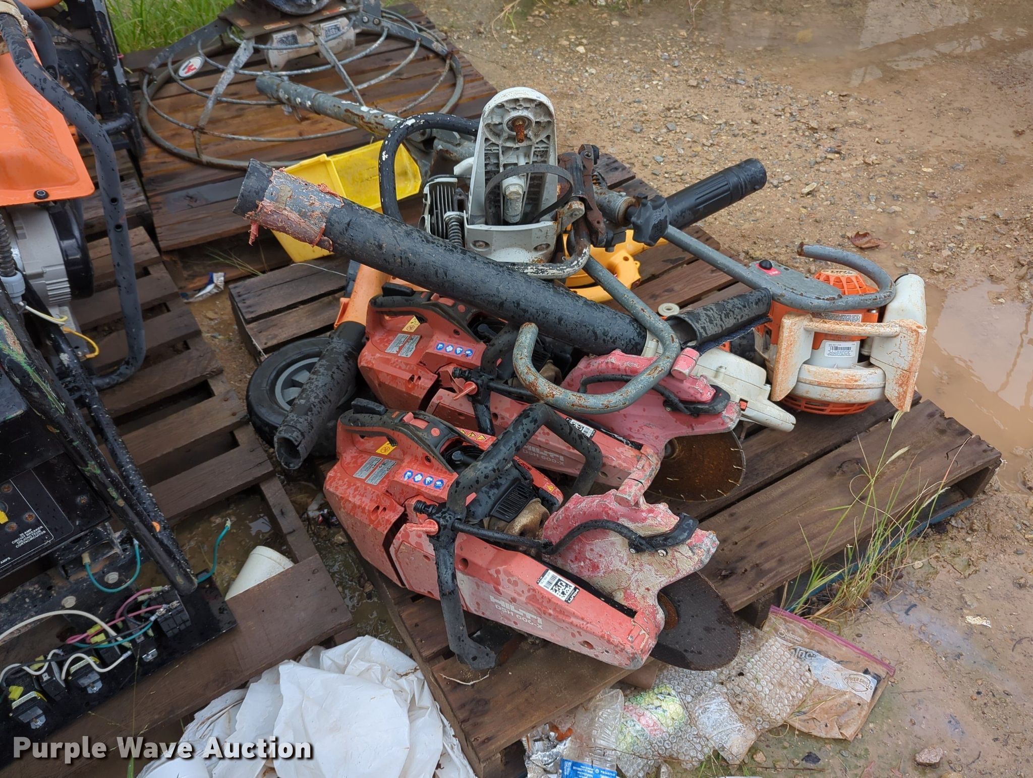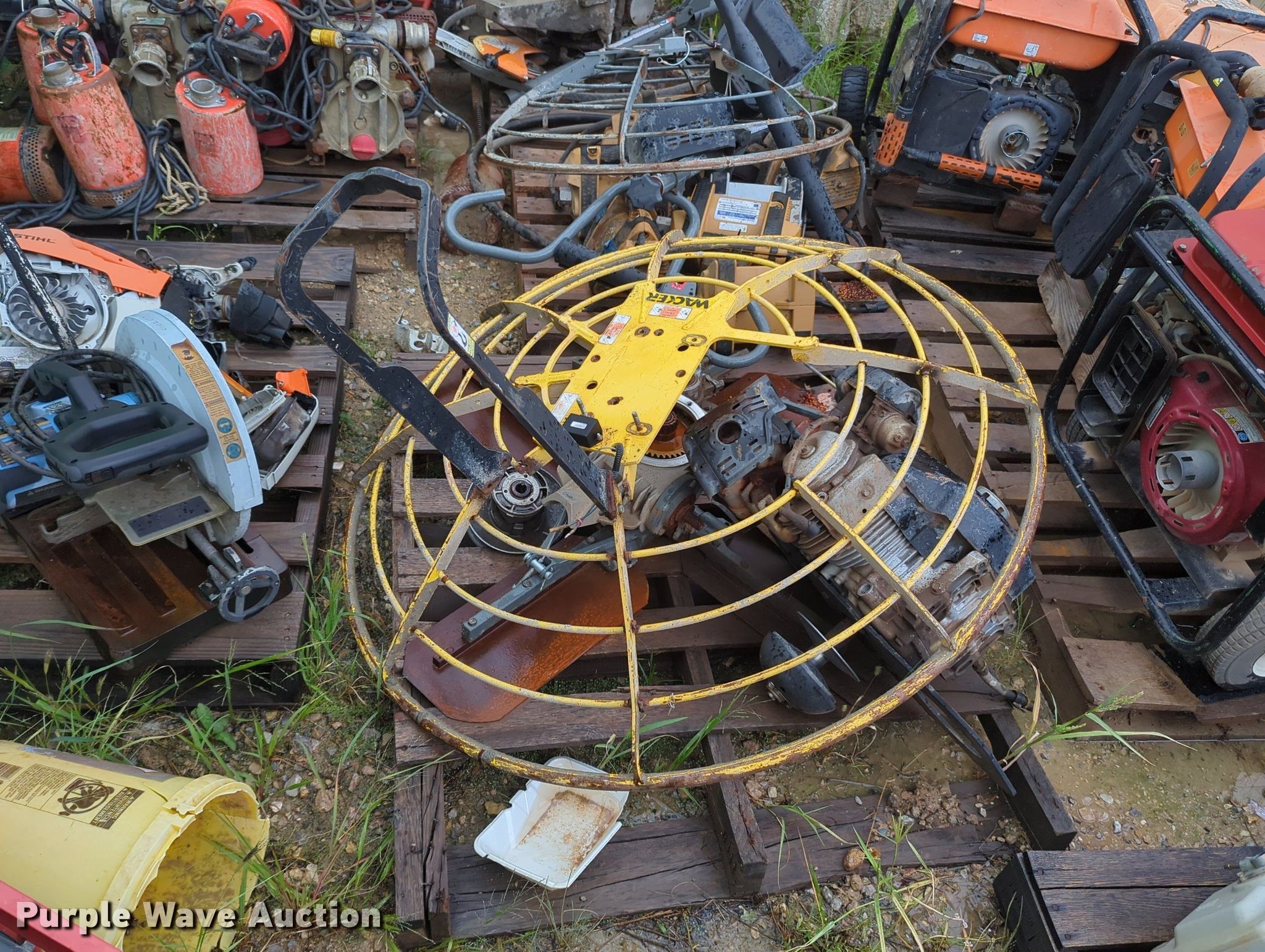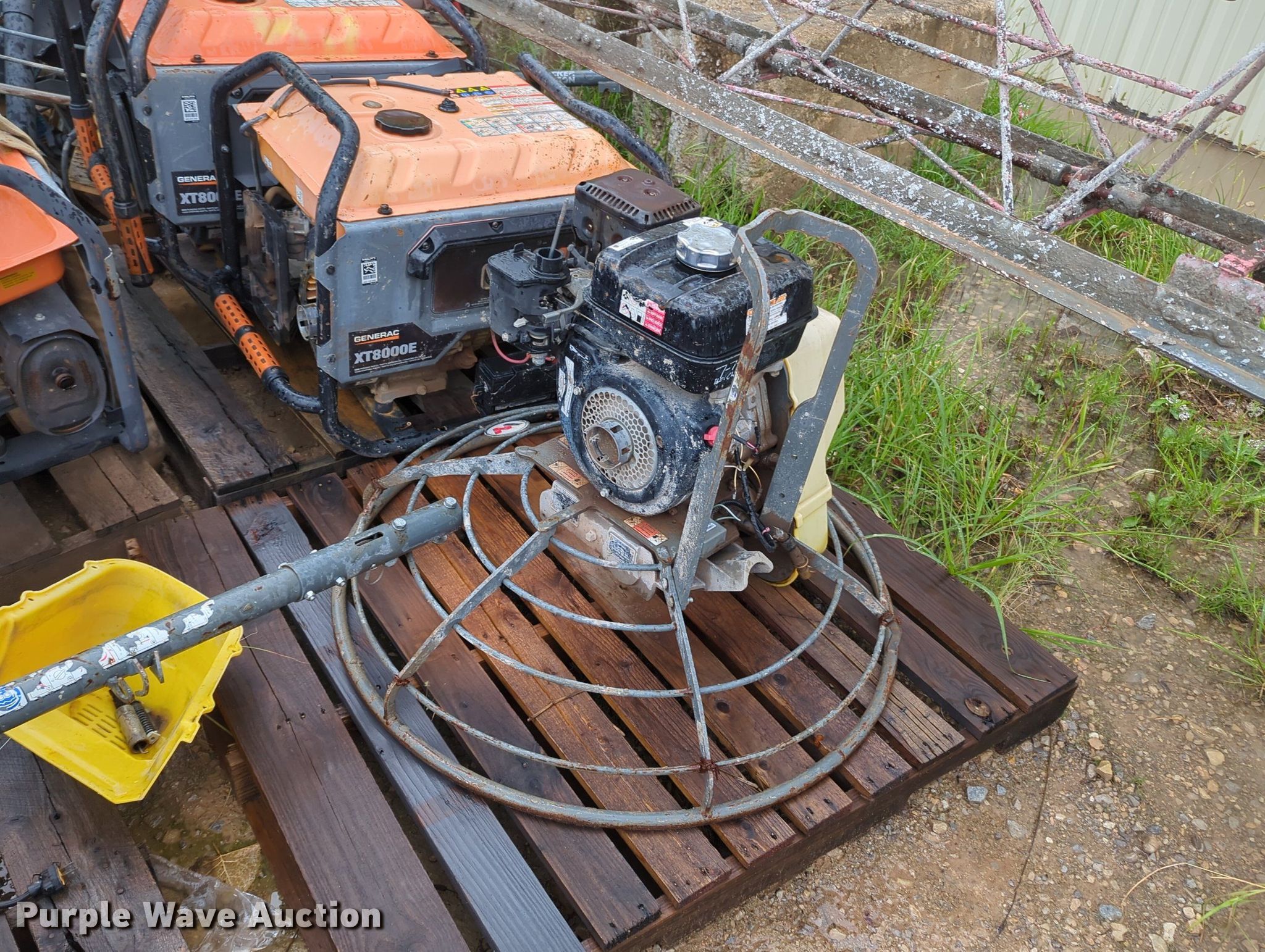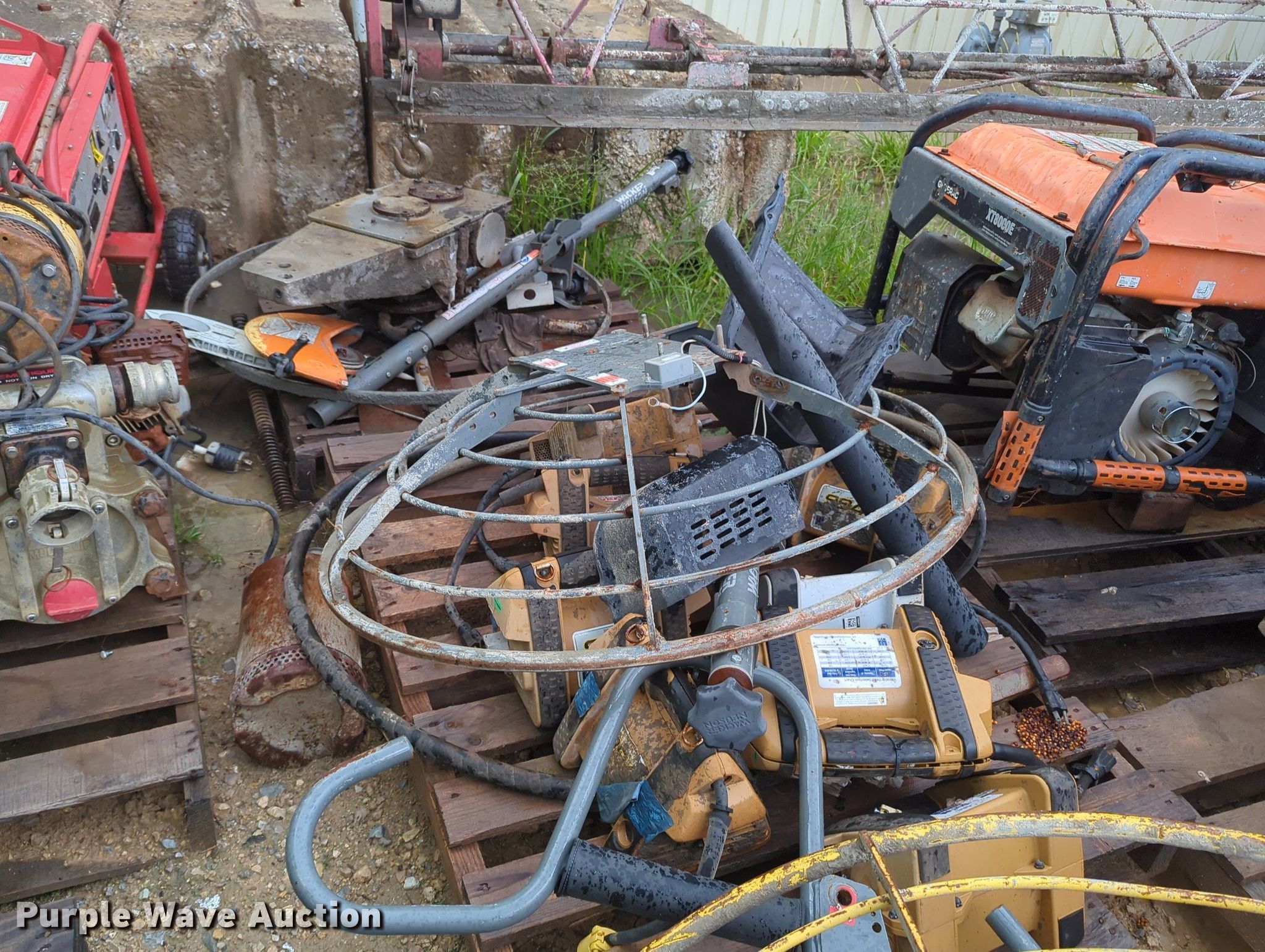Purple Wave is selling a used Tools in Oklahoma. This item is a Tools with the following: Power trowel, Power trowel parts, Makasa plate compactor, Hilti VC 40-U, Pumps, Concrete saws, (7) generators, (3) Generac XT800E, Power Rush, MQ Power, Mi-T-M, Blowers and more
