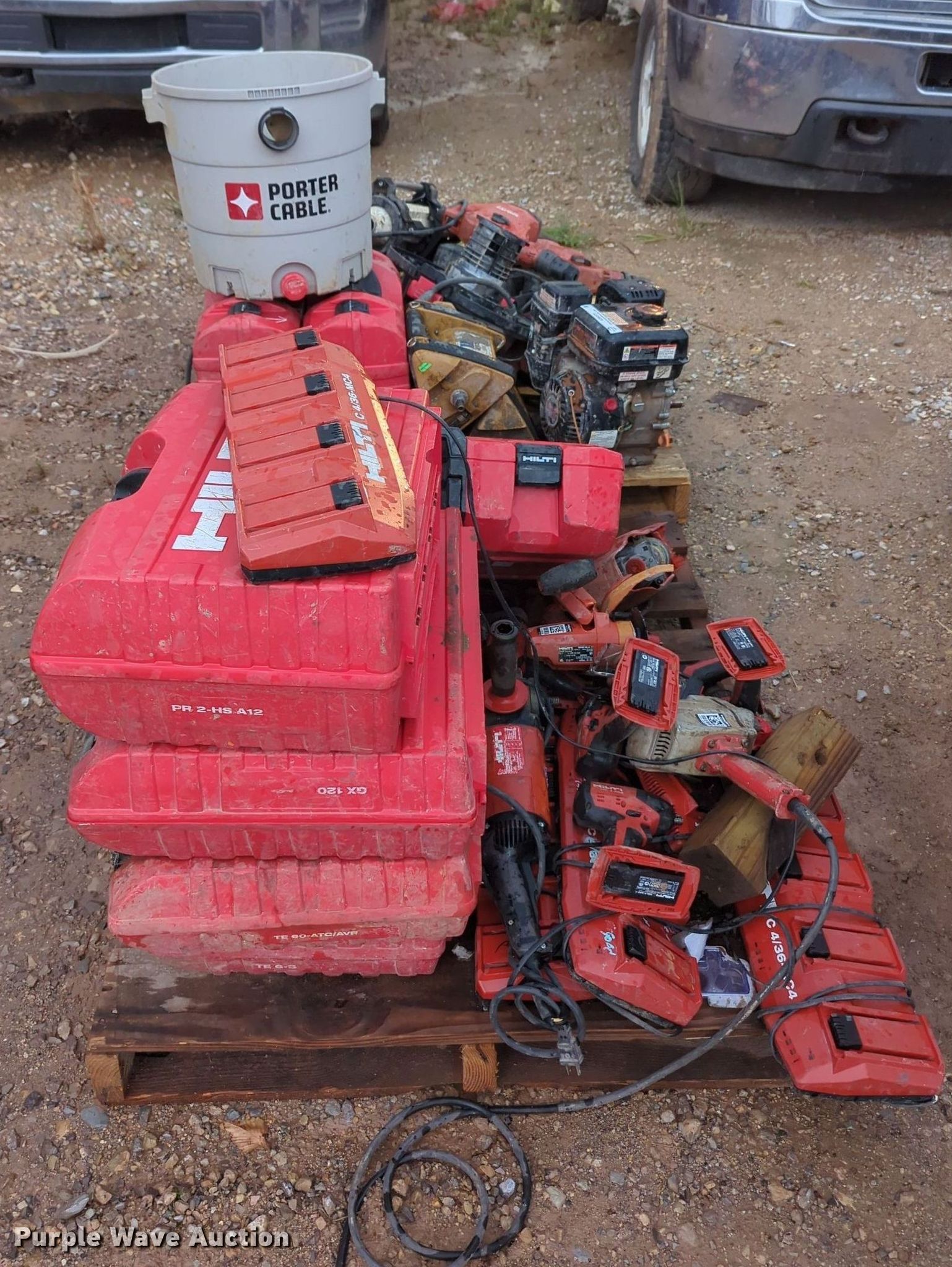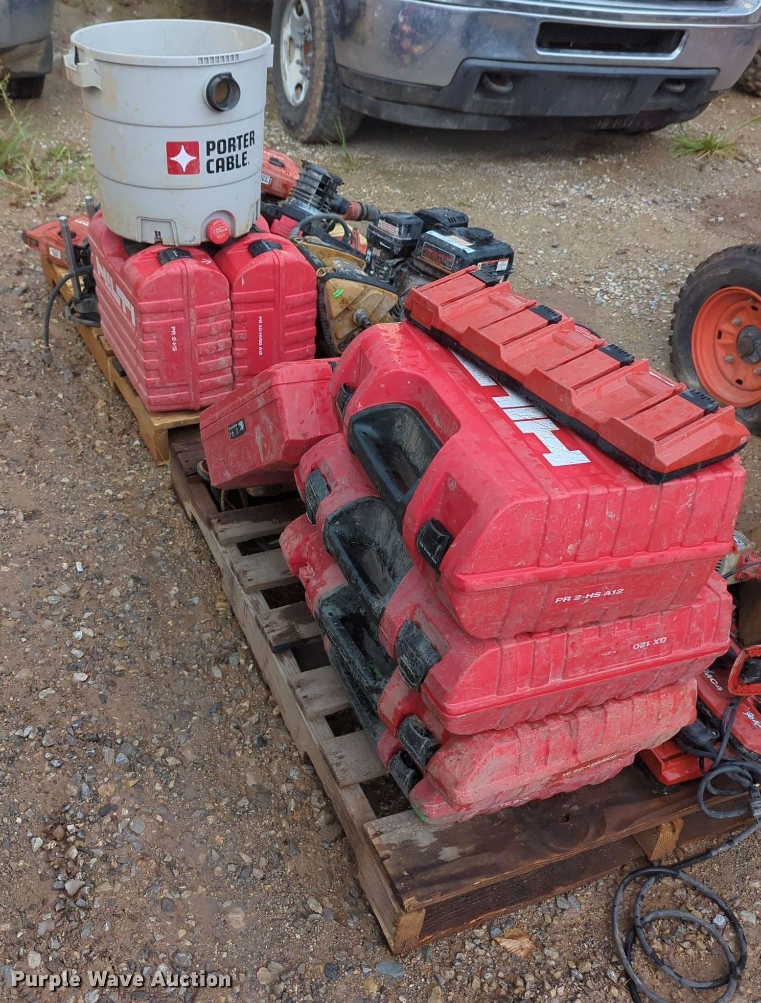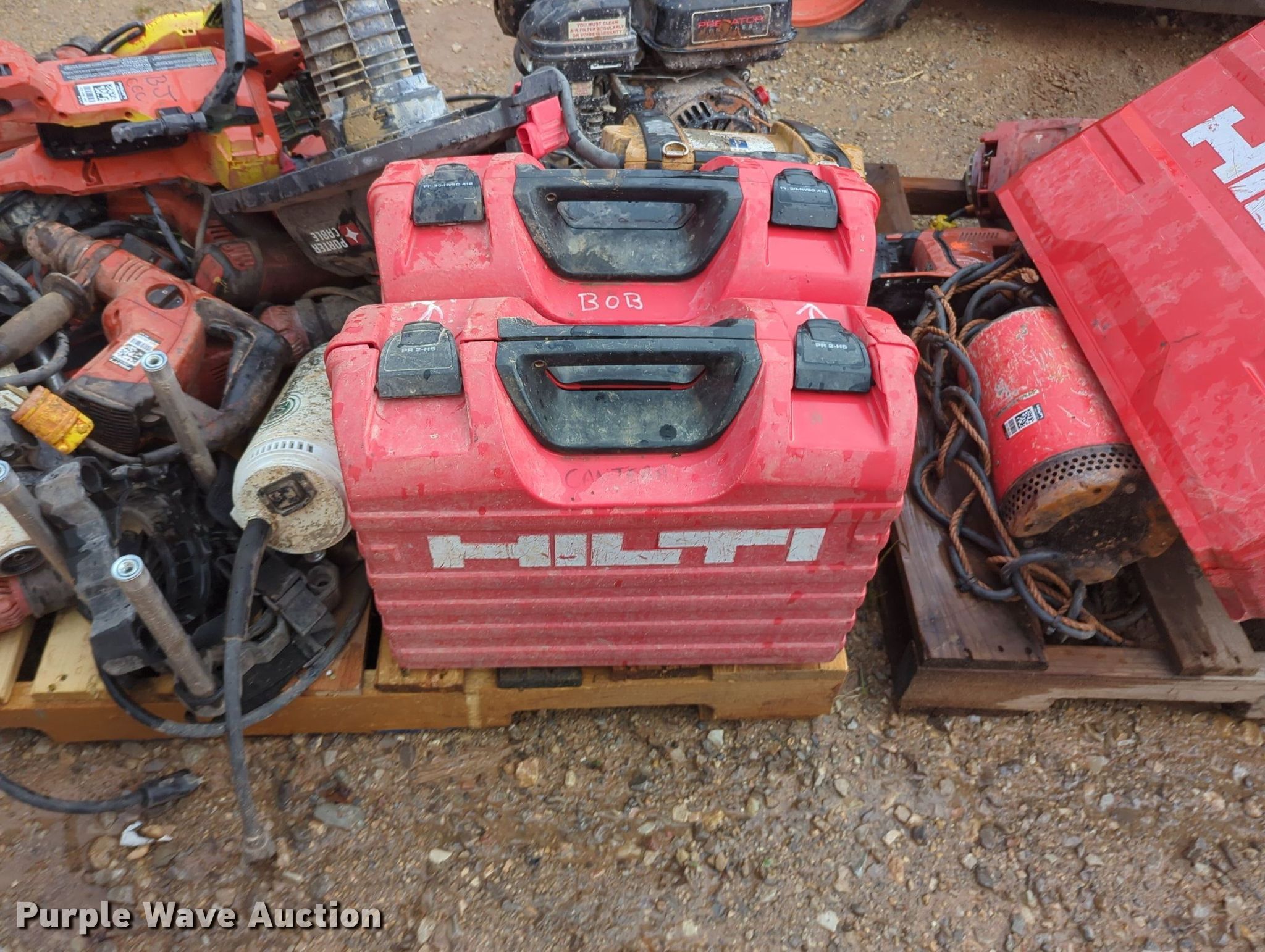Purple Wave is selling a used Tools in Oklahoma. This item is a Tools with the following: Hilti hammer drills, Cordless drills, Nail gun, (3) Hilti PR 2-HS laser levels, Porter Cable vacuum, Preditor single cylinder gas engine