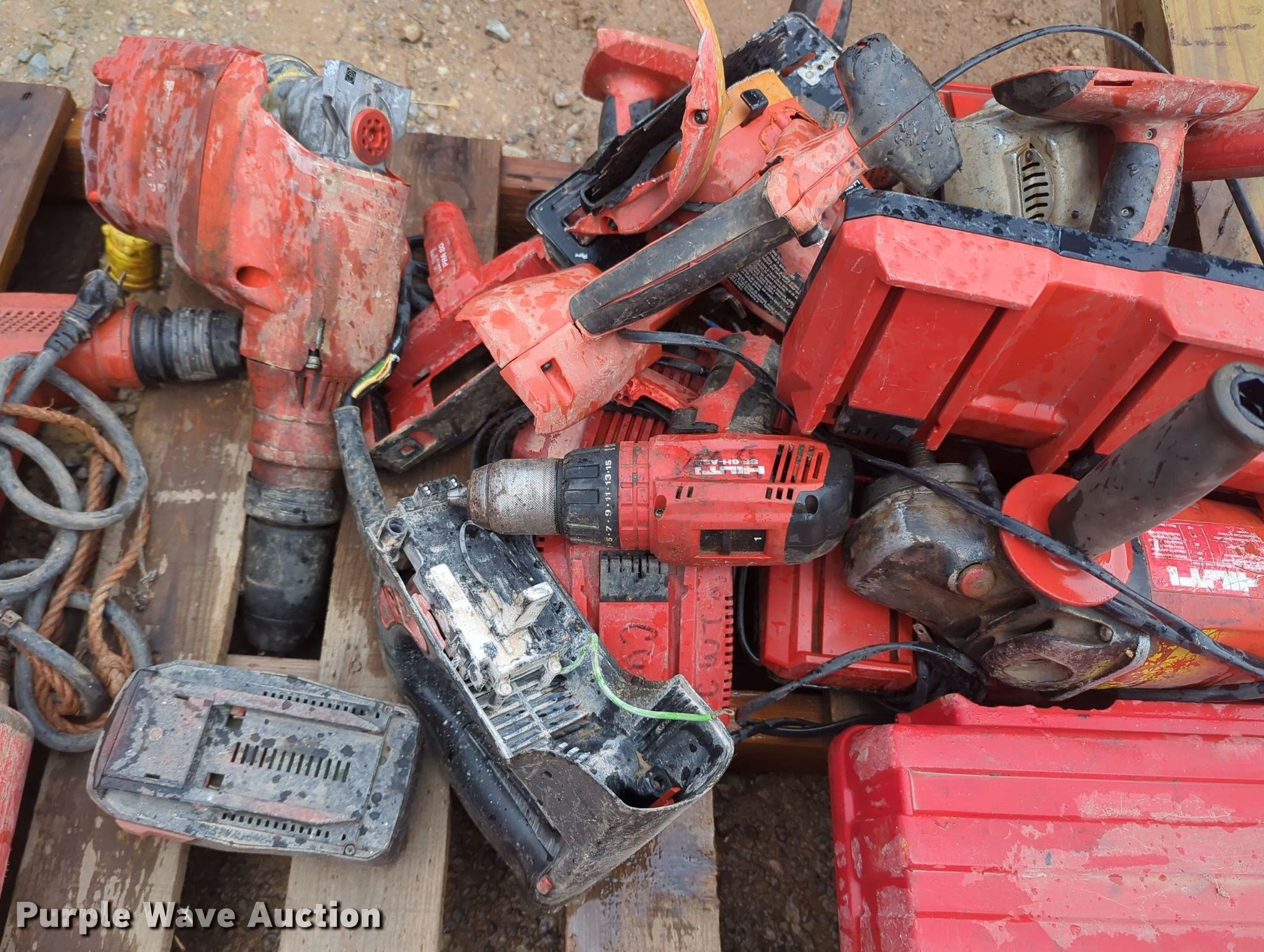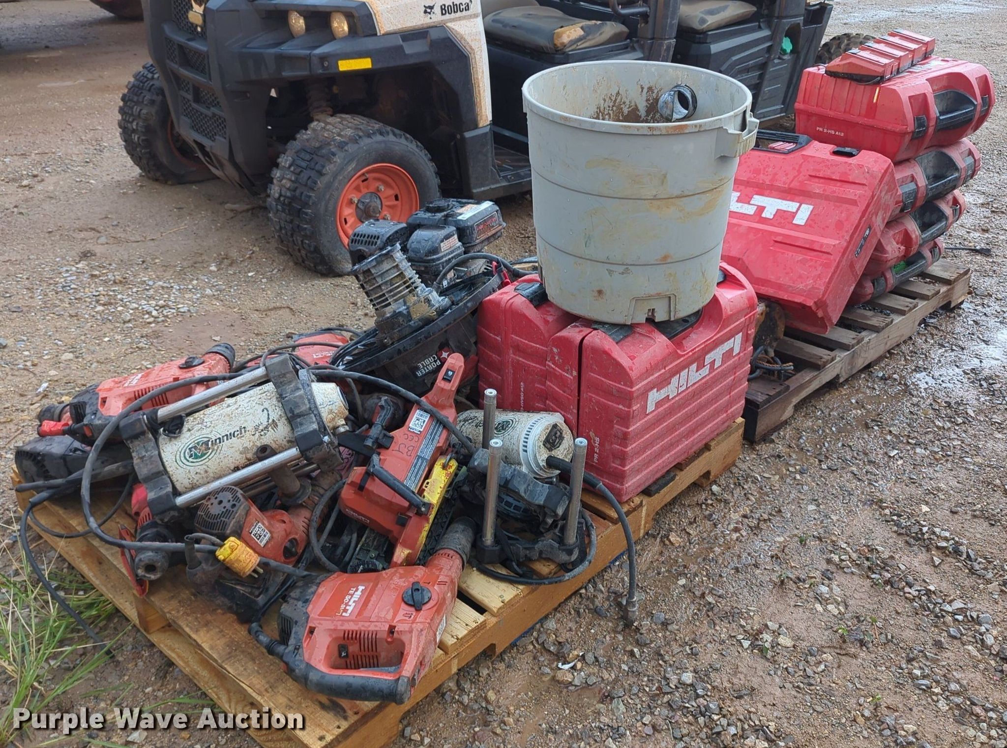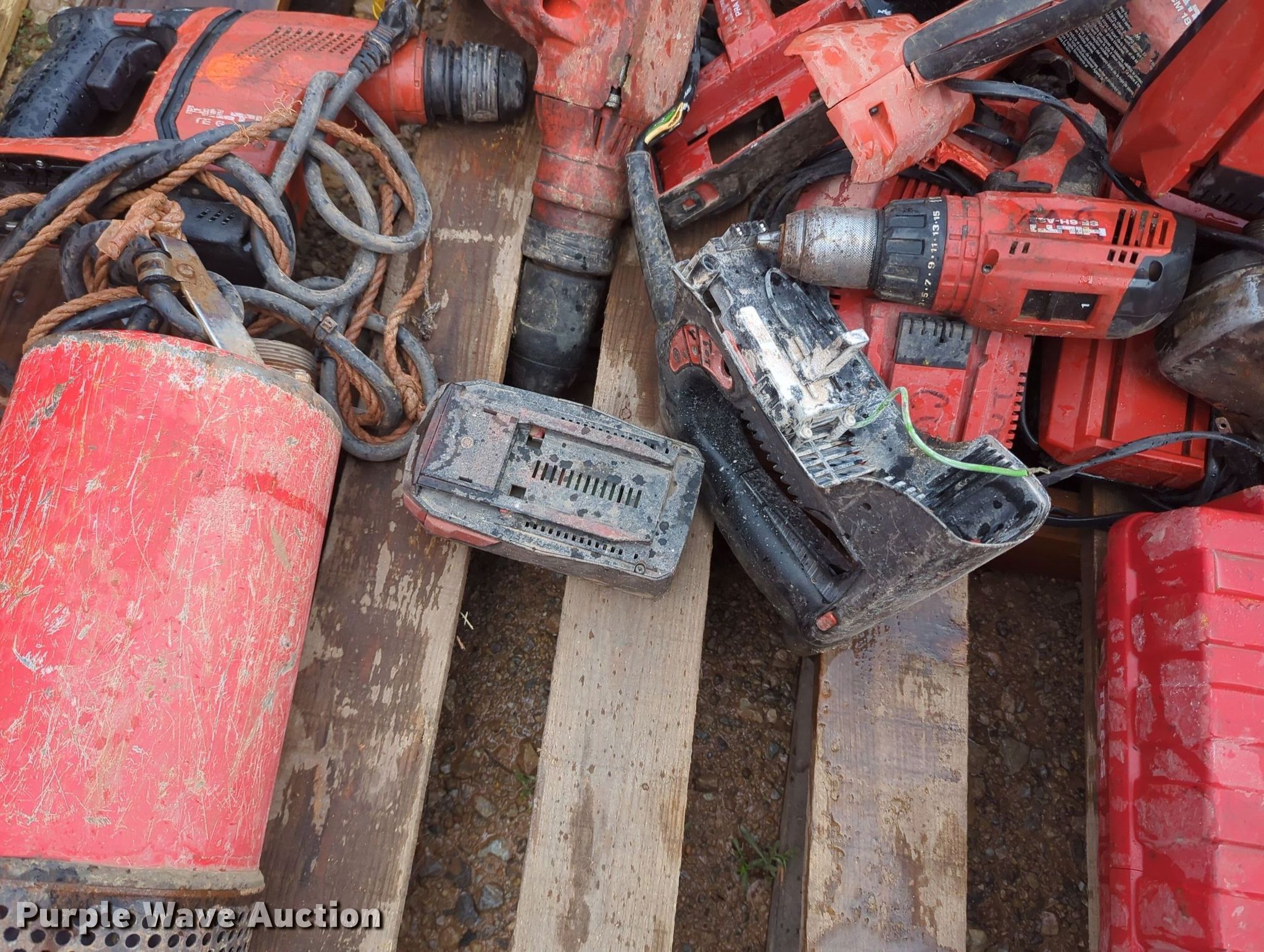 Purple Wave is selling a used Tools in Oklahoma. This item is a Tools with the following: Hilti hammer drills, Cordless drills, Nail gun, (3) Hilti PR 2-HS laser levels, Porter Cable vacuum, Preditor single cylinder gas engine