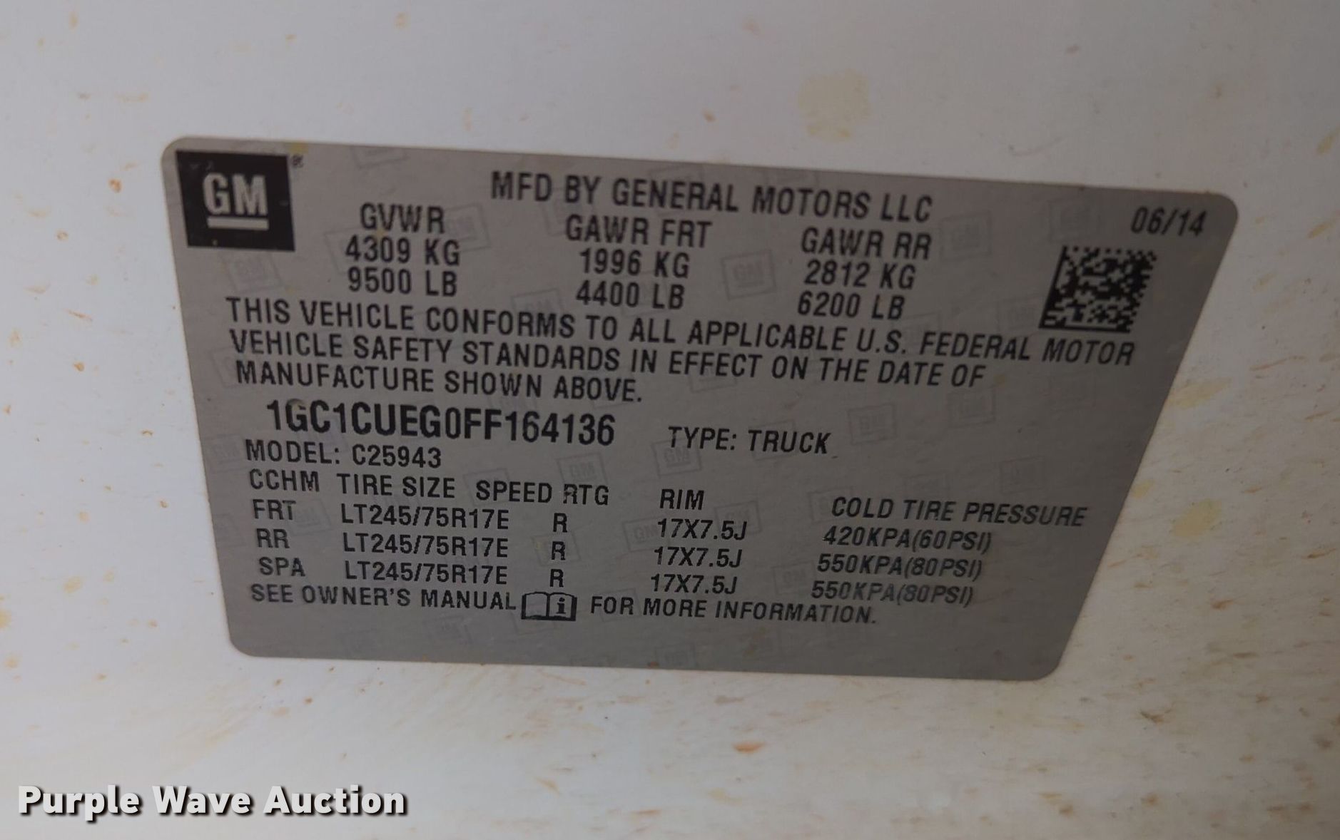 - VIN: 1GC1CUEG0FF164136