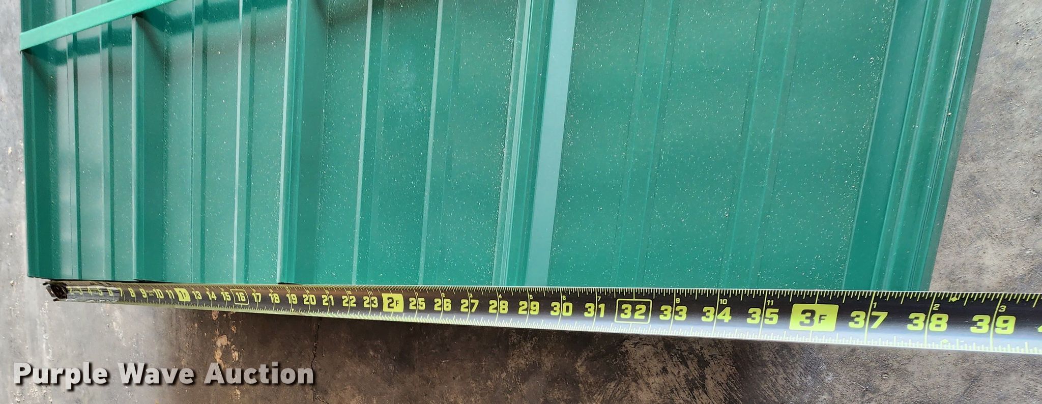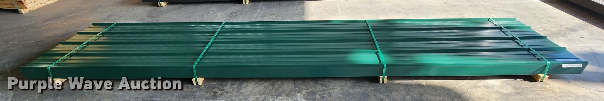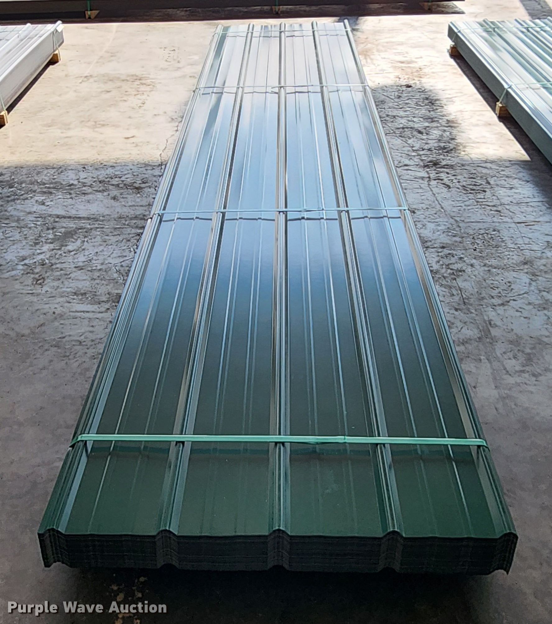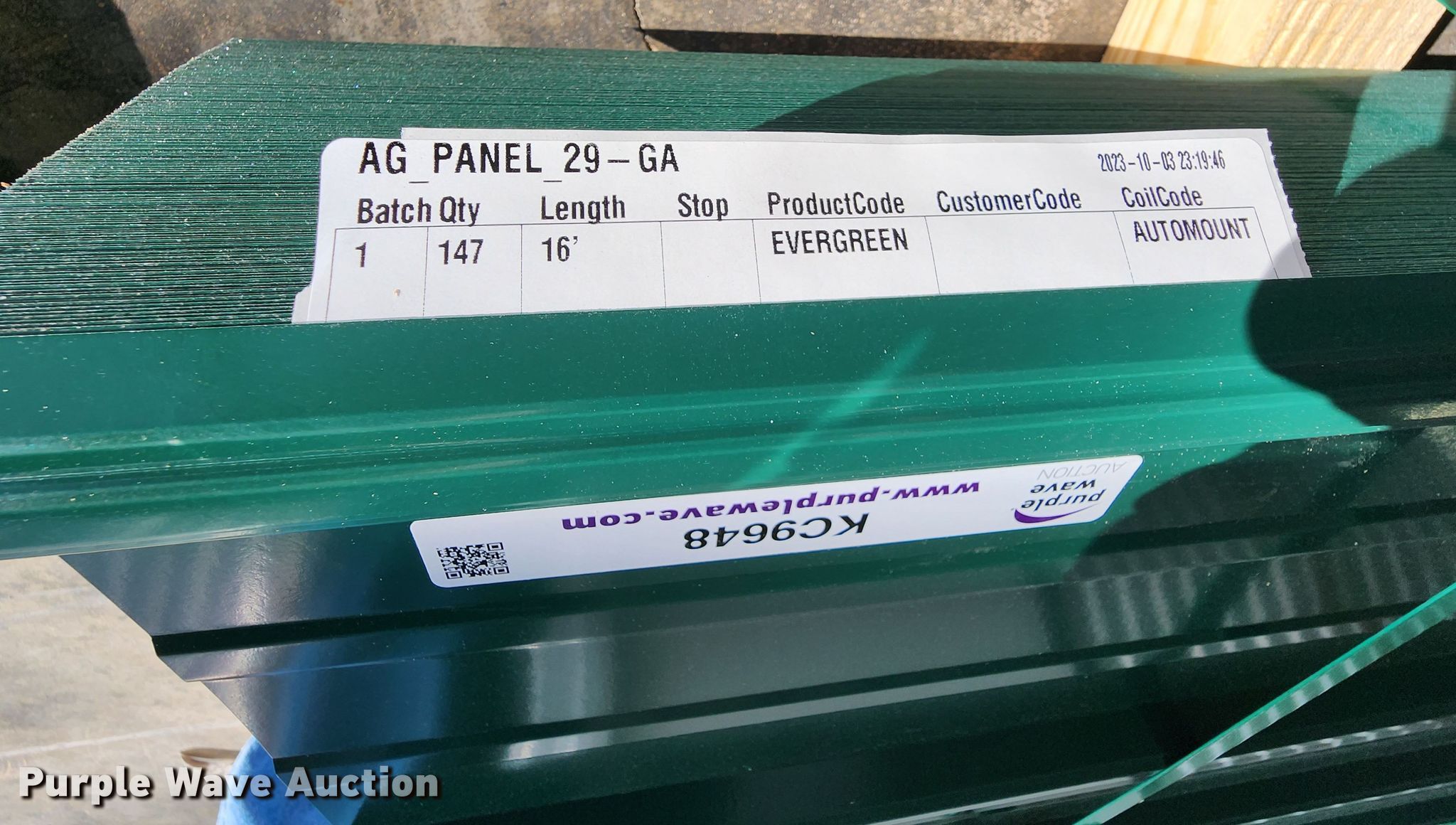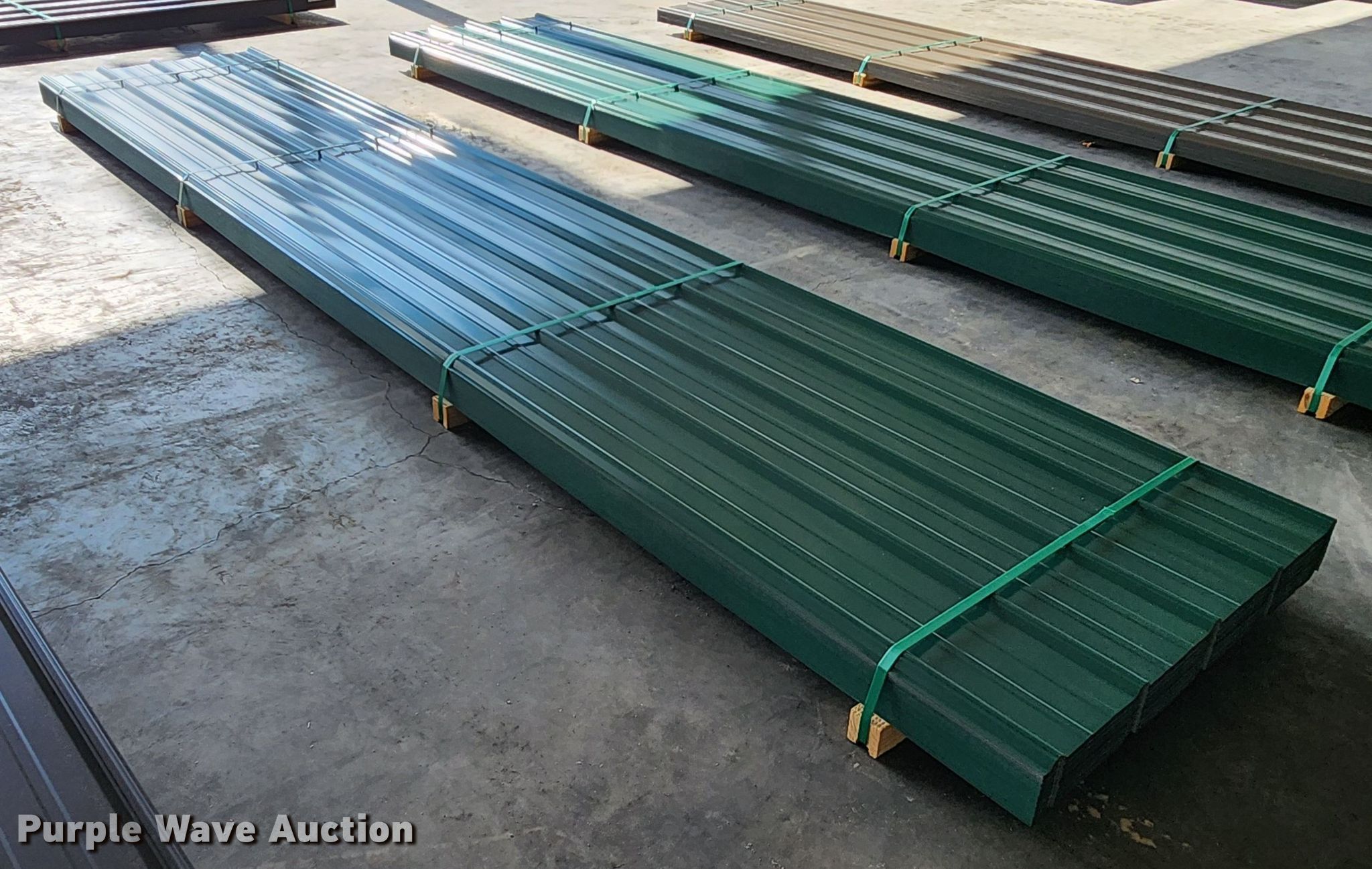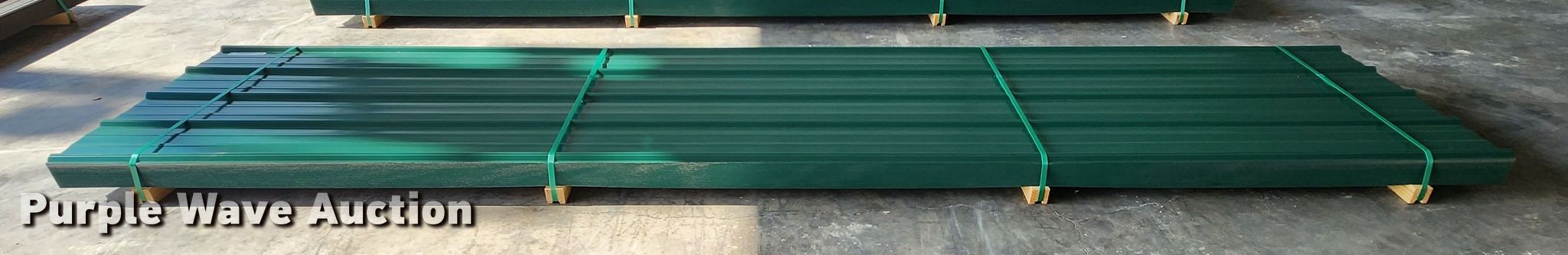 Purple Wave is selling a used Building Materials in Texas. This item is a (147) sheets of Doerkson Metal Components metal siding/roofing with the following: 16' L x 36" W overlap coverage, AG panel profile, 29 gauge, Color: Evergreen, Possible blemishes