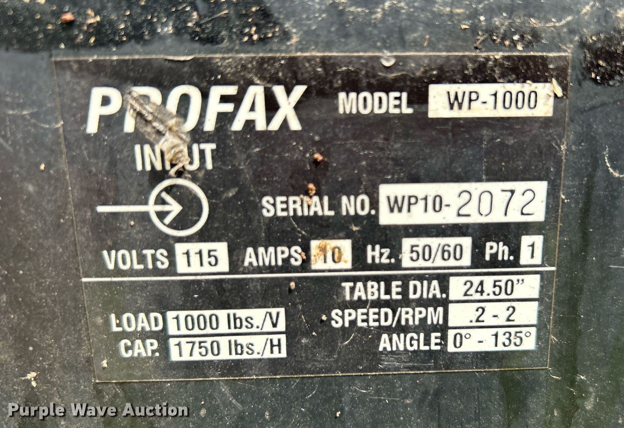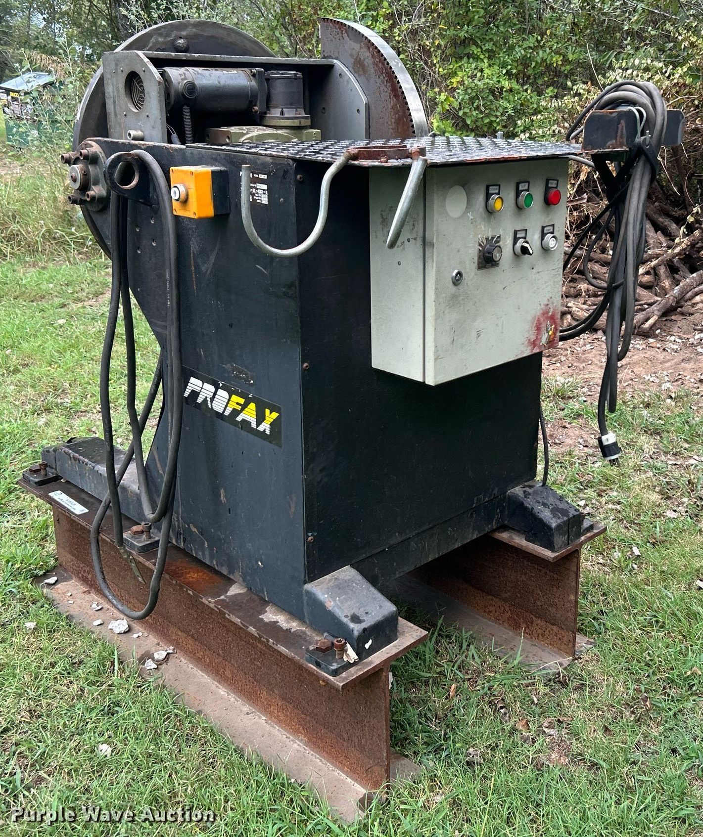(2) welding positioners. Pandjiris 30-6 FB POSIT. Serial: 18428X00-14. Electric Motor Volts: 460, Phase: Three. Profax WP-1000 Serial: WP10-2072. Electric Motor Volts: 115, Phase: Single. Jenks, OK 74037