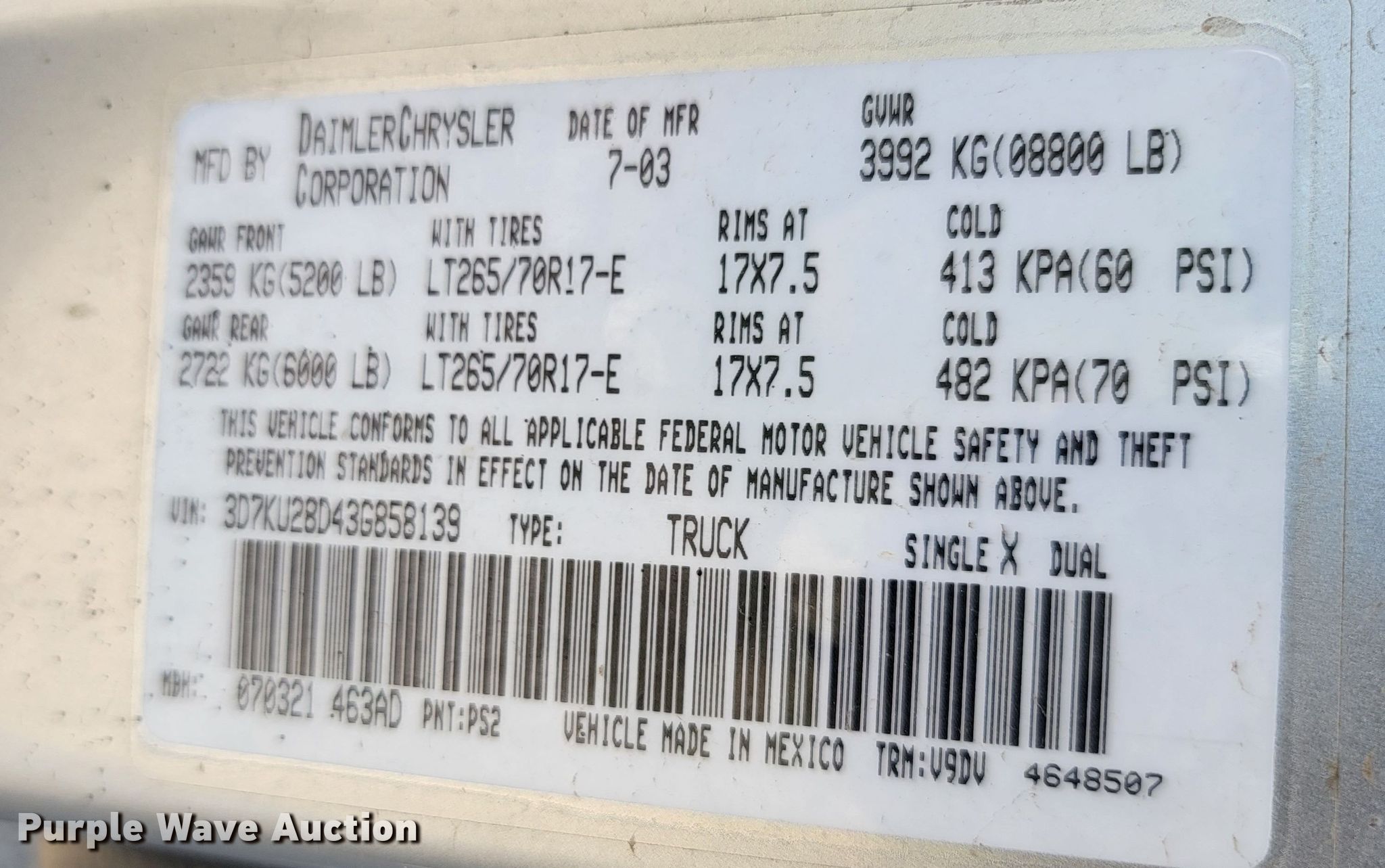 - VIN: 3D7KU28D43G858139