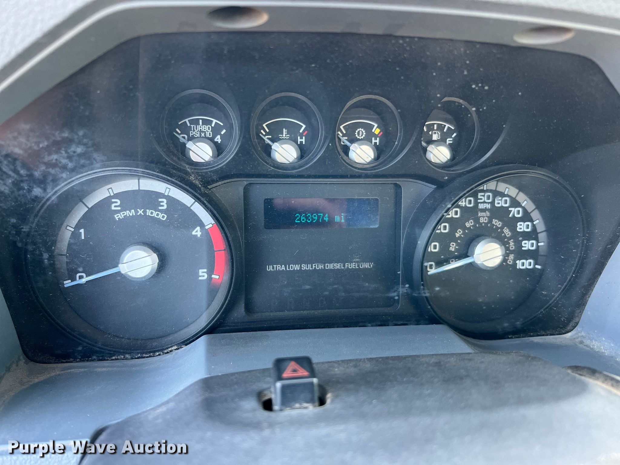 2012 Ford F250 Super Duty SuperCab pickup truck. Miles: 263,974 on odometer, VIN: 1FT7X2AT6CEB09682, Unit #: 320. Engine Displacement: 6.7L V8 OHV, Cylinders: 8, Fuel type: Diesel. Transmission Automatic. Interior AC, Heat, Heated mirrors, Power windows, Power locks, Cruise control. Features Hitch: Gooseneck. Tires Size: 245/75R17. Notes Oil leak, Starter issues, Windshield chipped or cracked, Dead battery, Non-operational unit. Texas title. Title distribution may be delayed up to 14 days from verification of funds. 14202 Transportation Avenue. Laredo, TX 78045
