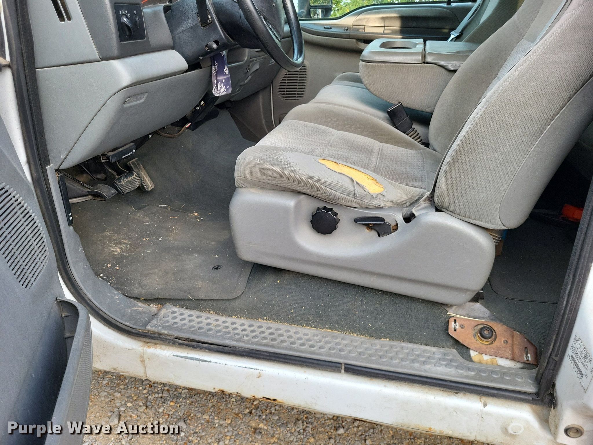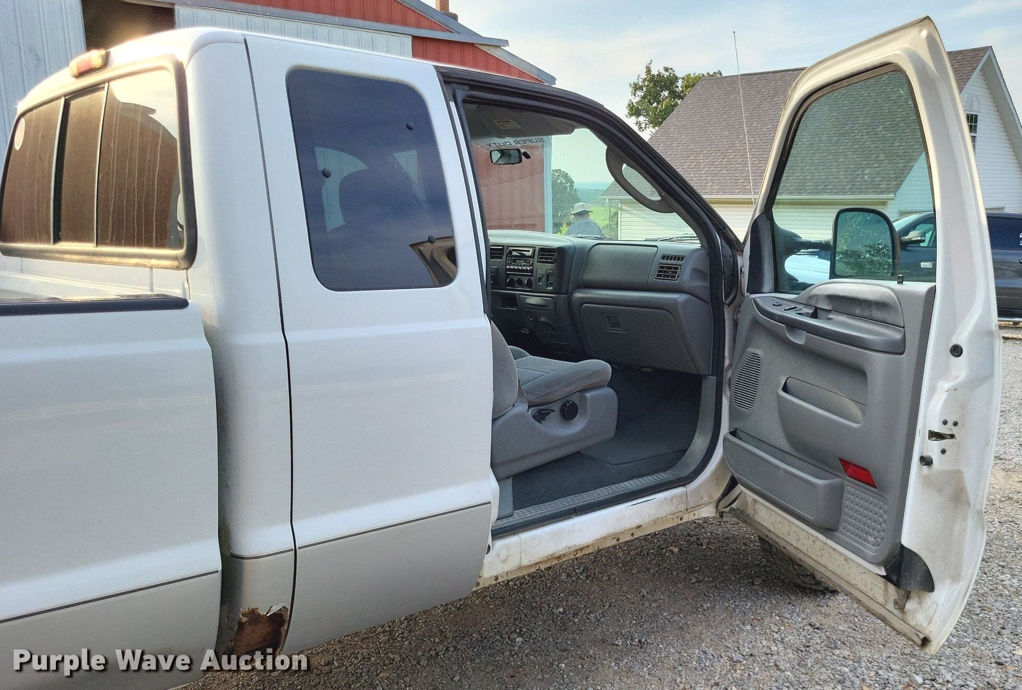 2004 Ford F350 Super Duty XLT SuperCab pickup truck. Miles: 337,865 on odometer, VIN: 1FTSX31P74EB42887. Engine Displacement: 6.0L V8 OHV, Cylinders: 8, Fuel type: Diesel. Transmission Automatic, Four wheel drive. Interior AC, Heat, Heated mirrors, Power windows, Power locks, Cruise control. Features Hitch: Gooseneck. Tires Size: 265/75R16. Notes Windshield chipped or cracked. Missouri title. Title distribution may be delayed up to 14 days from verification of funds. 9596 State Highway NN. Patton, MO 63662