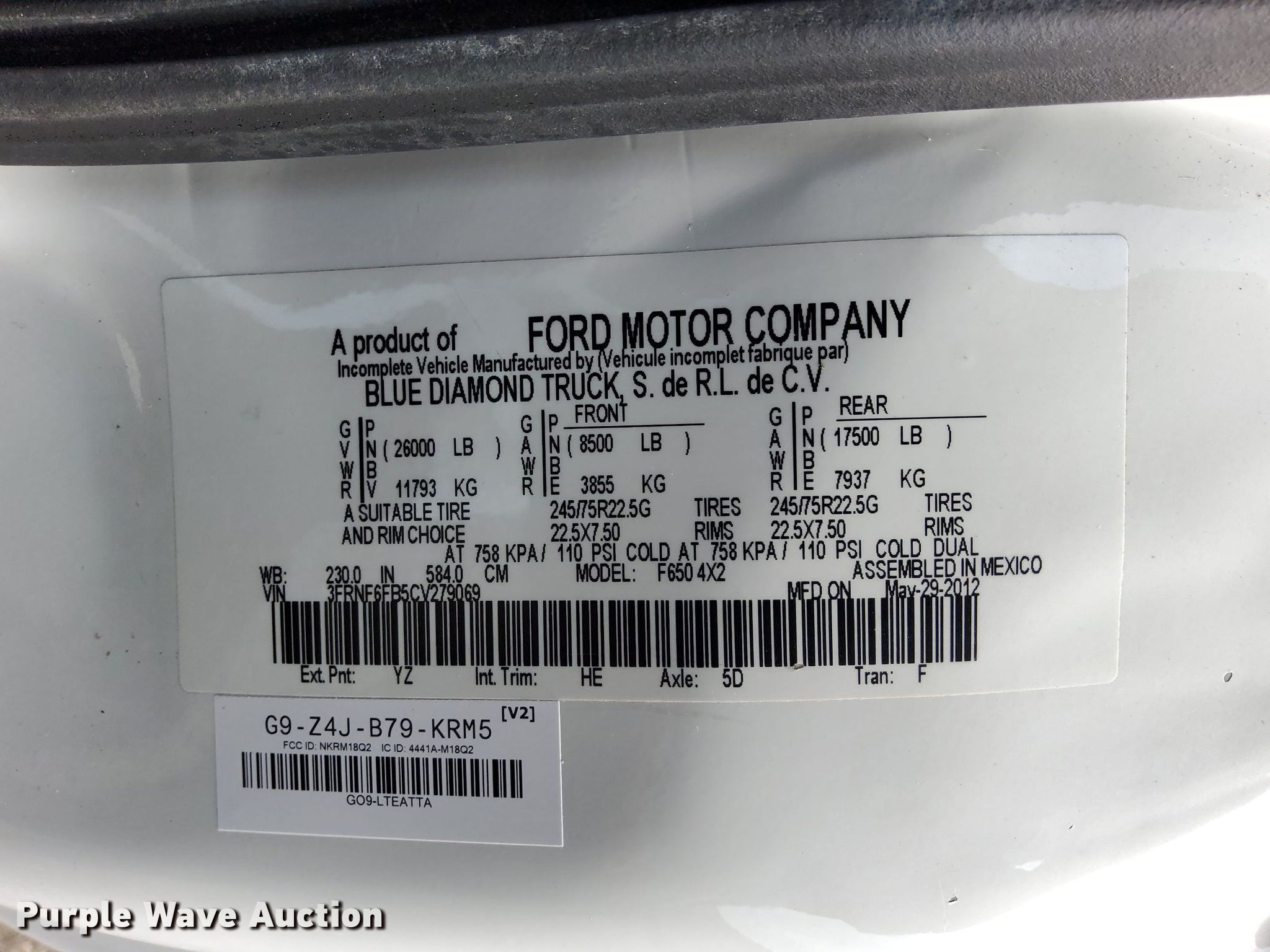 - VIN: 3FRNF6FB5CV279069