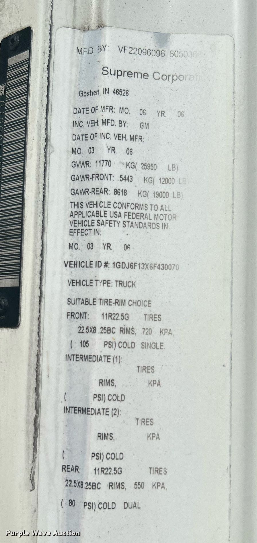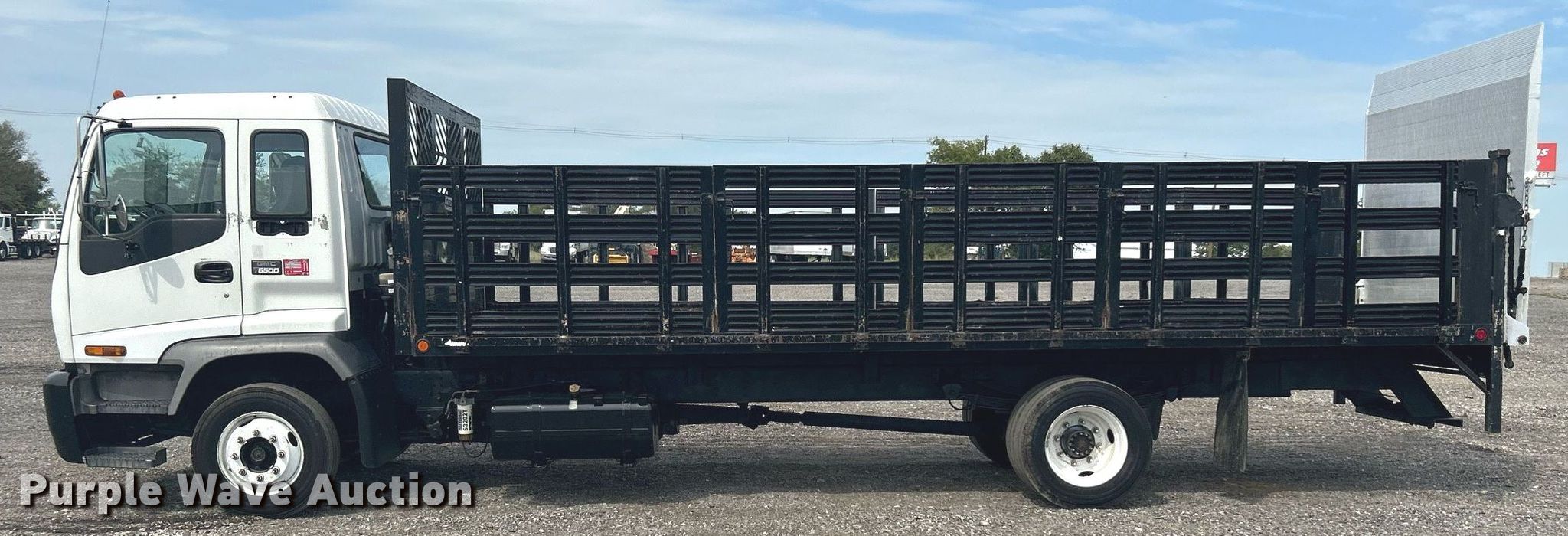 2006 GMC T6500 flatbed truck. Miles: 262,756 on odometer, VIN: 1GDJ6F13X6F430070. Engine Isuzu 6HK1X, Displacement: 7.8L, Cylinders: 6, Fuel type: Diesel, HP: 234. Transmission Automatic. Chassis Axles: Single, Suspension: Spring, Brakes: Hydraulic. Interior AC, Heat, Power windows, Power locks, Cruise control. Features Flatbed 24' 7" L x 92" W, Removable sides, End gate lift Tommy Gate. Tires Front: 245/70R19.5. Notes Dash warning indicator: ABS, Windshield chipped or cracked. Oklahoma title. Title distribution may be delayed up to 14 days from verification of funds. 15107 North 137th East Avenue. Collinsville, OK 74021