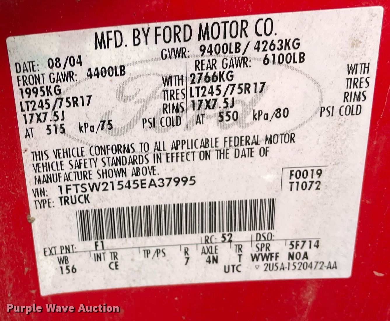 Take a look at this used 2005 Ford F250 Super Duty XL Crew Cab pickup truck being sold on October 25th, 2023 in the SOLD! October 25 Vehicles and Equipment Auction made by Ford. Take a look at all of the item information below or take a look at similar auctions for Pickups and Vans.
