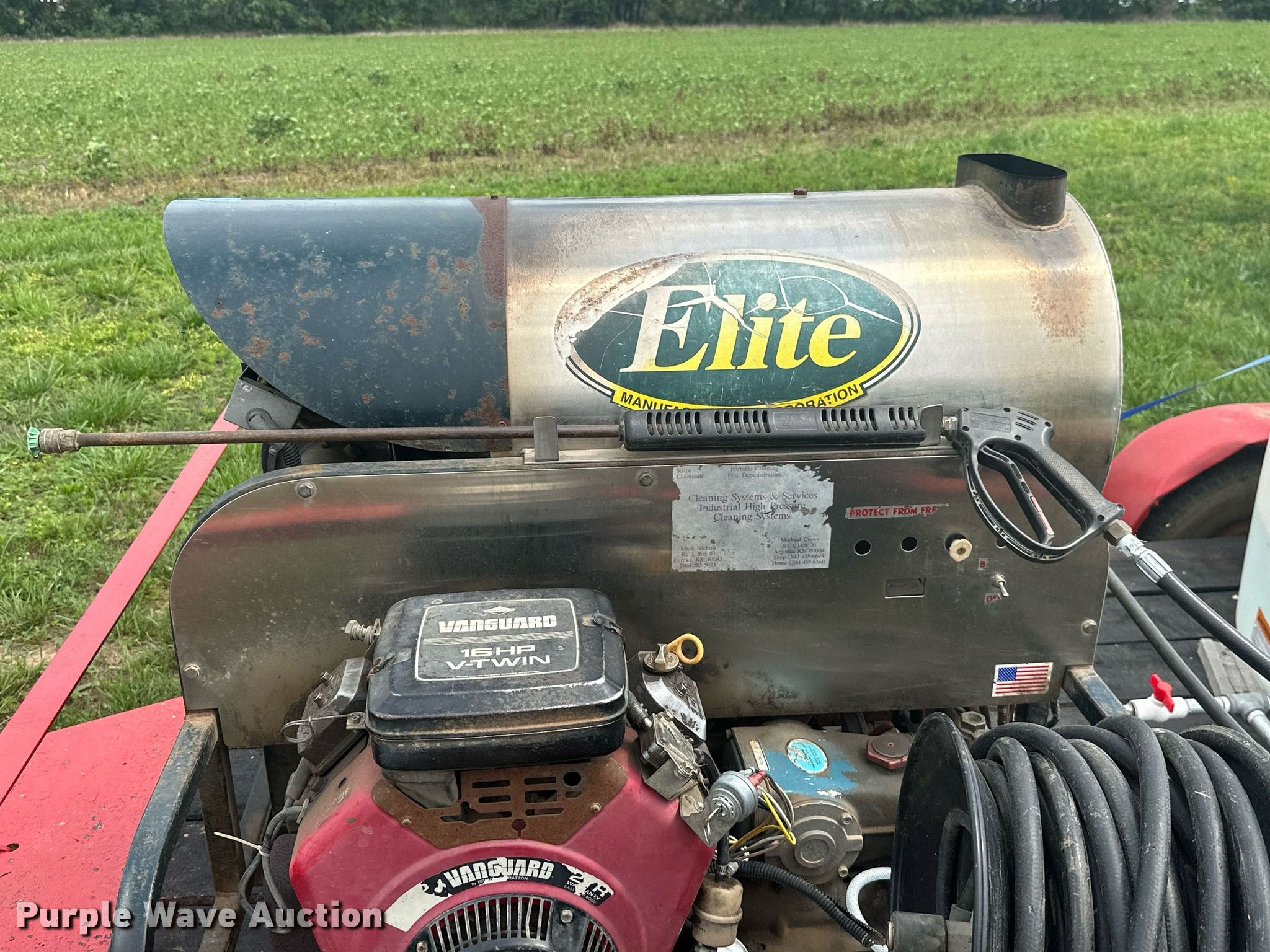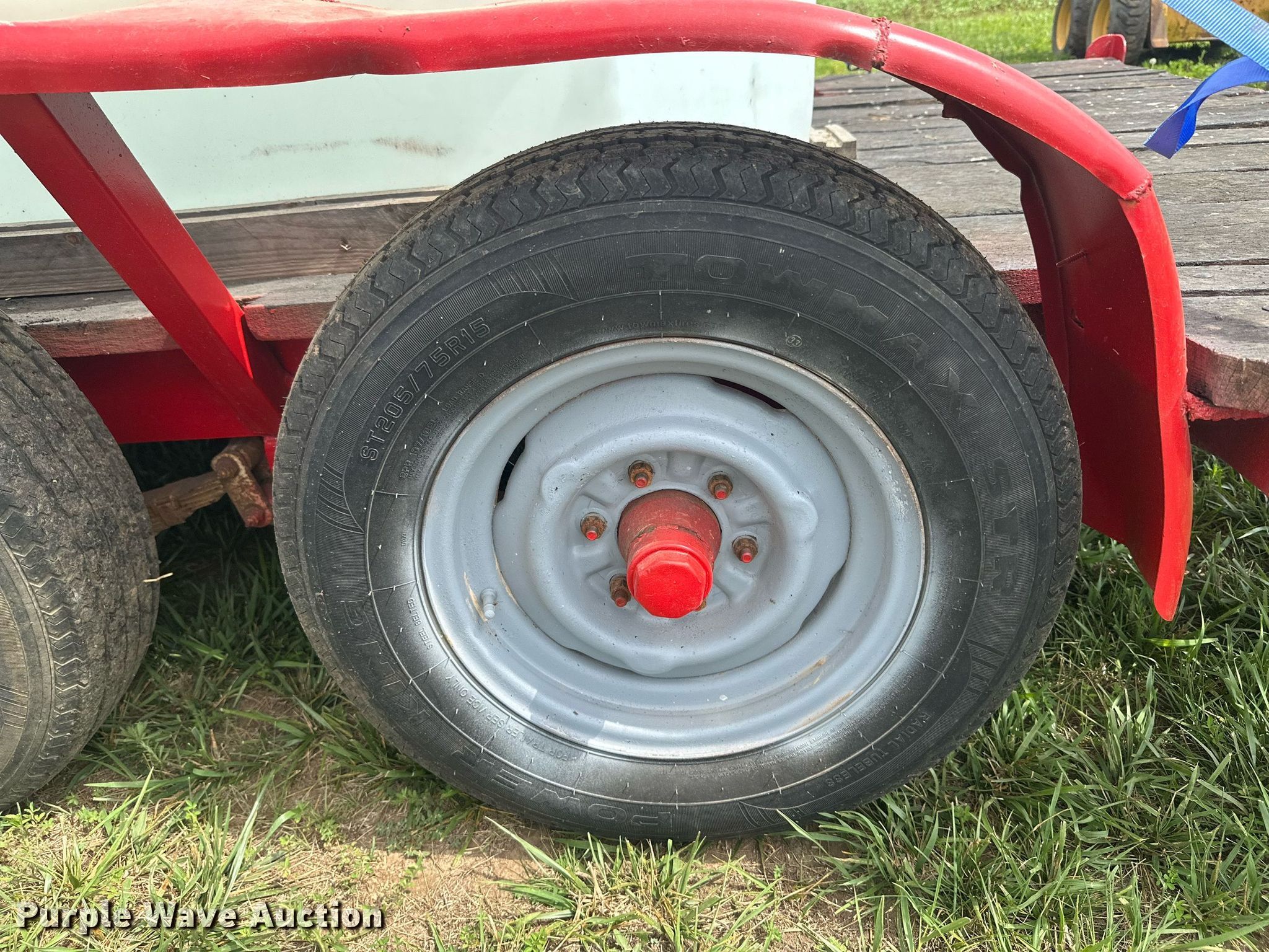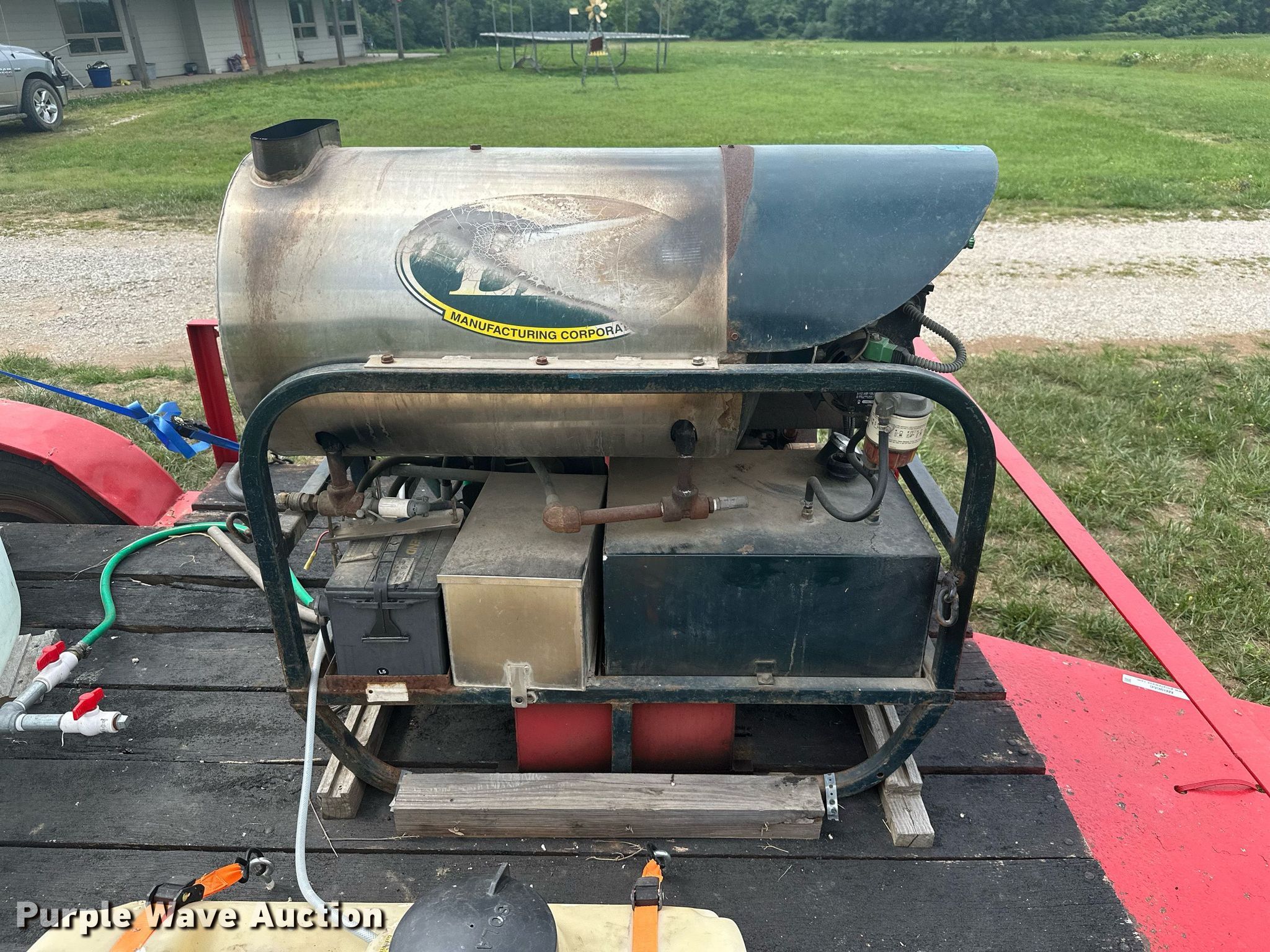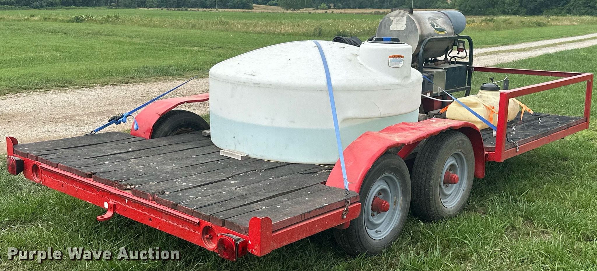 1998 Shop built pressure washer trailer. VIN: DRXMVB000355772MO. Dimensions Overall: 18' 6" L x 7' 8" W, Deck: 15' L. Features Deck type: Wood, Elite pressure washer, Vanguard 16HP gas engine, Beckett ADC series oil burner, 12 gallon chemical poly tank, 250 gallon poly water tank. Chassis Ball hitch: 2 5/16", Landing gear: Single, Suspension: Spring, Brakes: Electric, Axles: Tandem. Tires Size: ST205/75R15. Missouri title. 496 NW 120th Ln. Liberal, MO 64762