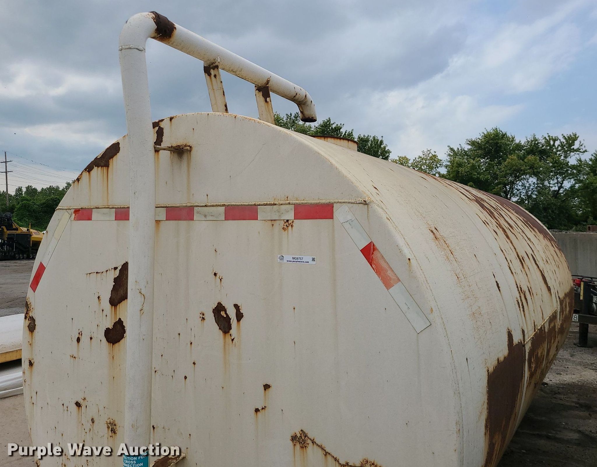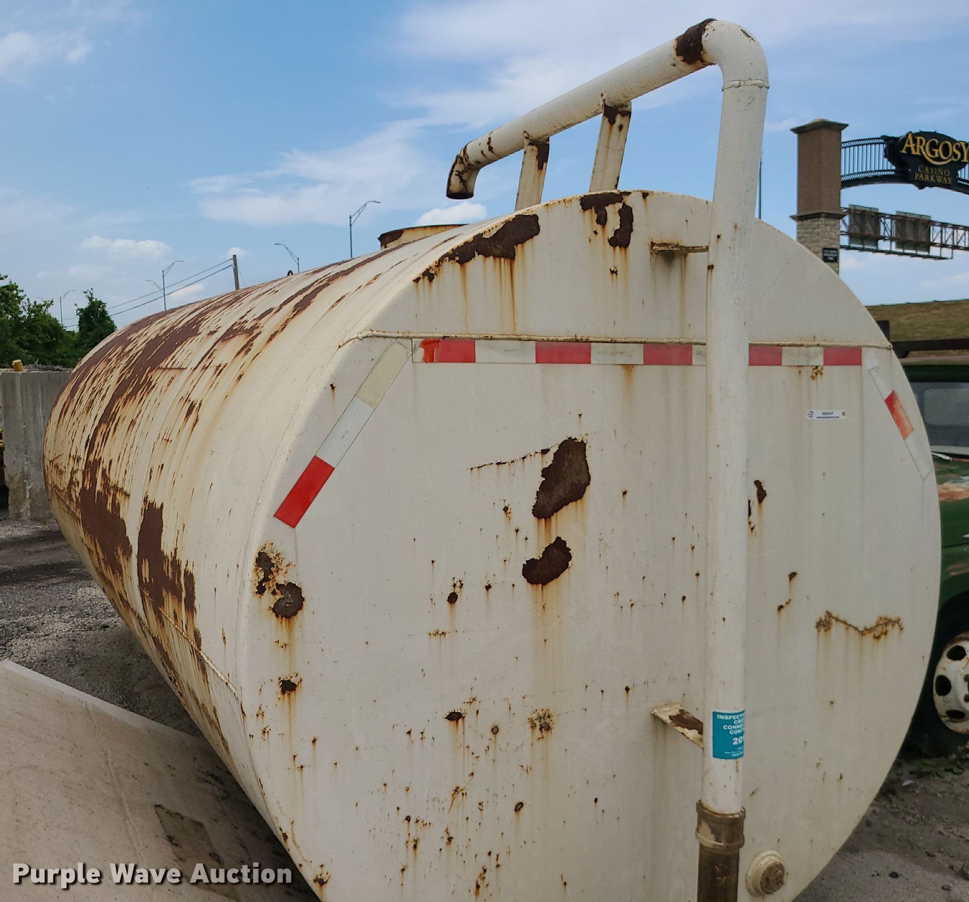 Purple Wave is selling a used Fuel and Lube in Missouri. This item is a Fuel tank with the following: 14' L x 7' Diameter, Capacity: approx. 4000 gallons