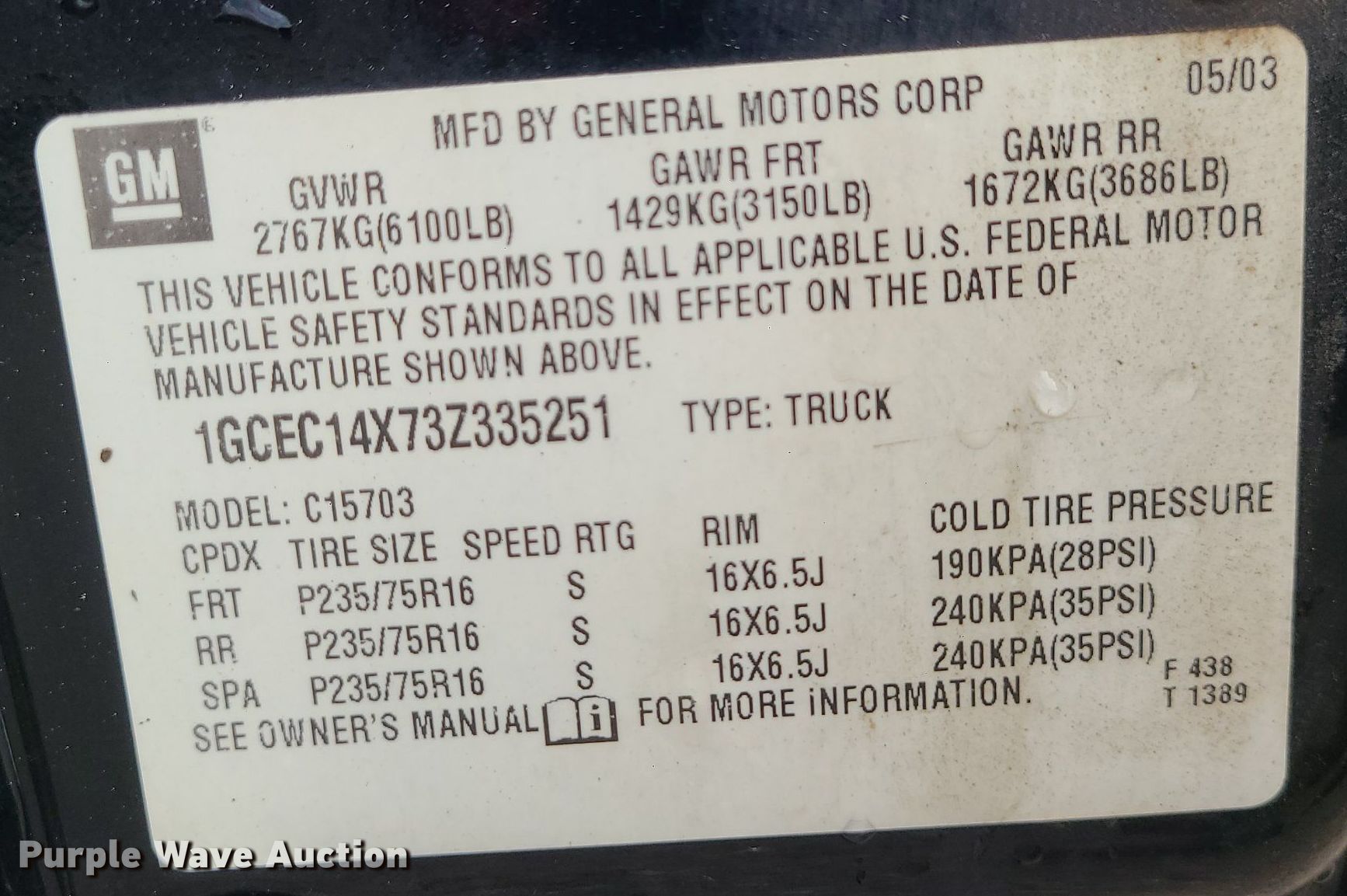 Purple Wave is selling a used 1/2 Ton Pickup or Van in Missouri. This item is a 2003 Chevrolet Silverado 1500 pickup truck with the following: Miles: 177,154 on odometer, VIN: 1GCEC14X73Z335251