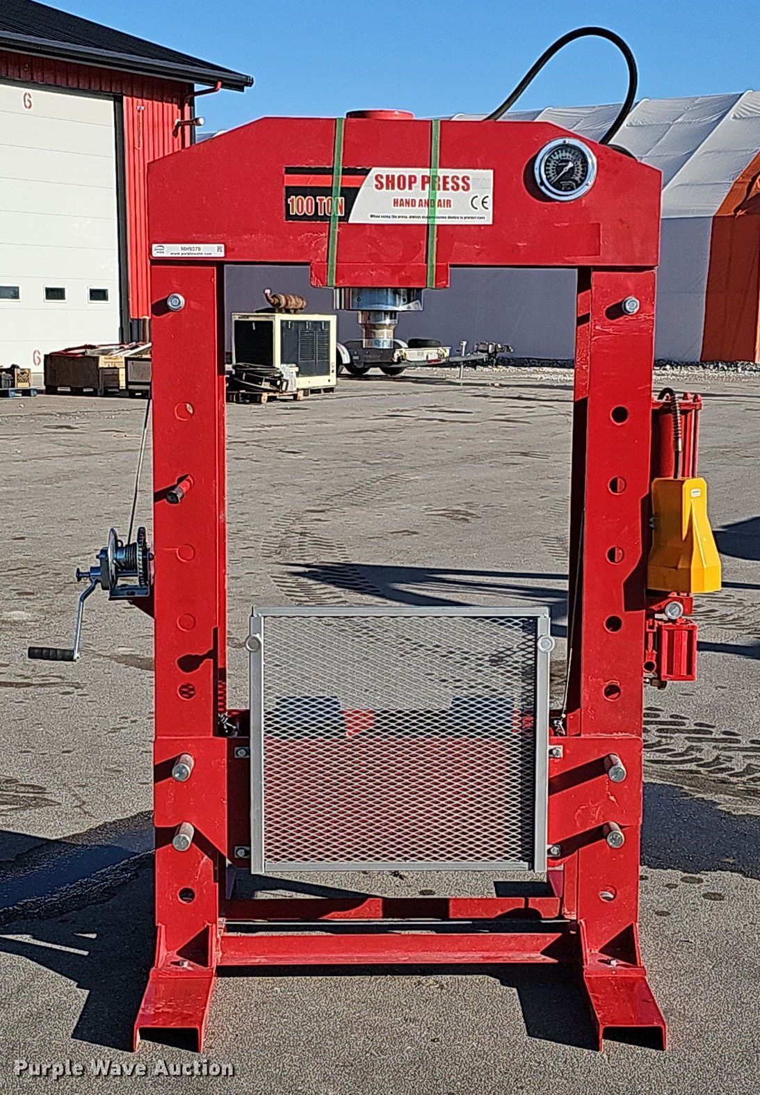 Purple Wave is selling a used Tools in Nebraska. This item is a Hydraulic press with the following: 43 1/2"L x 39 1/4" W x 76"H, Manual winch, Manual height adjust, Working width: 12", Unused