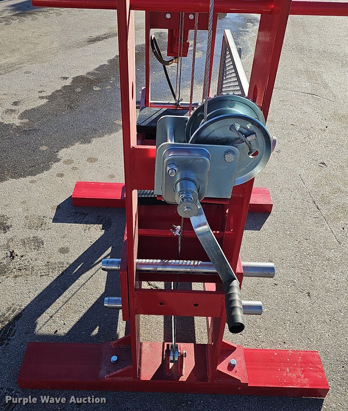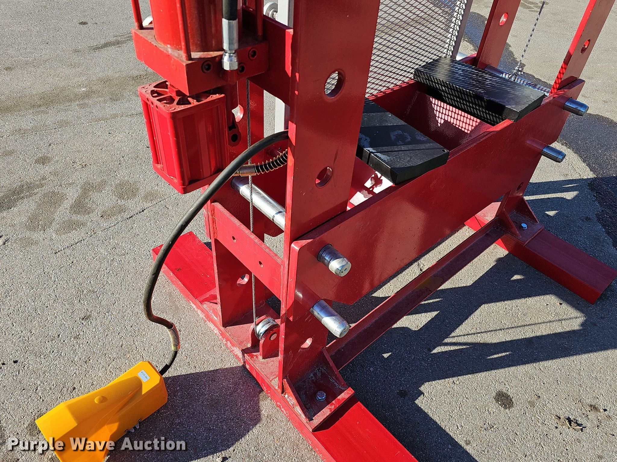 Hydraulic press. 43 1/2"L x 39 1/4" W x 76"H, Manual winch, Manual height adjust, Working width: 12" , Unused. Jordan Machinery / S & N Auto Sales. 25050 US Hwy 275. Waterloo, NE 68069