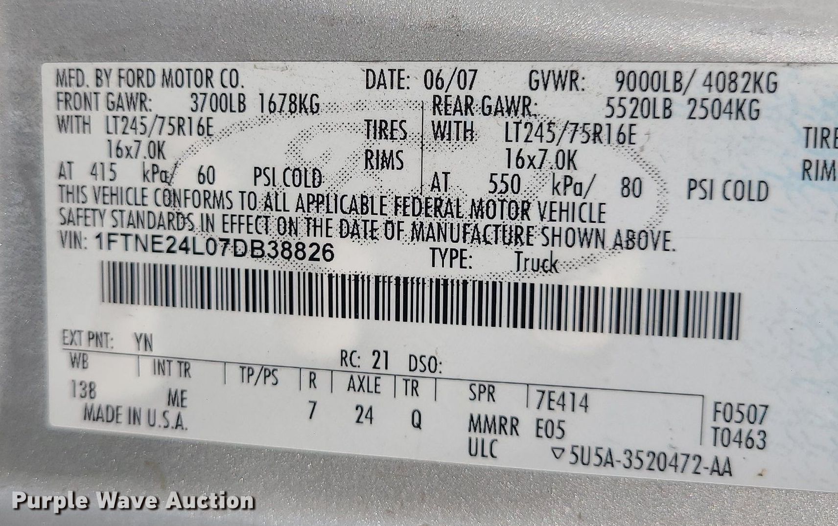 - VIN: 1FTNE24L07DB38826