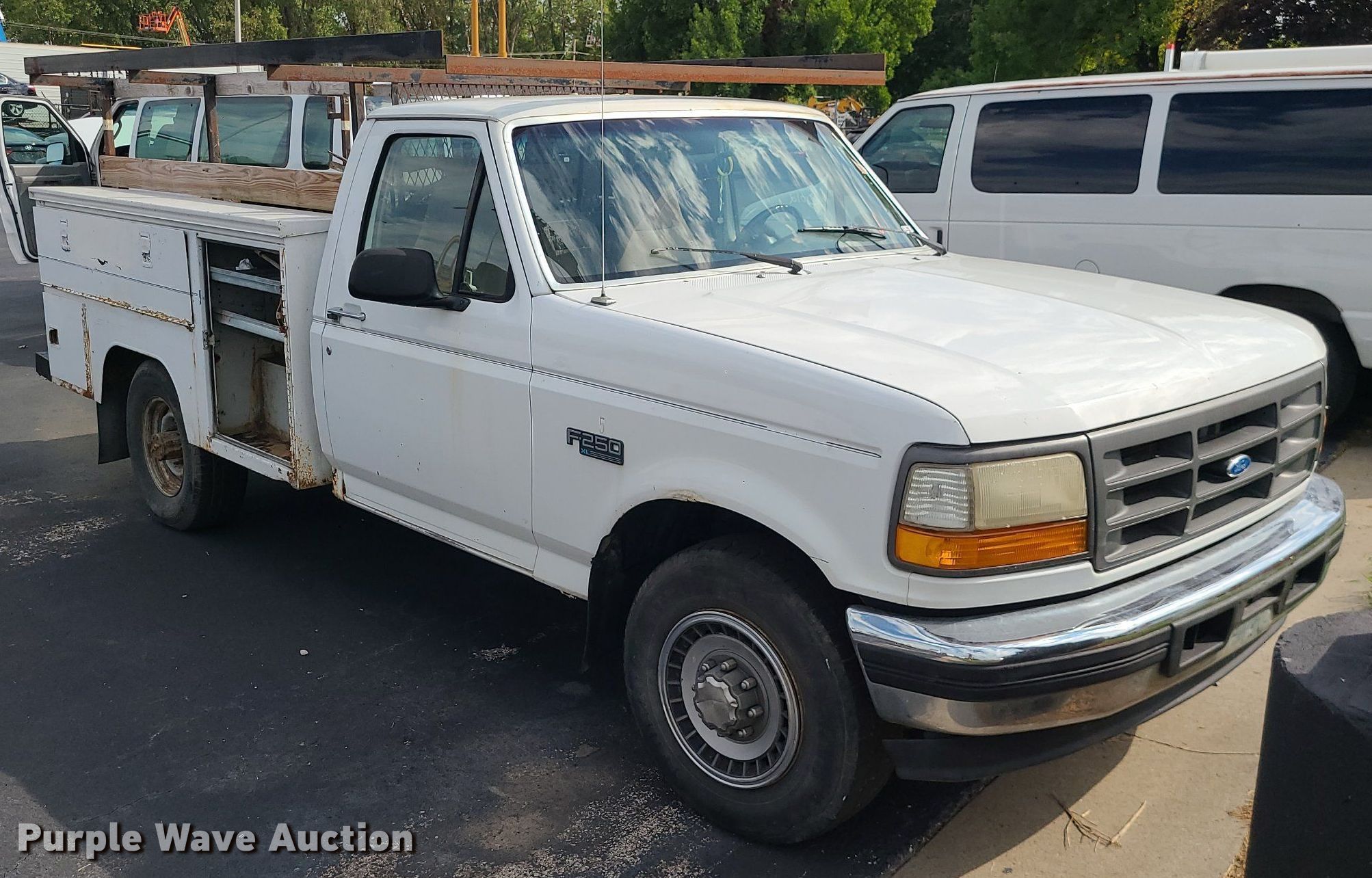 Purple Wave is selling a used 3/4 or 1 Ton Pickup or Van in Missouri. This item is a 1995 Ford F250 utility bed pickup truck with the following: Miles: 218,084 on odometer, VIN: 1FTHF25Y3SLB63772