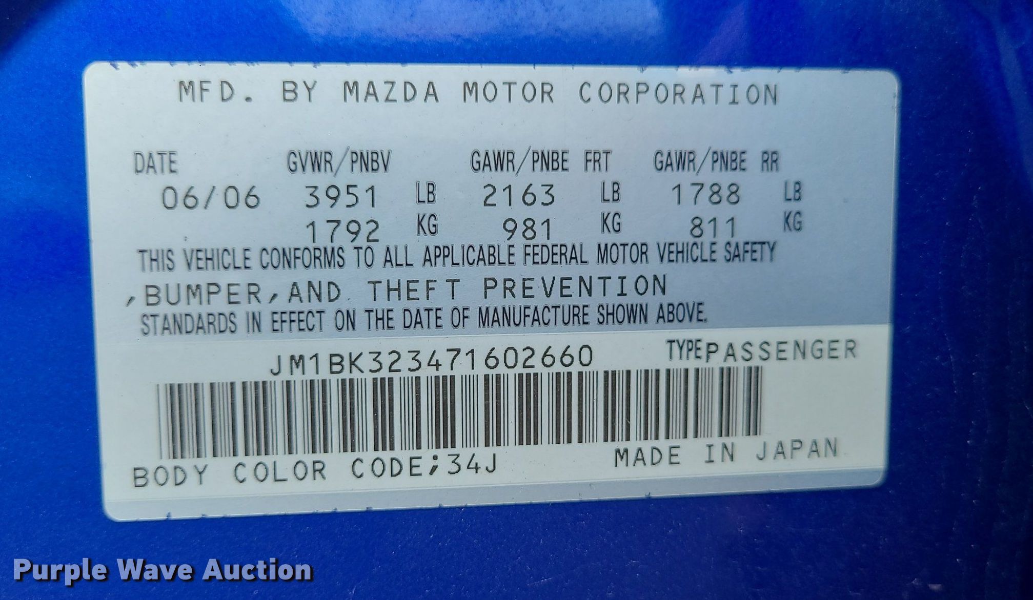 Purple Wave is selling a used Passenger Vehicle in Missouri. This item is a 2007 Mazda 3 with the following: Miles: 118,509 on odometer, VIN: JM1BK323471602660