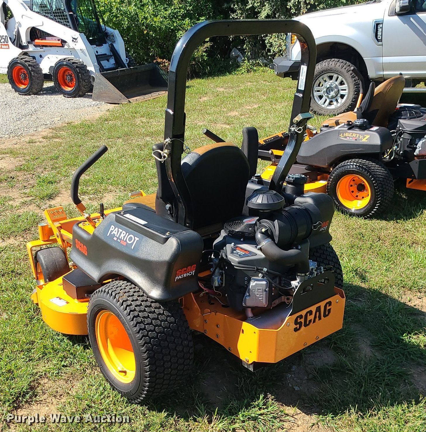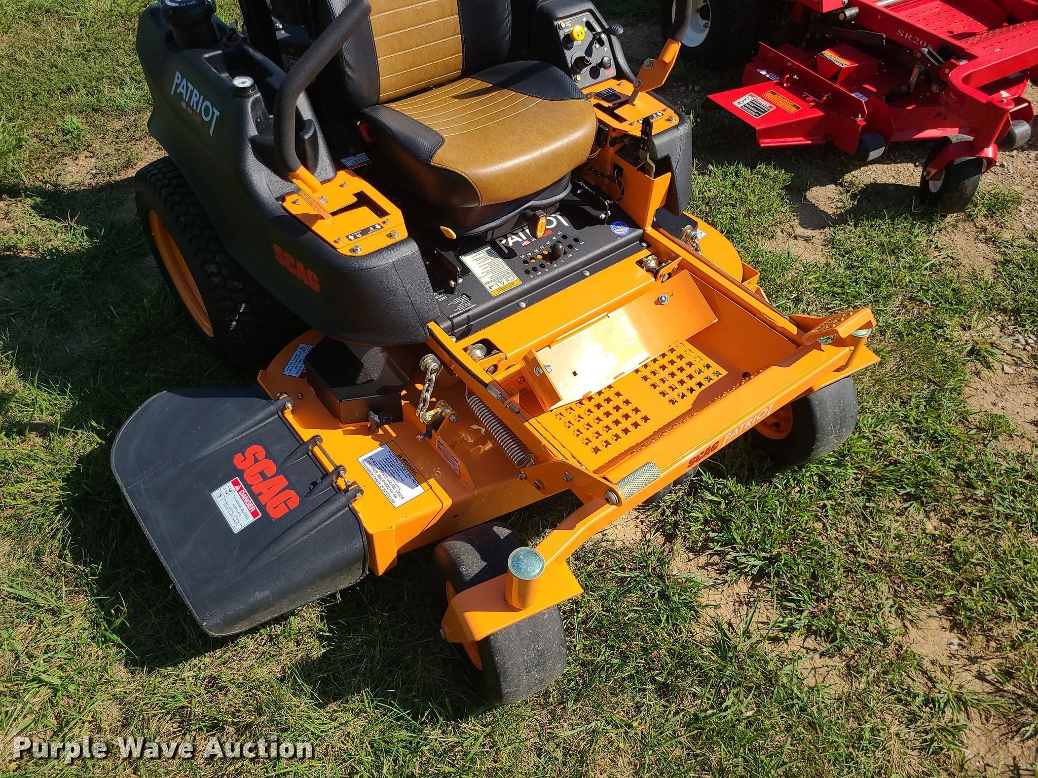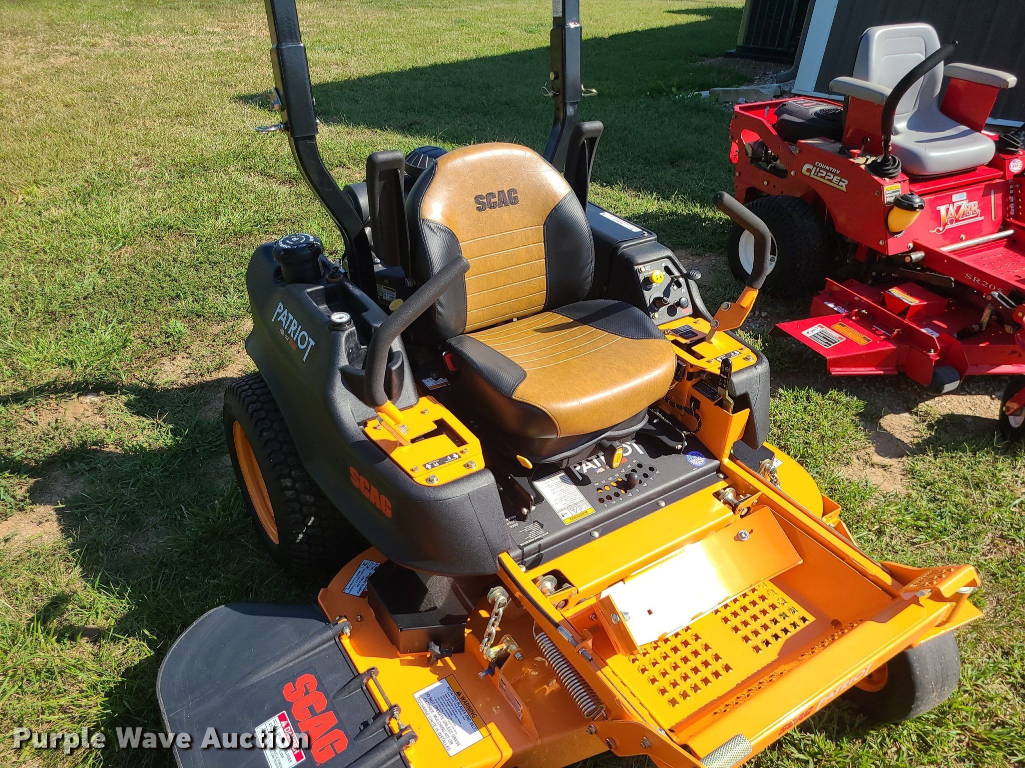 Purple Wave is selling a used Lawn Mower in Missouri. This item is a Scag Patriot ZTR lawn mower with the following: Hours: 89 on meter, Cutting width: 52", Serial: N2200246