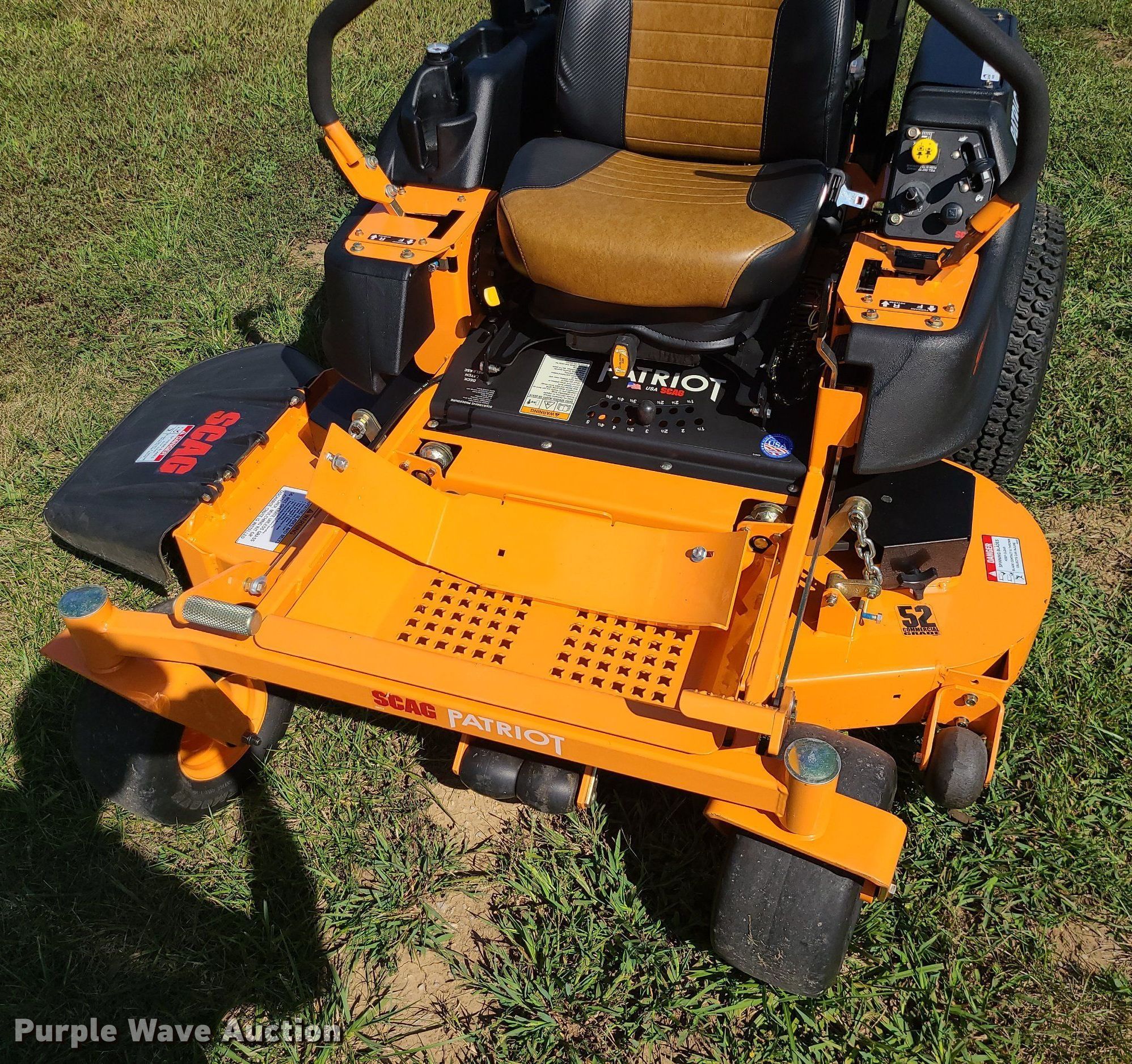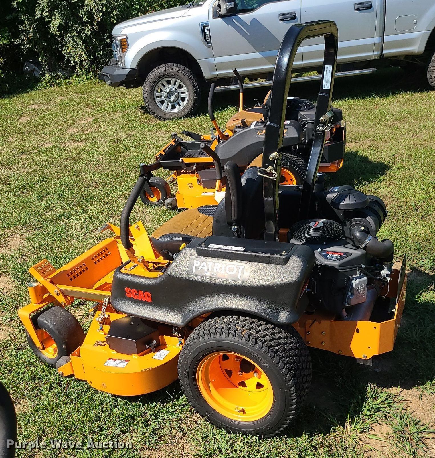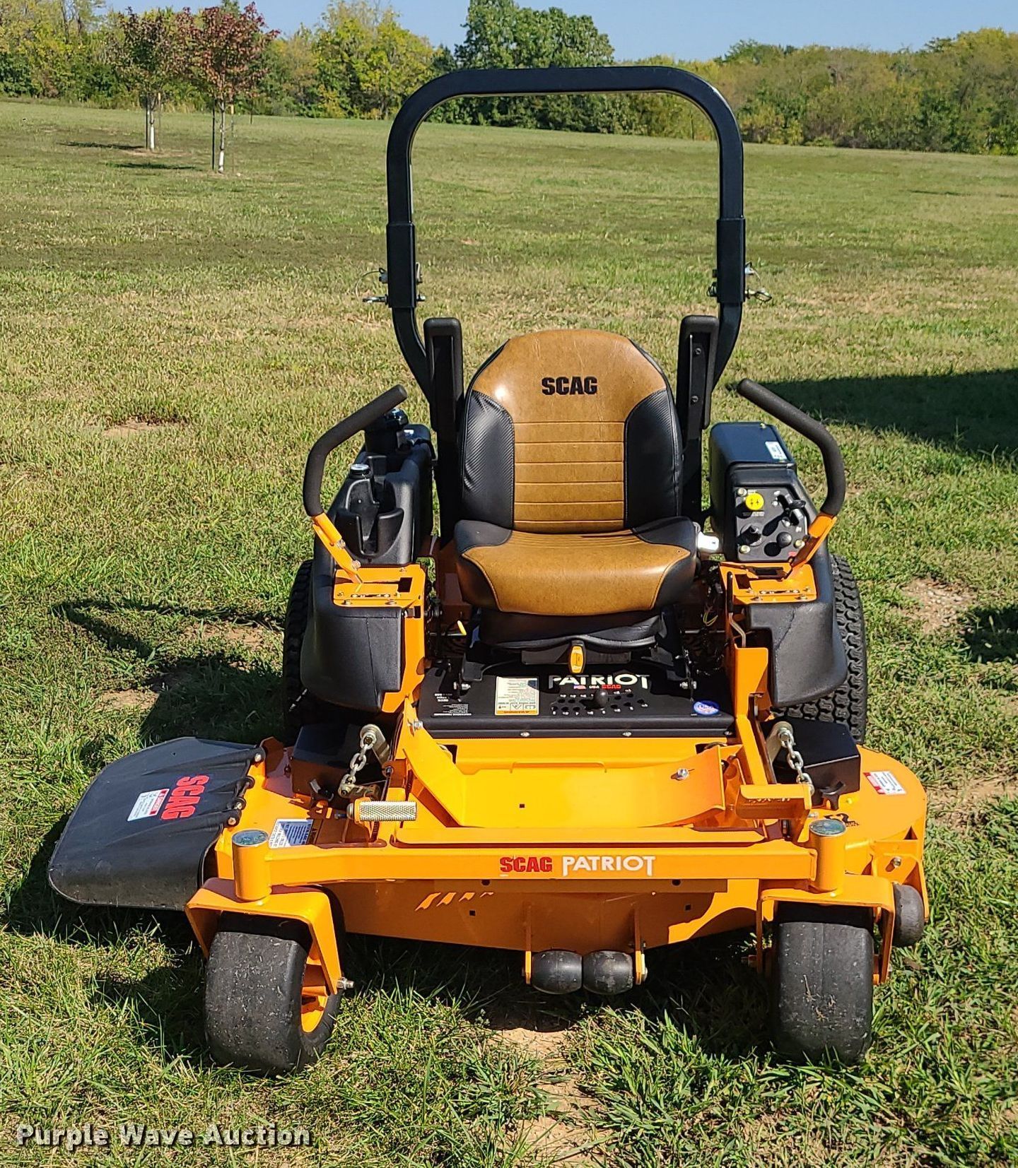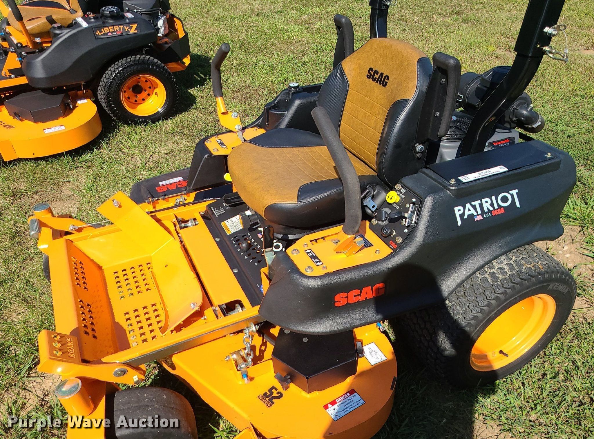 Purple Wave is selling a used Lawn Mower in Missouri. This item is a Scag Patriot ZTR lawn mower with the following: Hours: 89 on meter, Cutting width: 52", Serial: N2200246