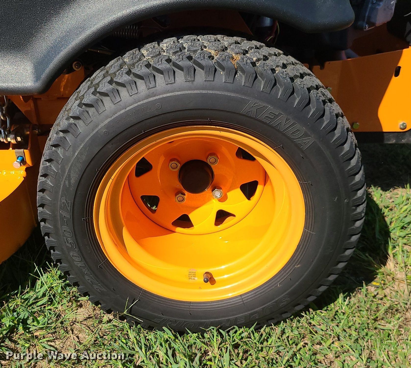 Scag Patriot ZTR lawn mower. Hours: 89 on meter, Cutting width: 52", Serial: N2200246. Engine Kawasaki FX691V, Cylinders: 2, Fuel type: Gas, HP: 22. Tires Front: 13x6.50x6, Rear: 22x10.50x12. KC Mowers. 8908 South Corn Road. Oak Grove, MO 64075