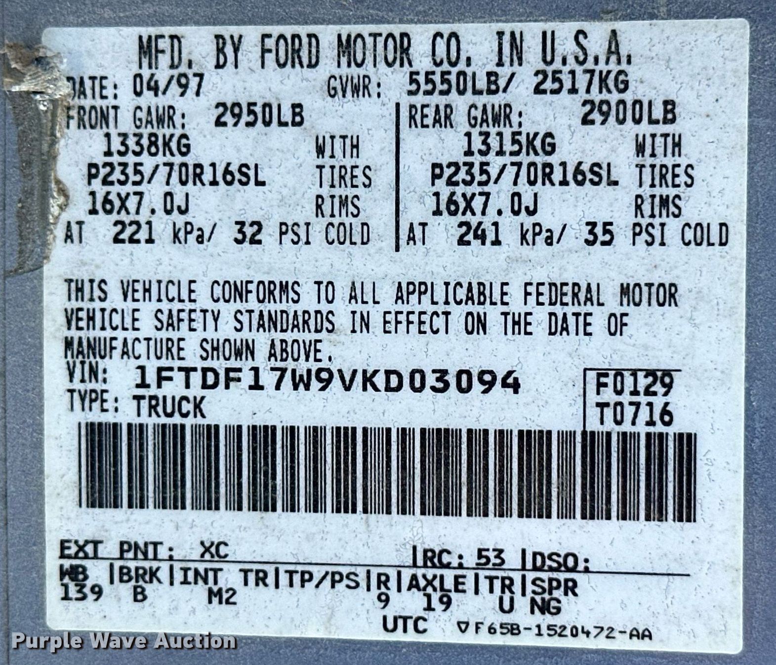 Purple Wave is selling a used 1/2 Ton Pickup or Van in Kansas. This item is a 1997 Ford F150 pickup truck with the following: Miles: 183,845 on odometer, VIN: 1FTDF17W9VKD03094
