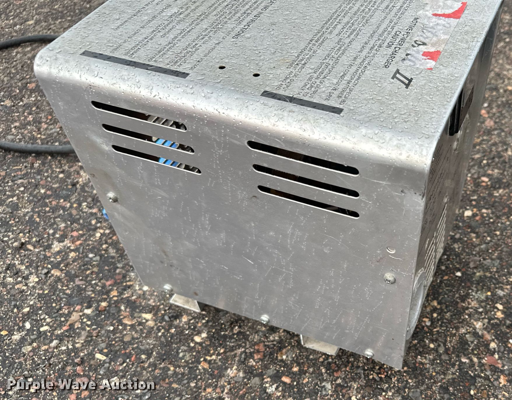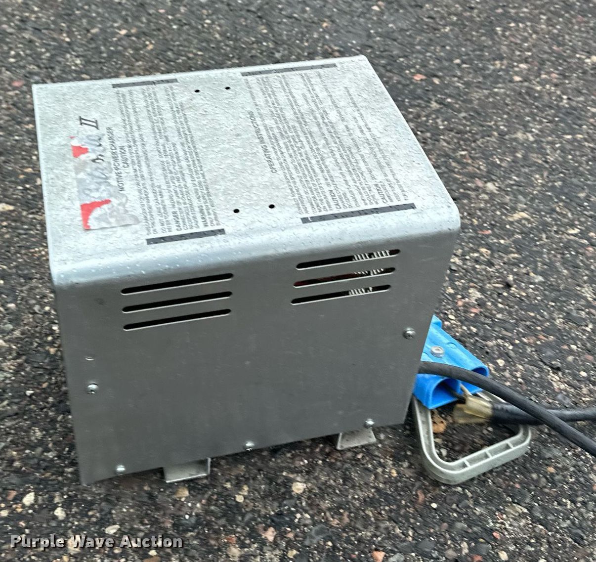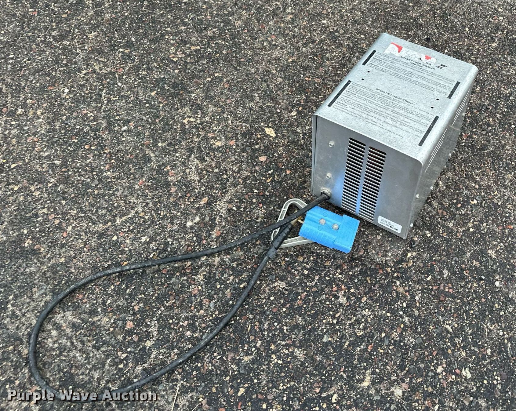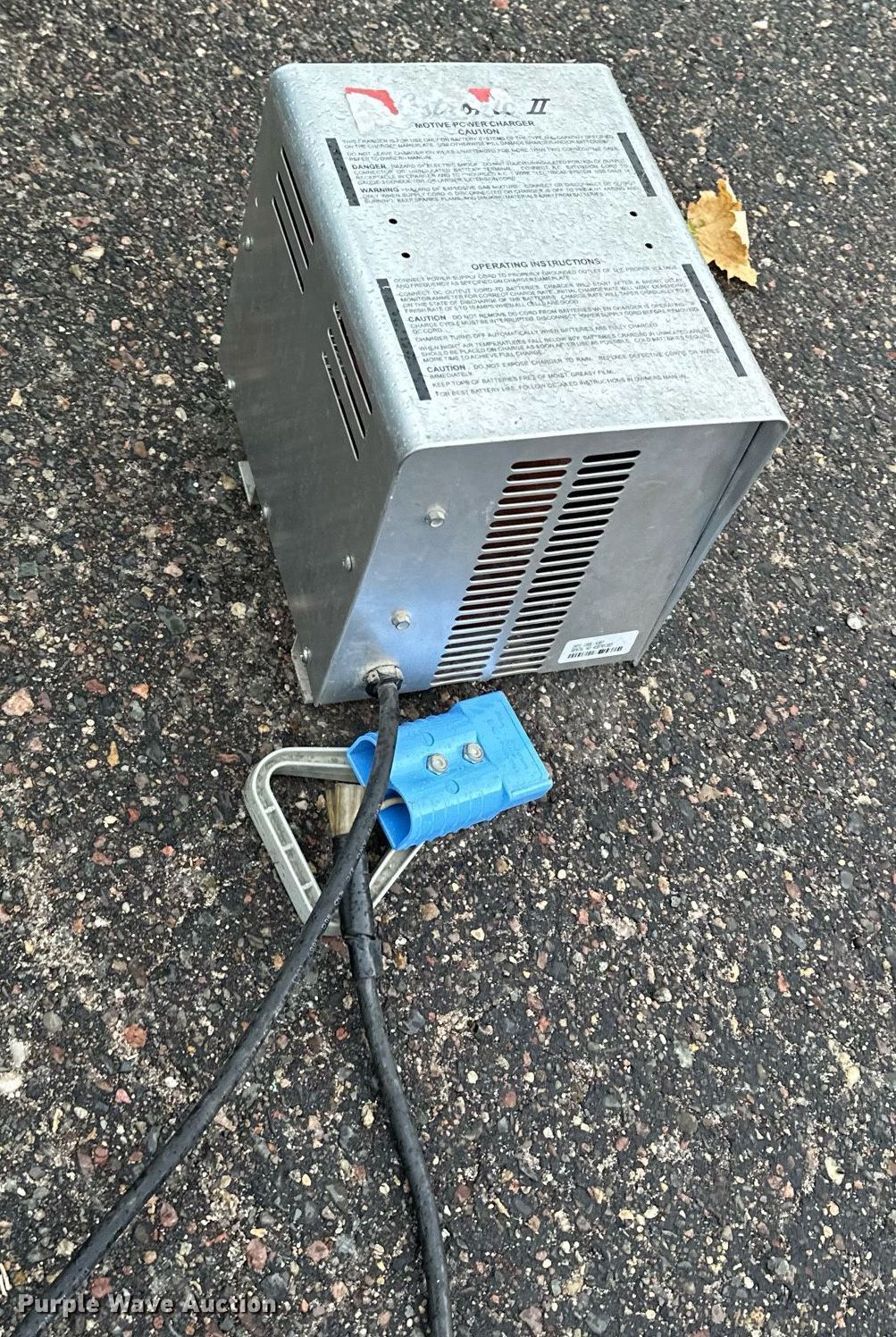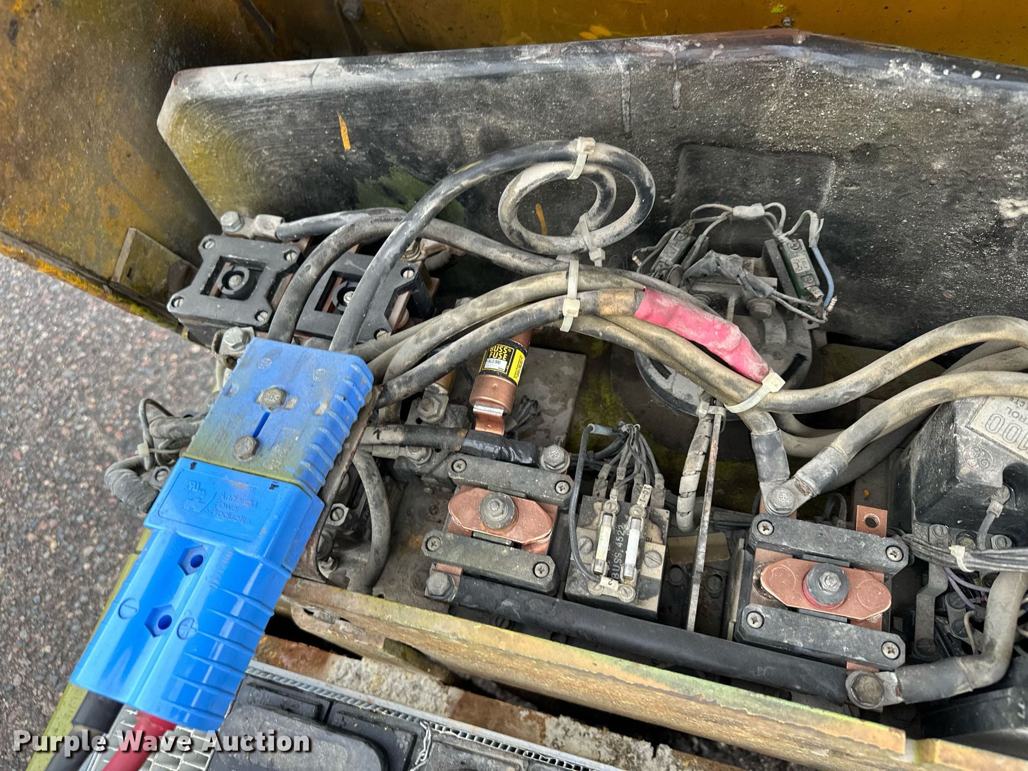 Clark TM15 forklift. Hours: 9,306 on meter, Serial: TM1451504GEF280186. Electric Motor Volts: 48, Charger: Single phase. Transmission Powershift. Operators station Canopy. Features Maximum lift capacity: 3,000 lbs, Maximum lift height: 107", Mast stages: 4, Mast tilt, Fork length: 42". Tires Size: 18x6x12, Solid. IE Works. 8769 Jefferson Highway. Osseo, MN 55369